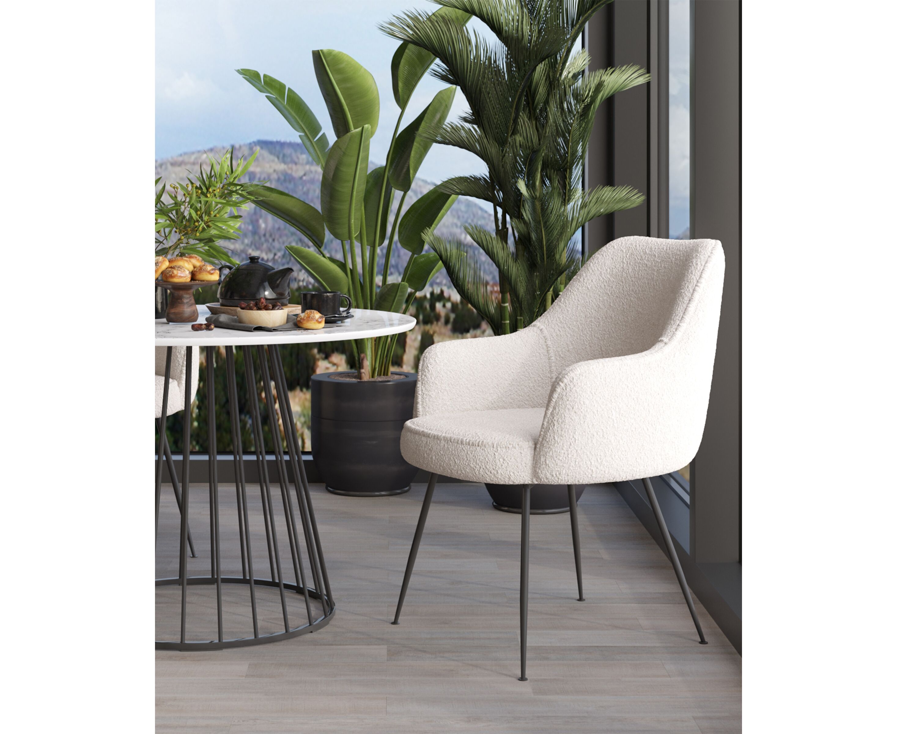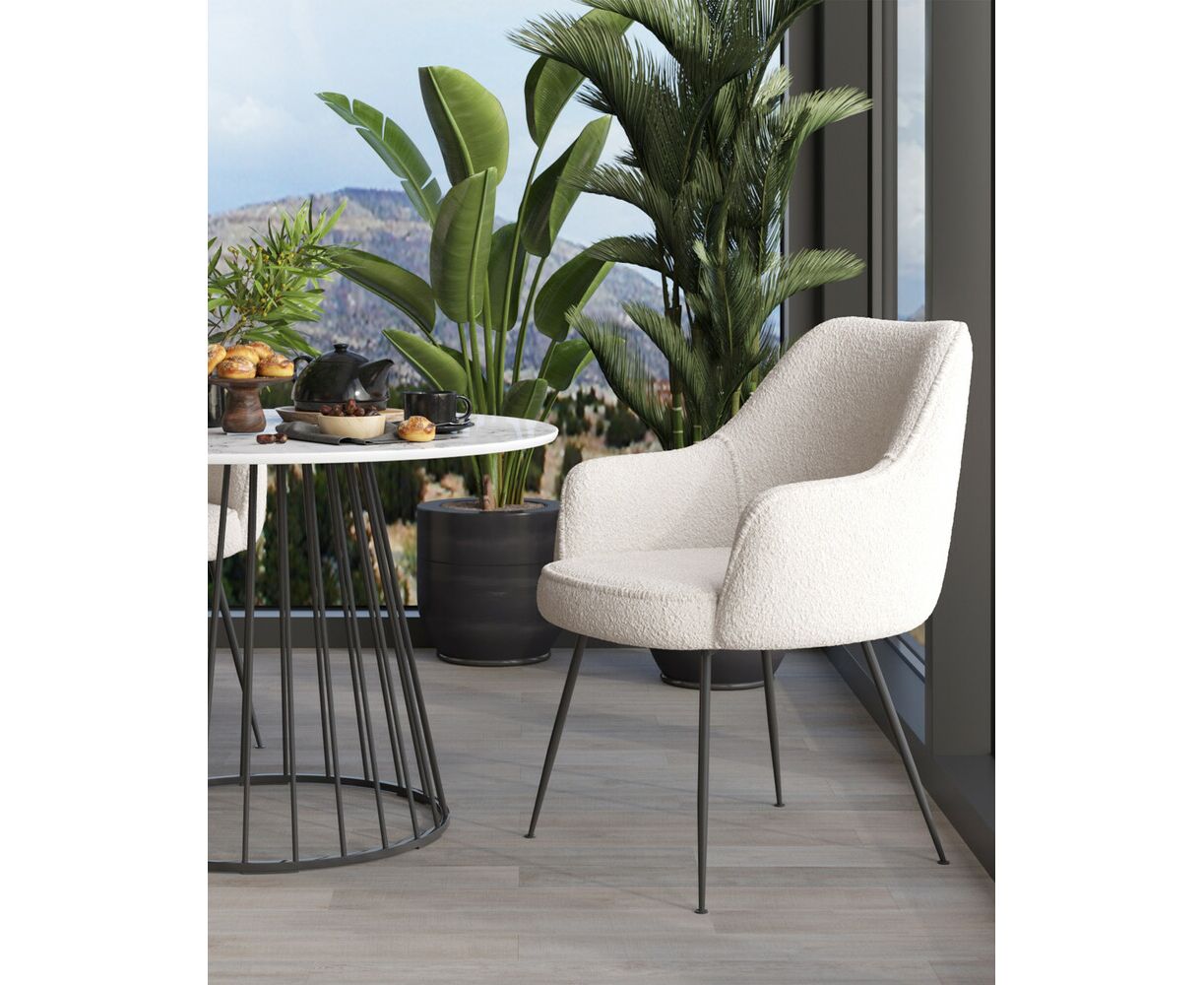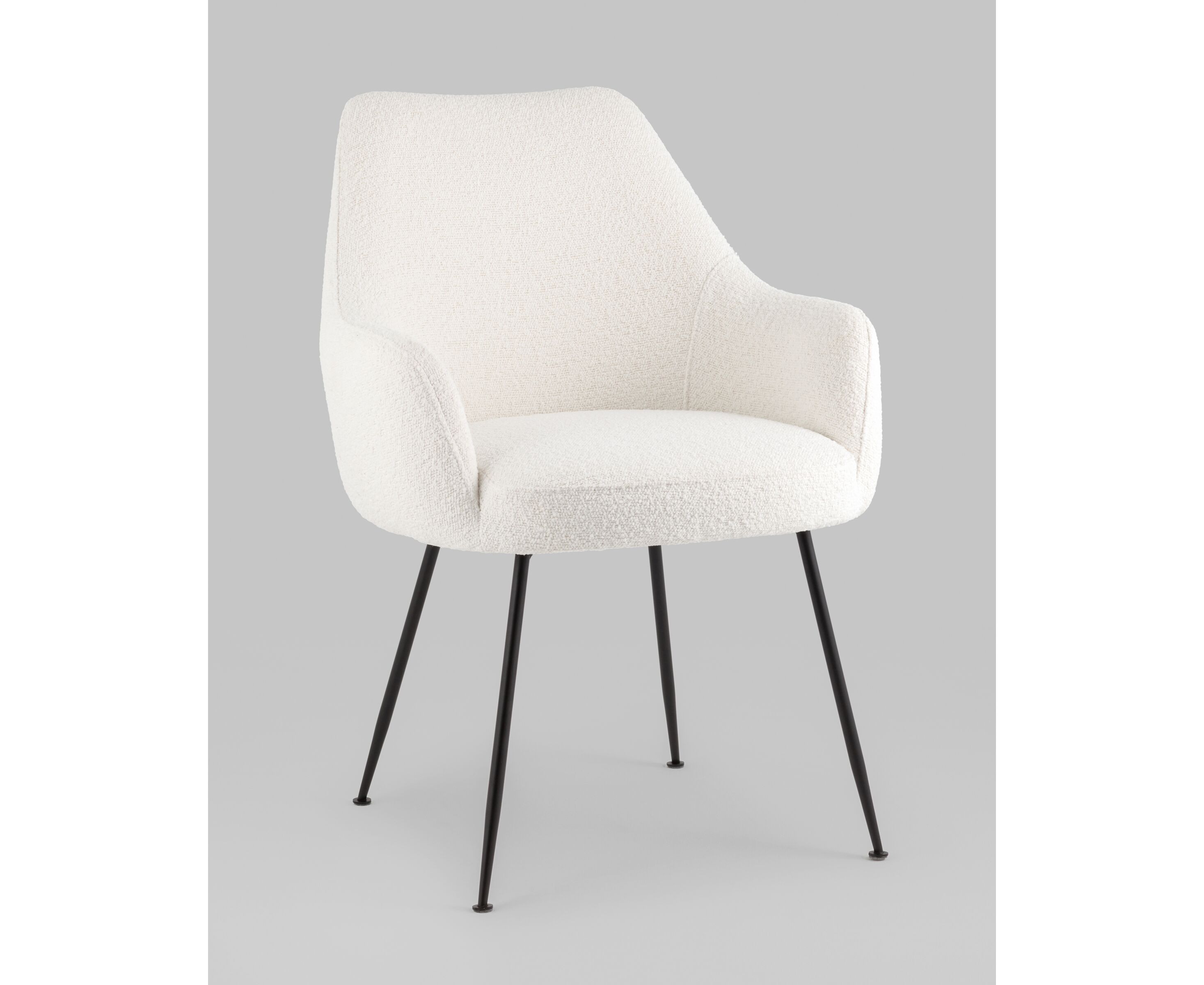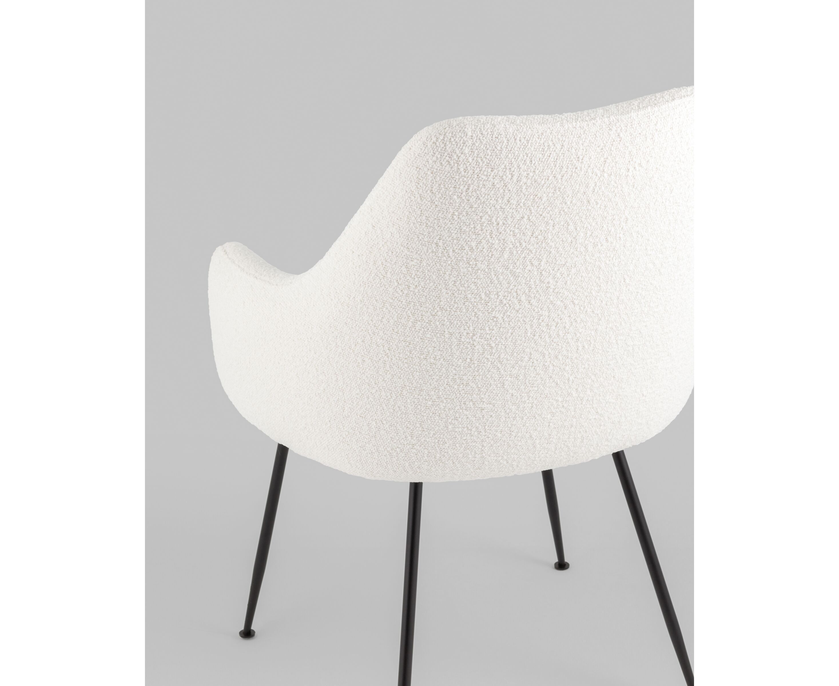 Кресло Floret букле белый с подлокотниками ножки металл черные