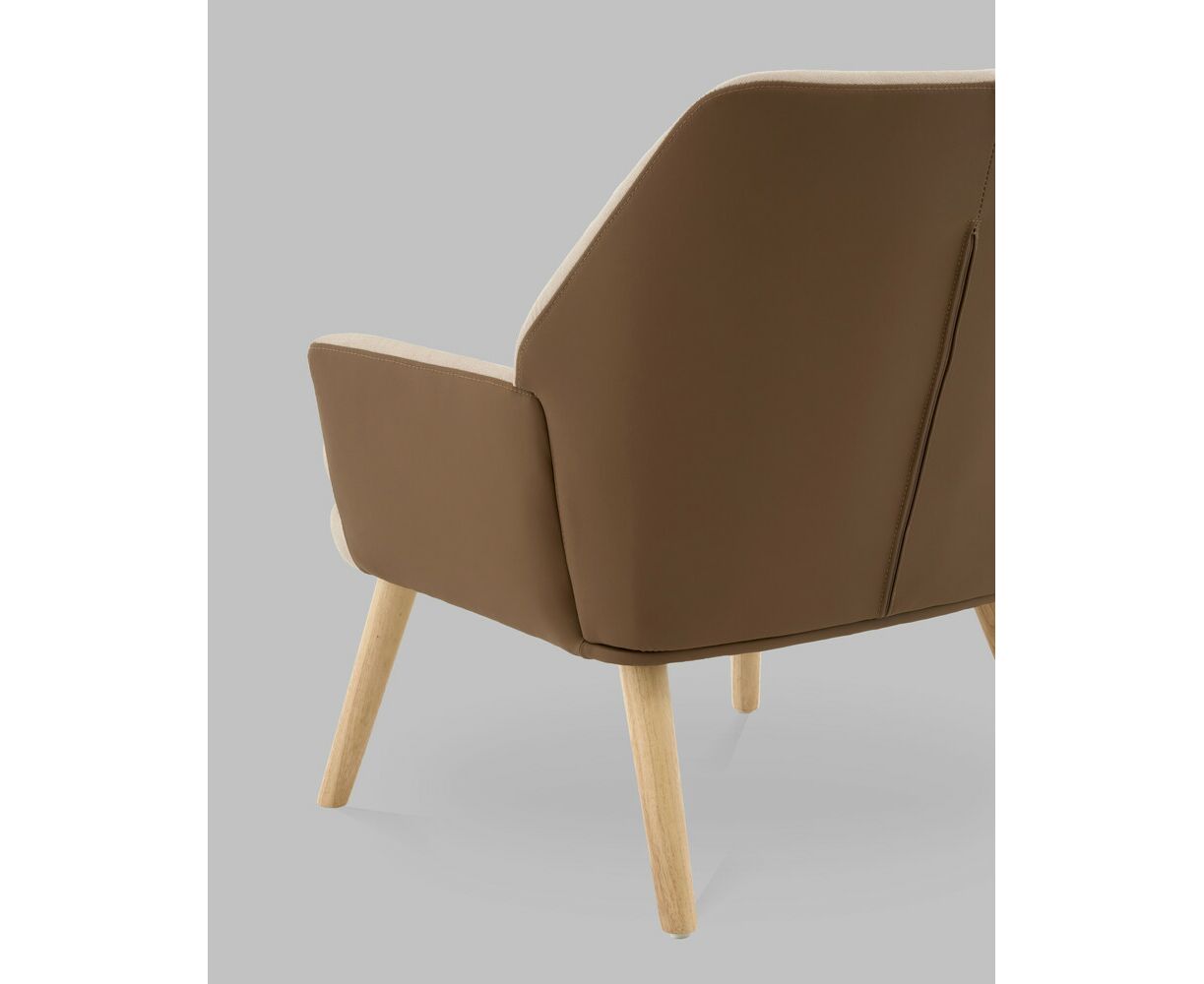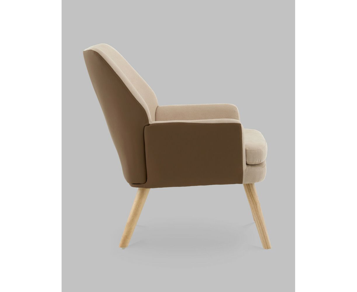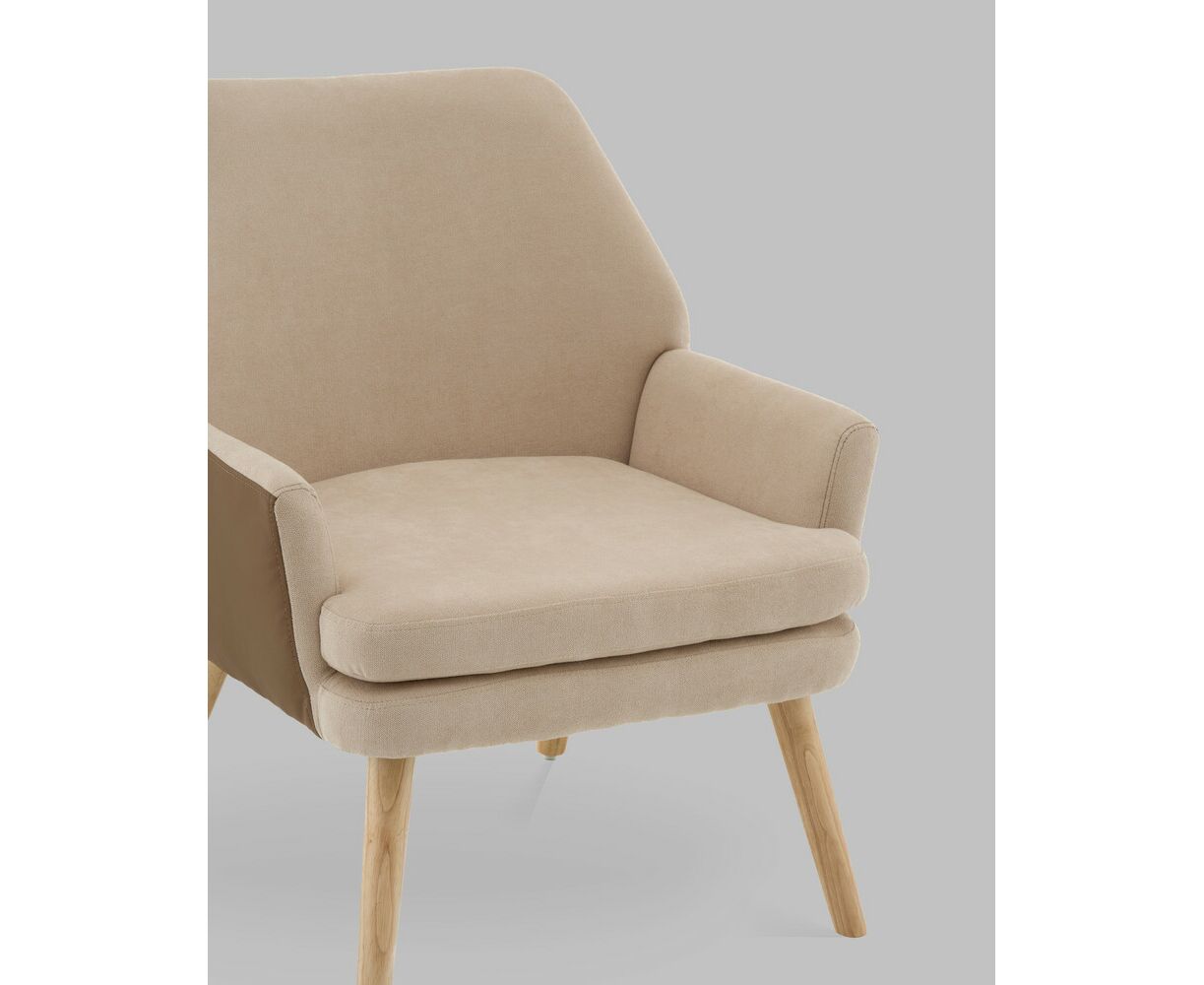 Кресло Харви бежевый с коричневой экокожей деревянные ножки