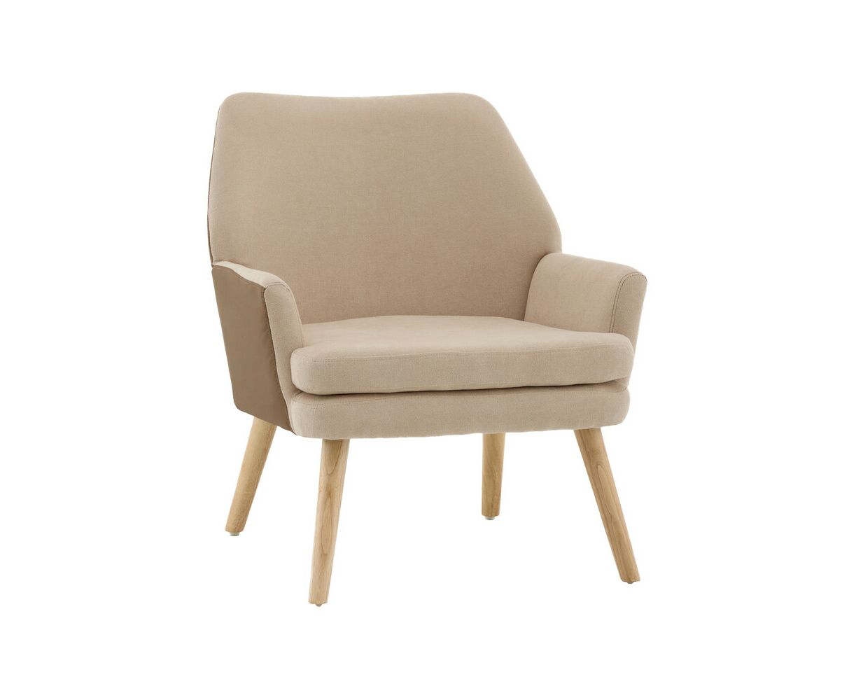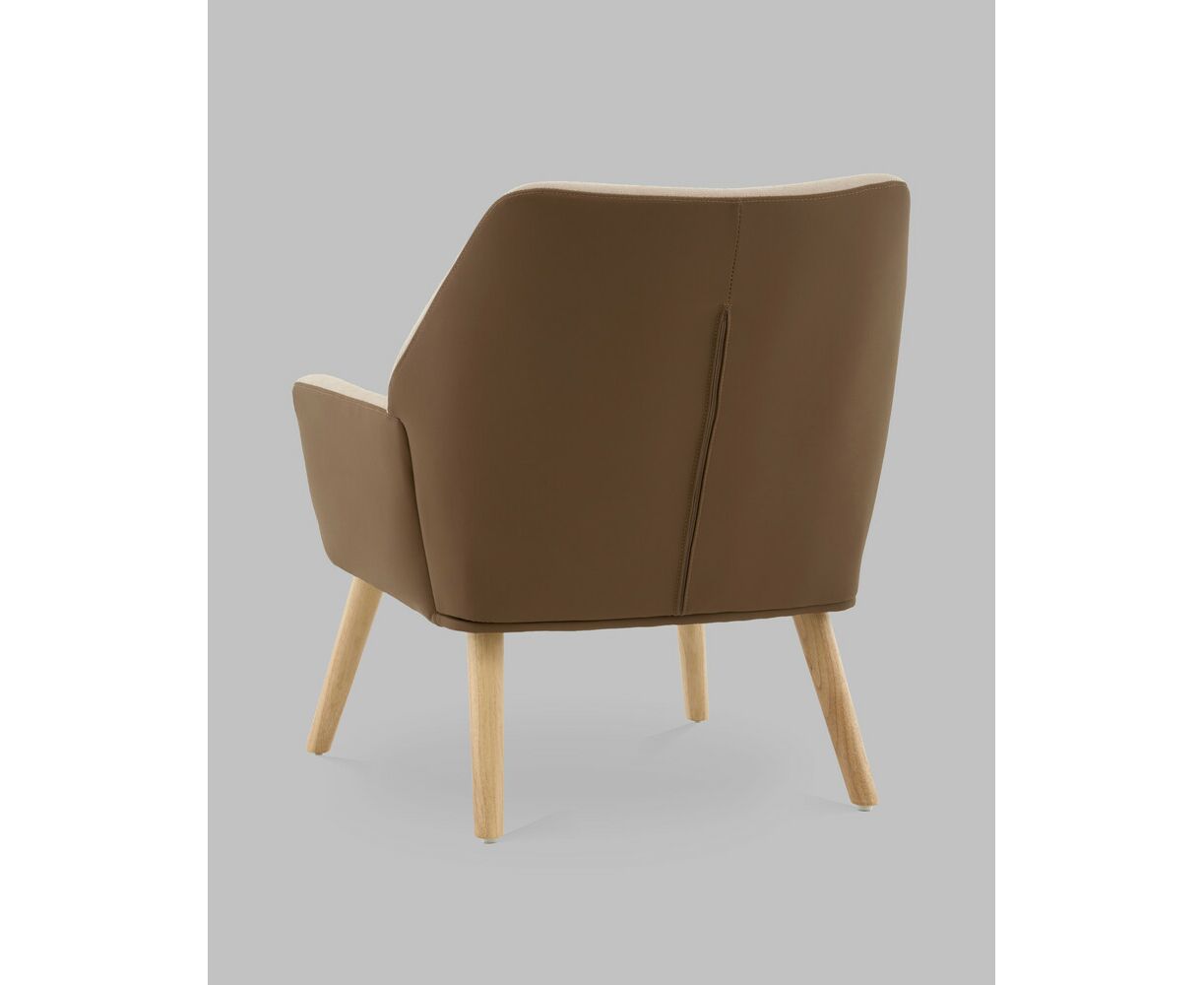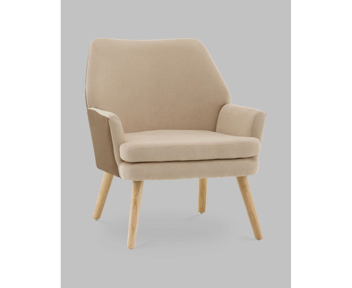 Кресло Харви бежевый с коричневой экокожей деревянные ножки