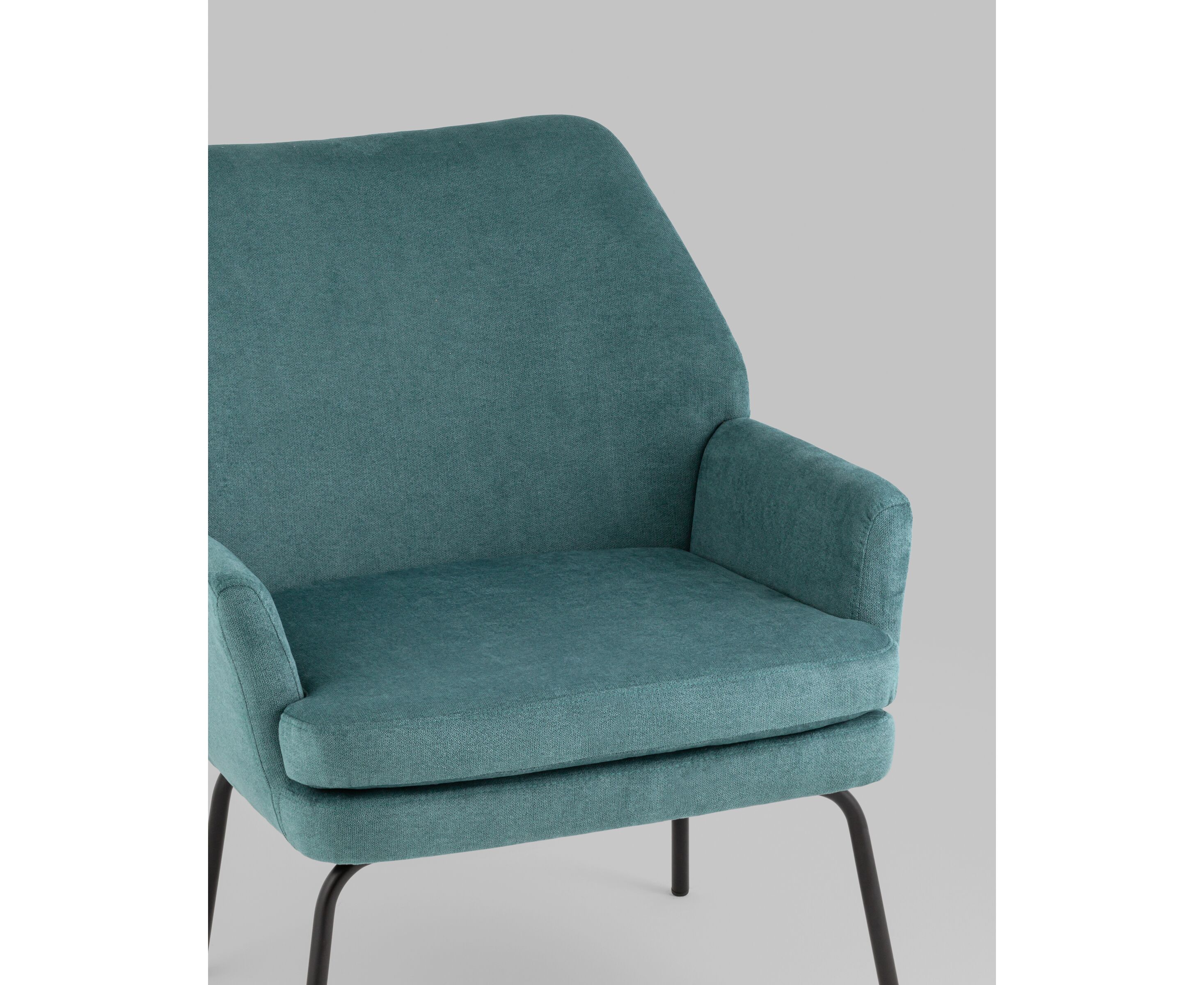 Широкое сиденье с мягкой поддерживающей спинкой подарит комфорт и уют. Обивка из мягкой ткани обеспечивает комфорт и уют. Крепкие металлические ножки, окрашенные порошковой краской в черном цвете, способны выдерживать большие нагрузки. На ножках дополнительно предусмотрены специальные подпятники, которые предотвращают скольжение и повреждение напольного покрытия.
