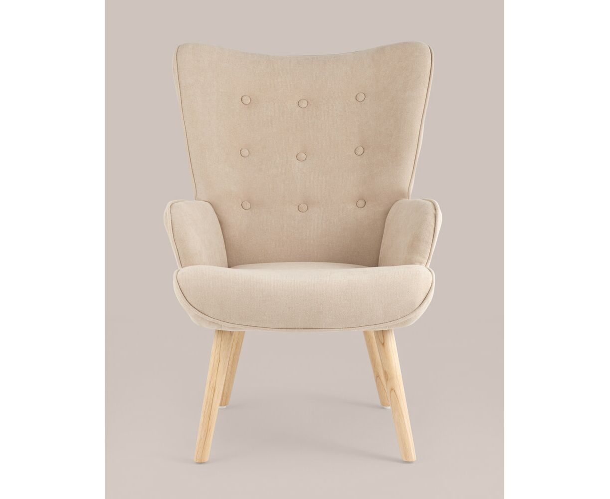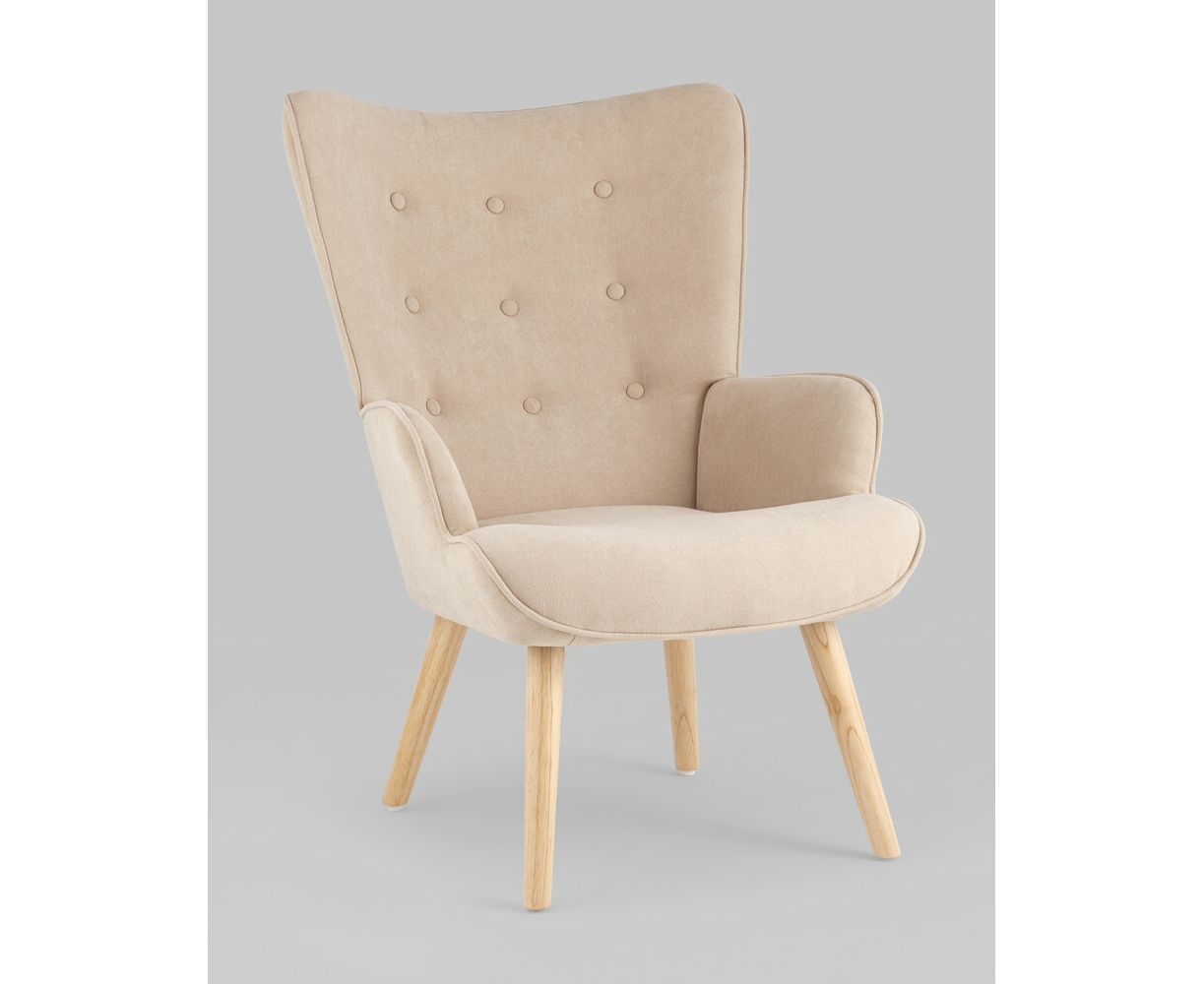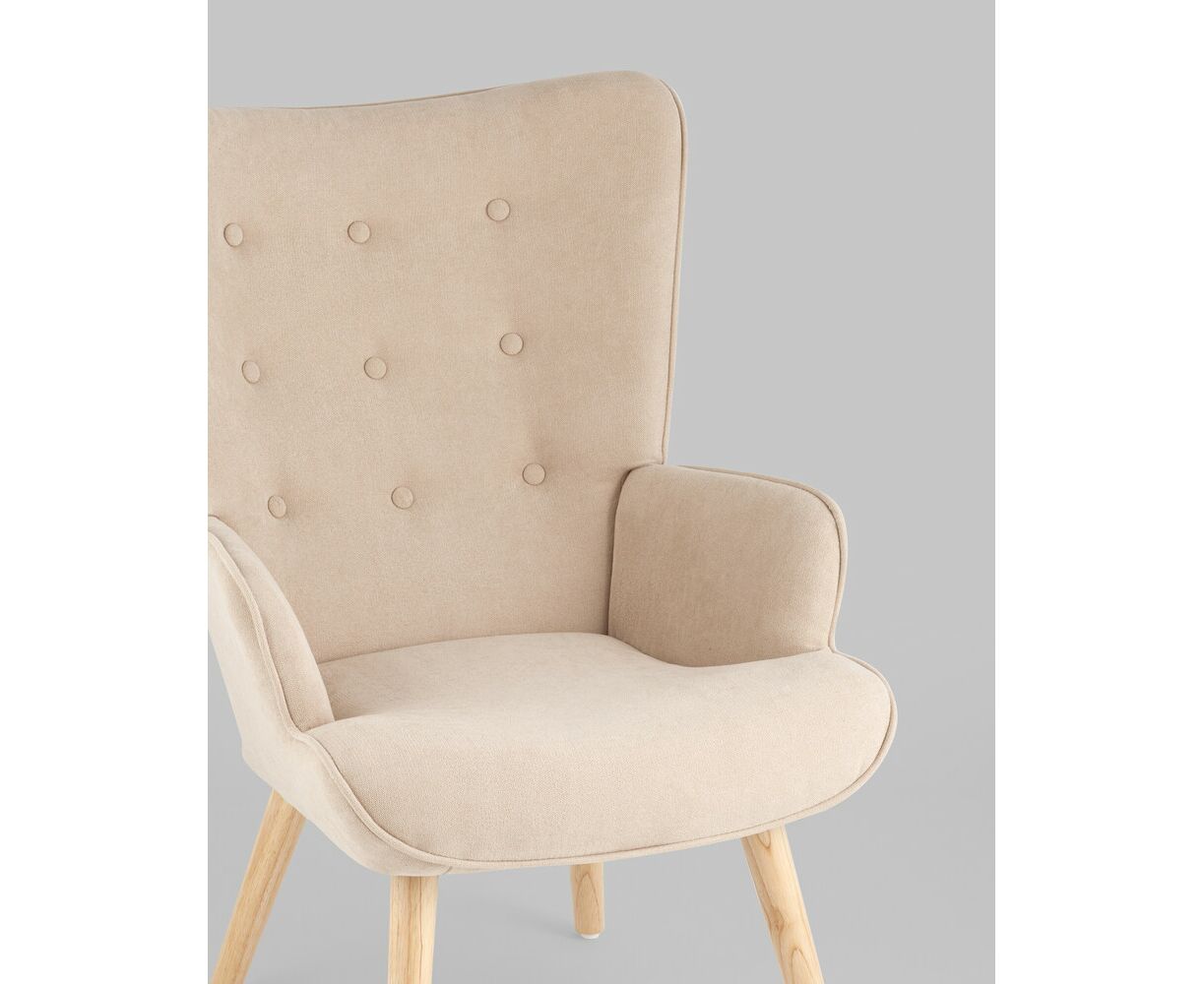 Кресло Хью бежевый обивка ткань с ножки массив дерева