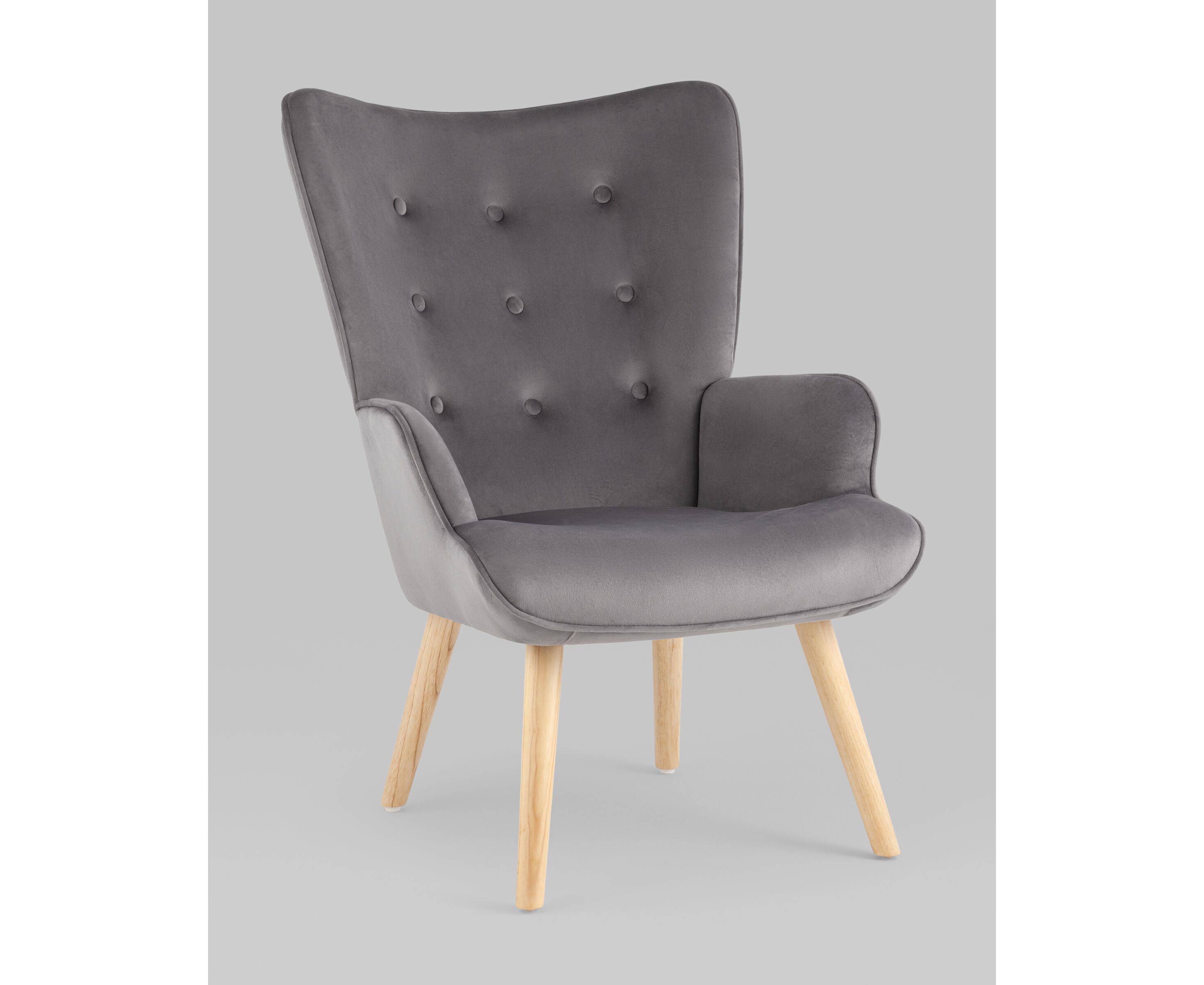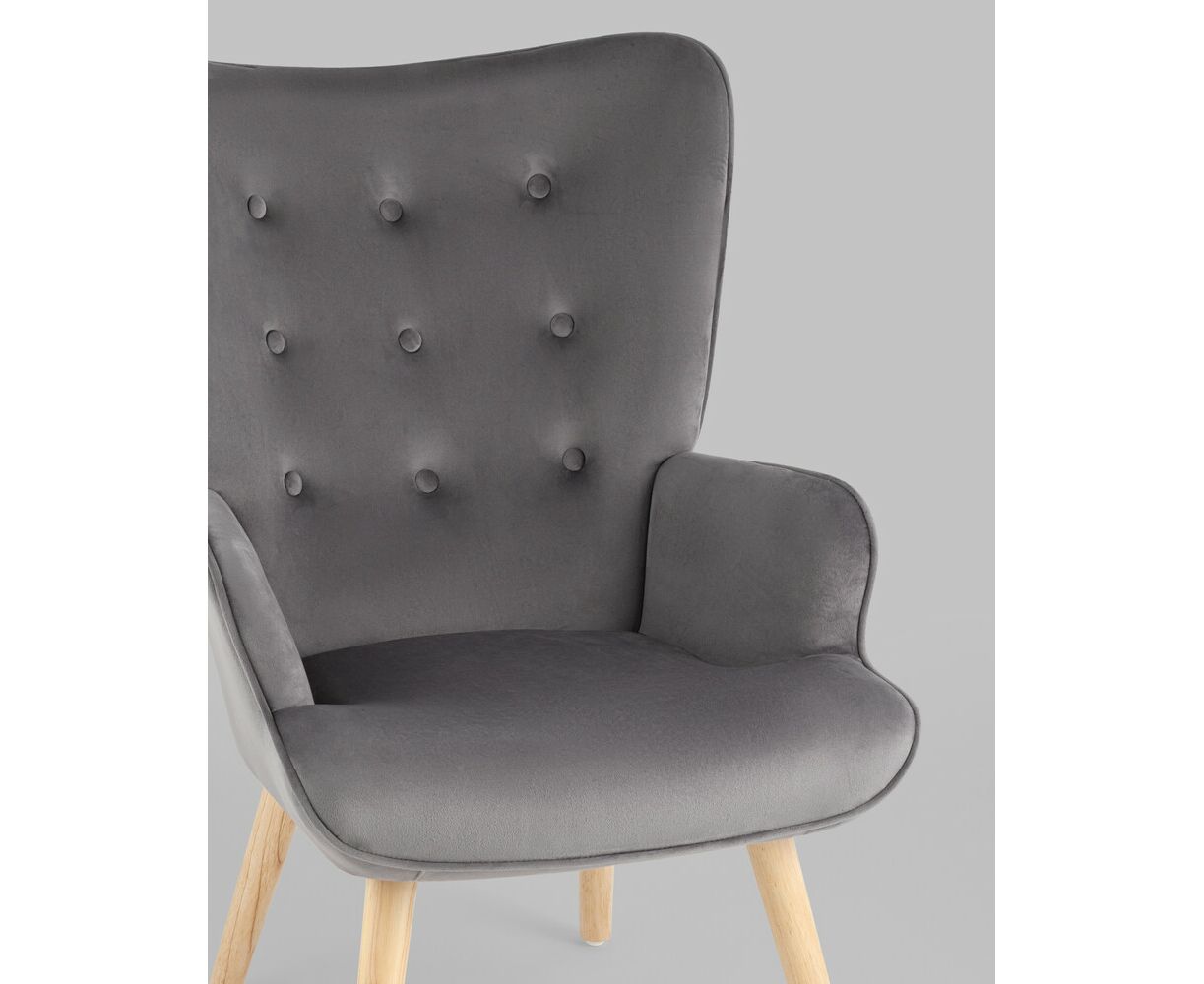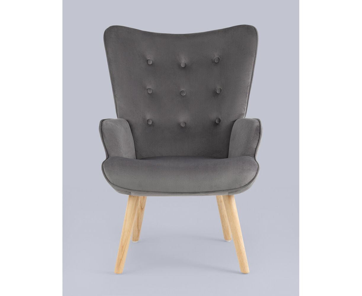 Кресло Хью серый обивка велюр с ножки массив дерева