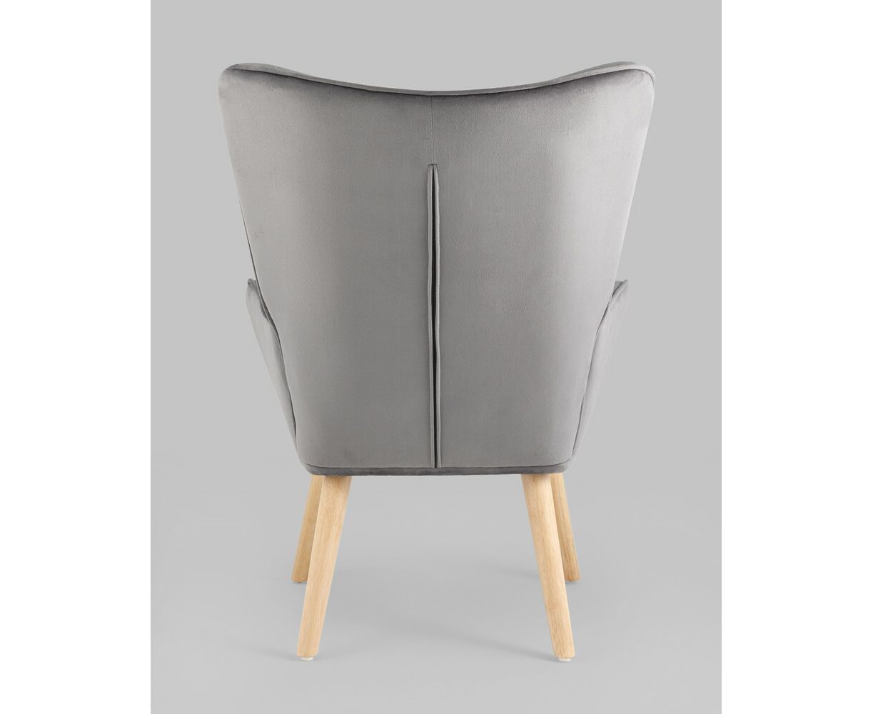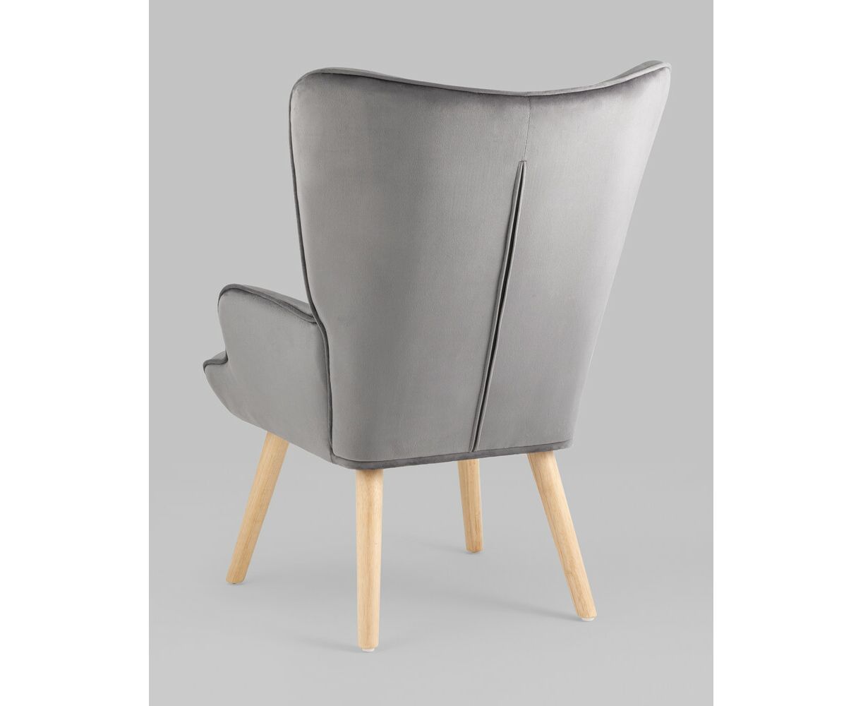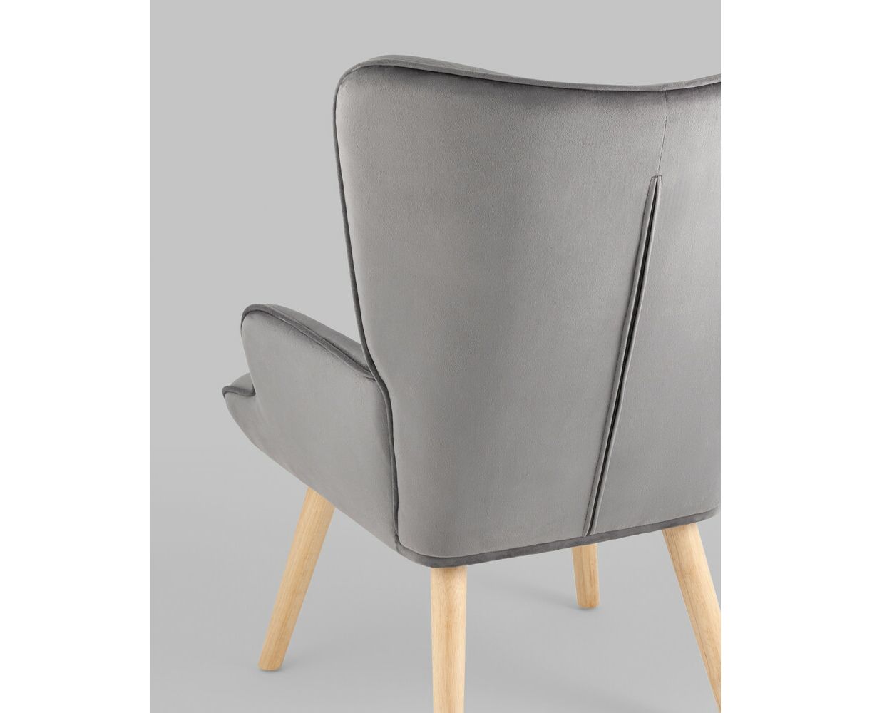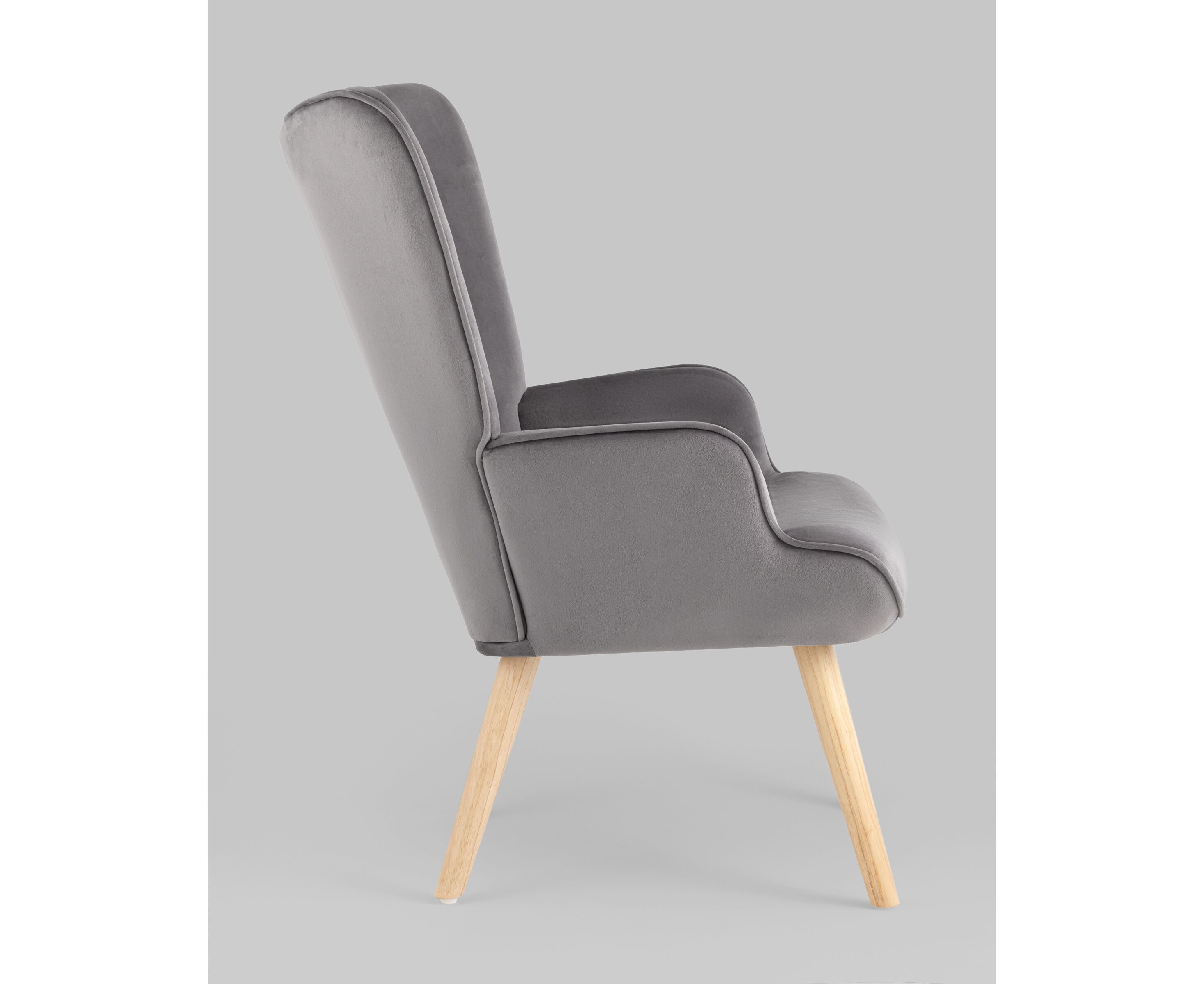 Кресло Хью серый обивка велюр с ножки массив дерева