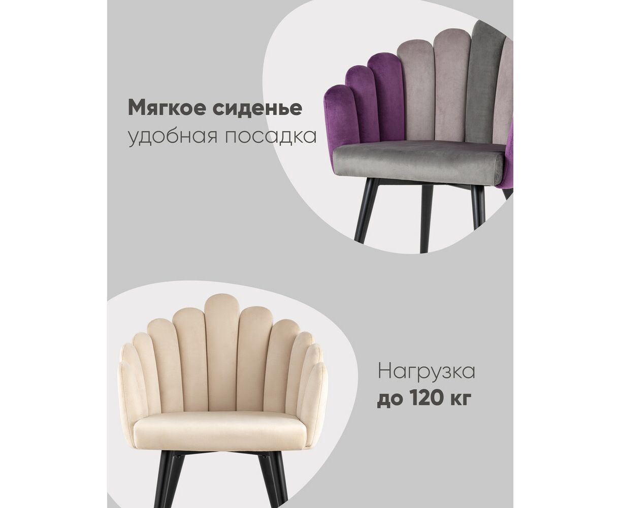 Яркое многоцветное кресло с обивкой из прочного велюра. Надежная опора достигается благодаря металлическому каркасу и удобным устойчивым ножкам с золотым декором. Спинка с оригинальным дизайном украшена широкими полосами в виде веера.