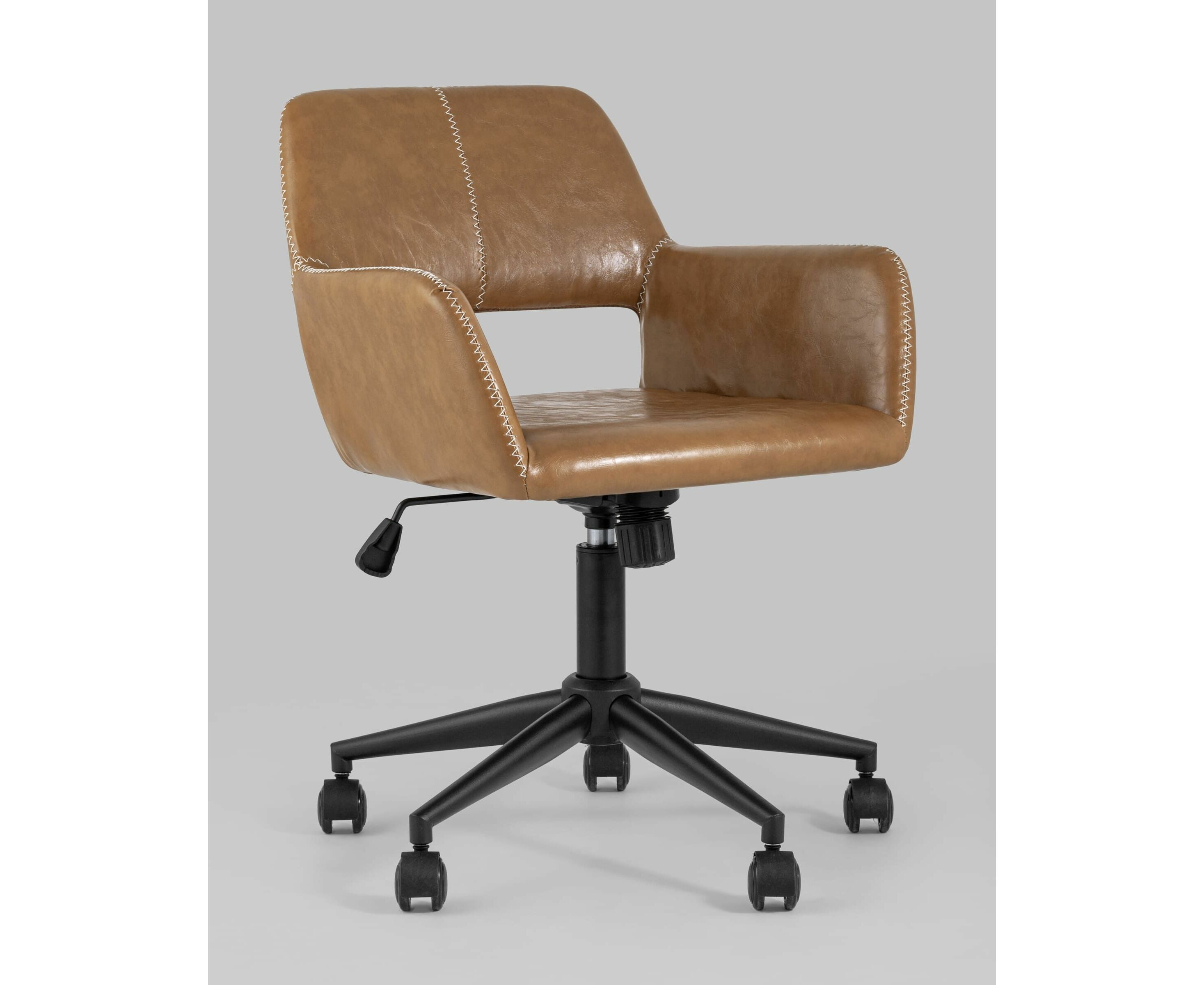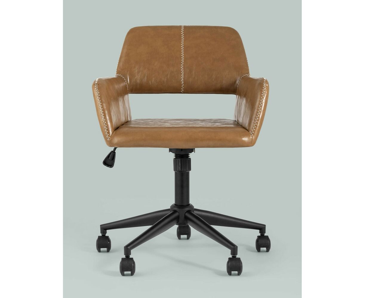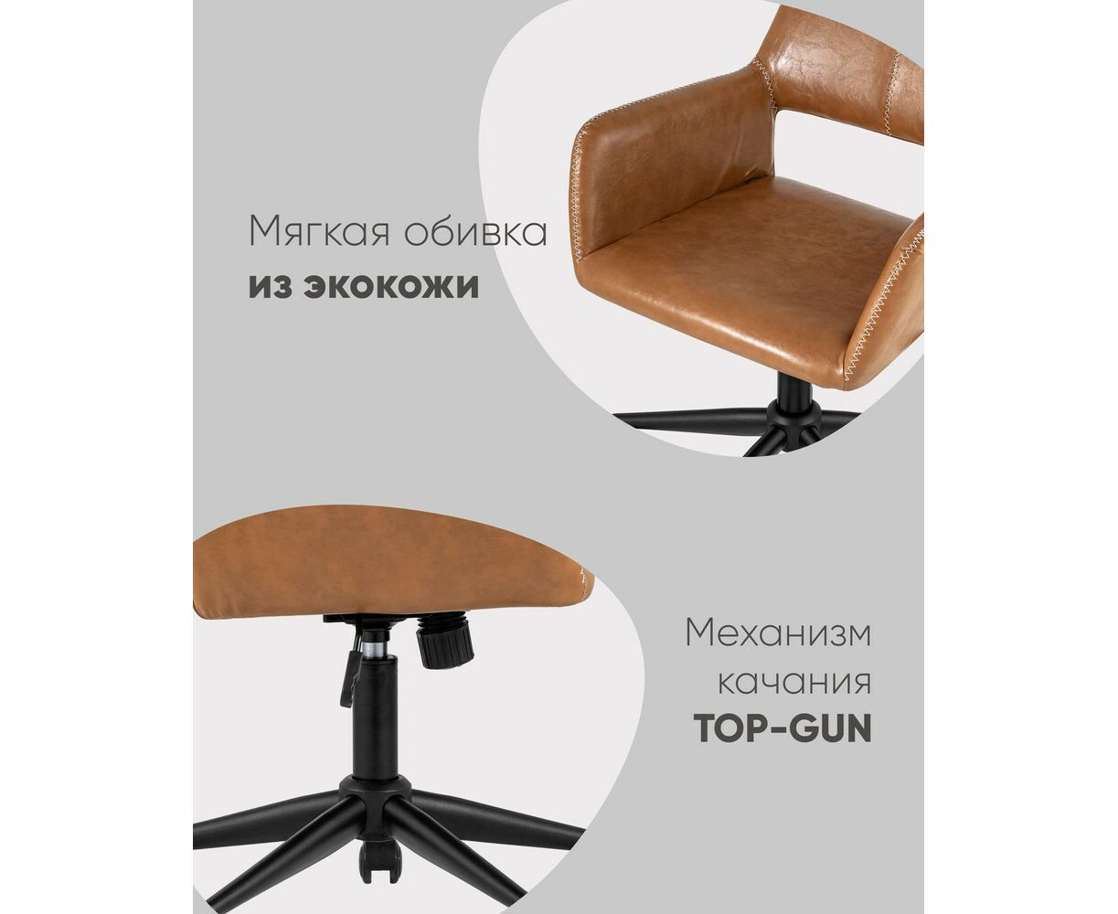 Уютное и стильное офисное кресло в обивке из экокожи. Комфорта добавляют удобные подлокотники, а благодаря механизму регулировки высоты можно выбрать удобное положение.