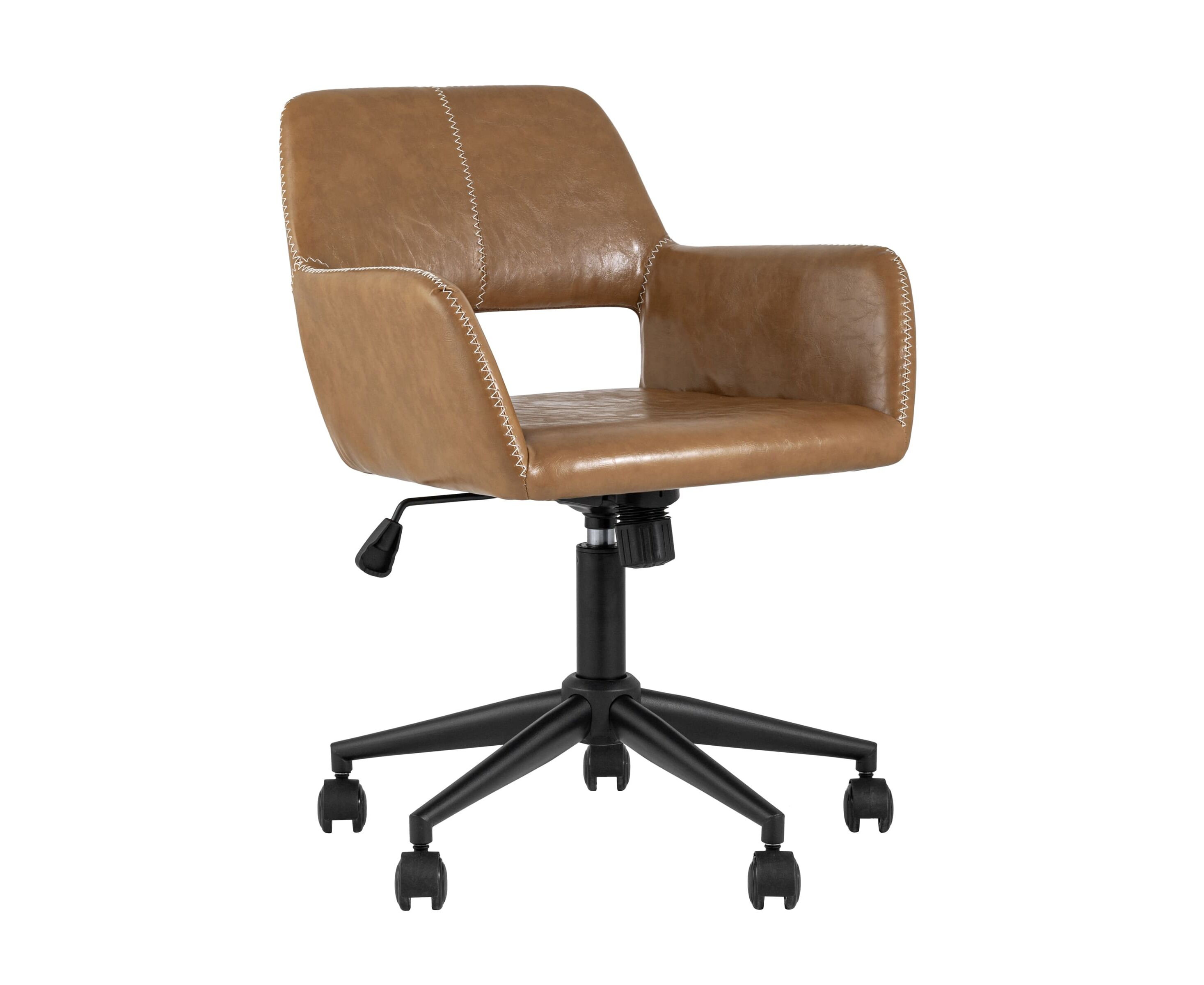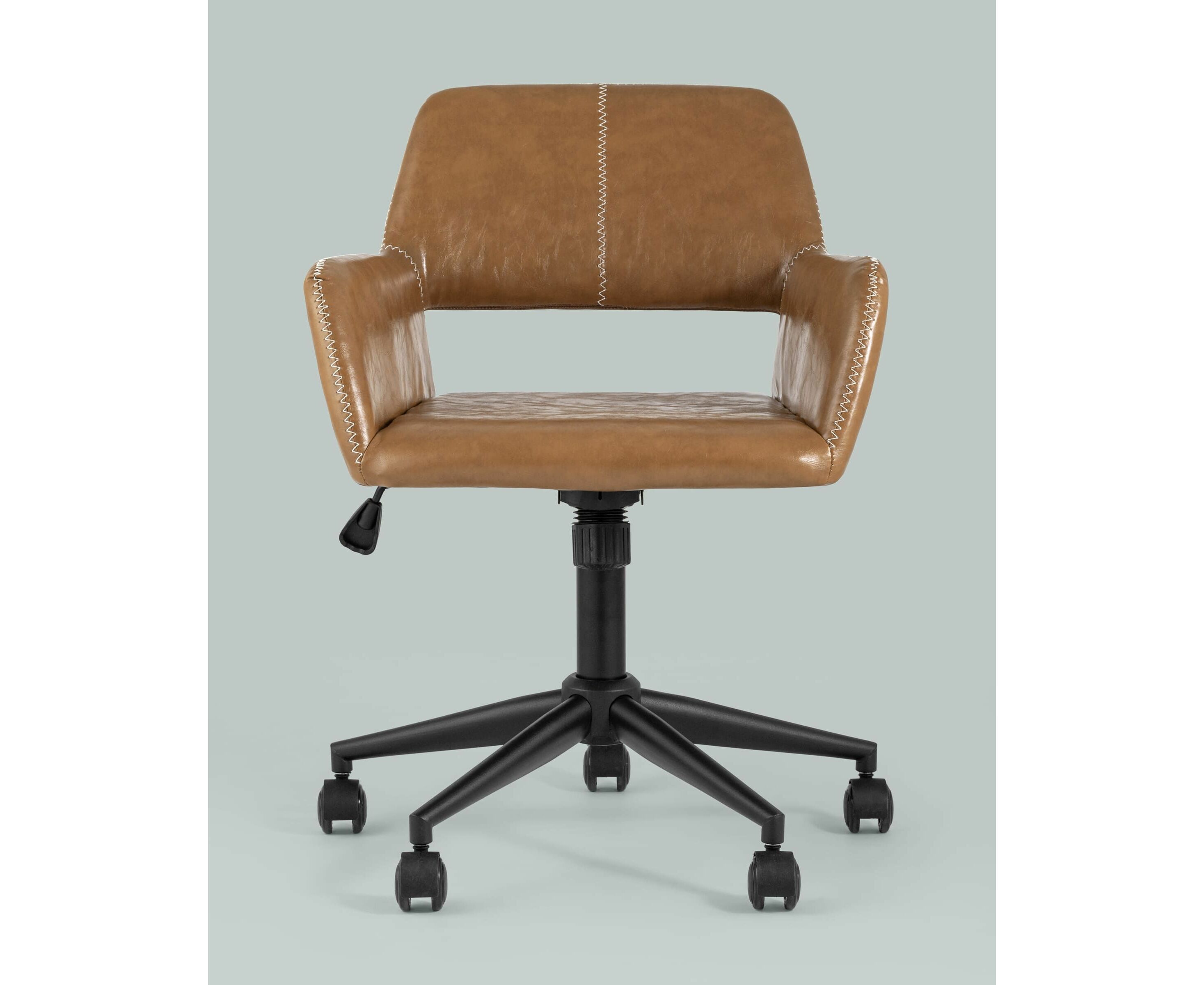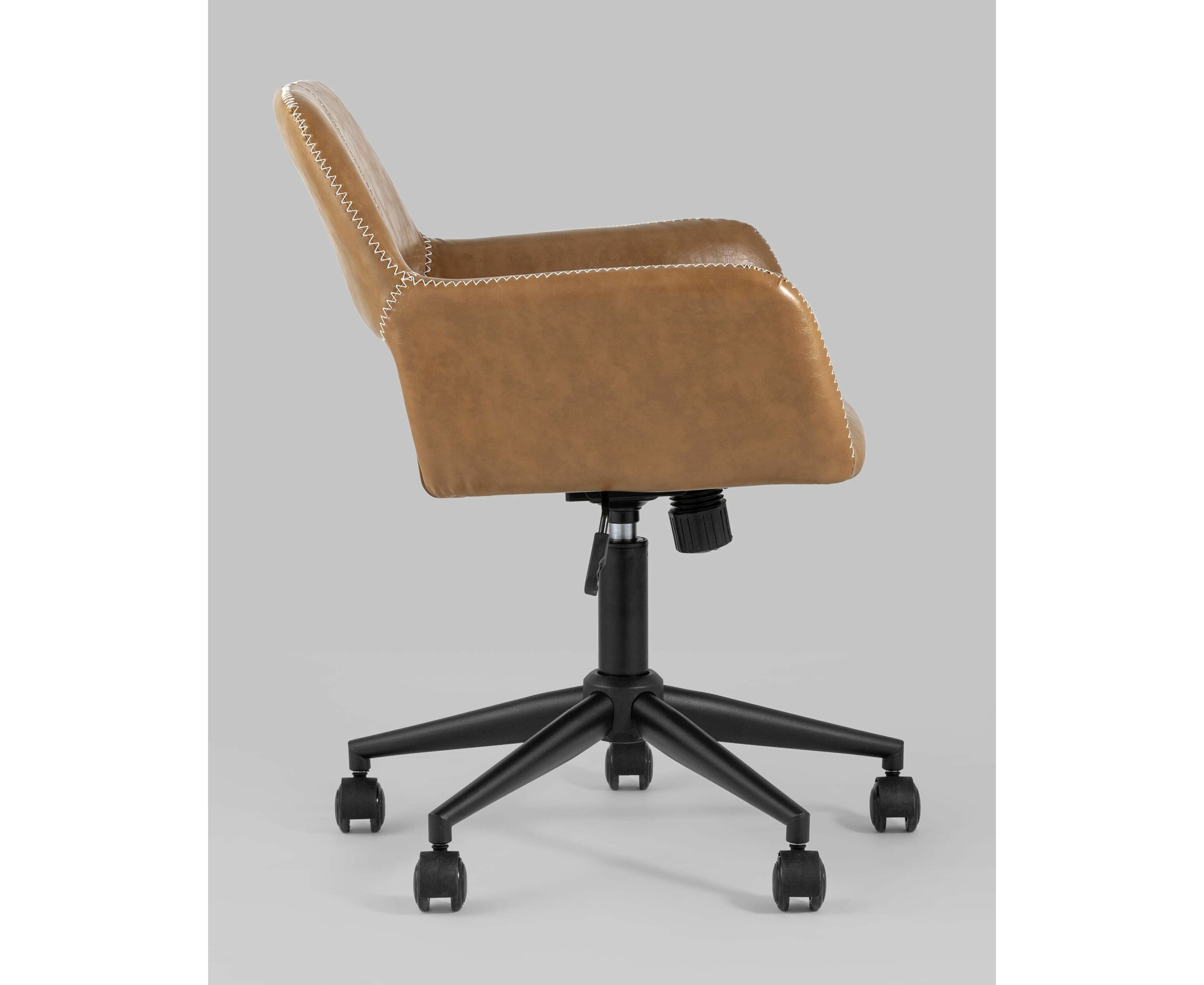 Уютное и стильное офисное кресло в обивке из экокожи. Комфорта добавляют удобные подлокотники, а благодаря механизму регулировки высоты можно выбрать удобное положение.