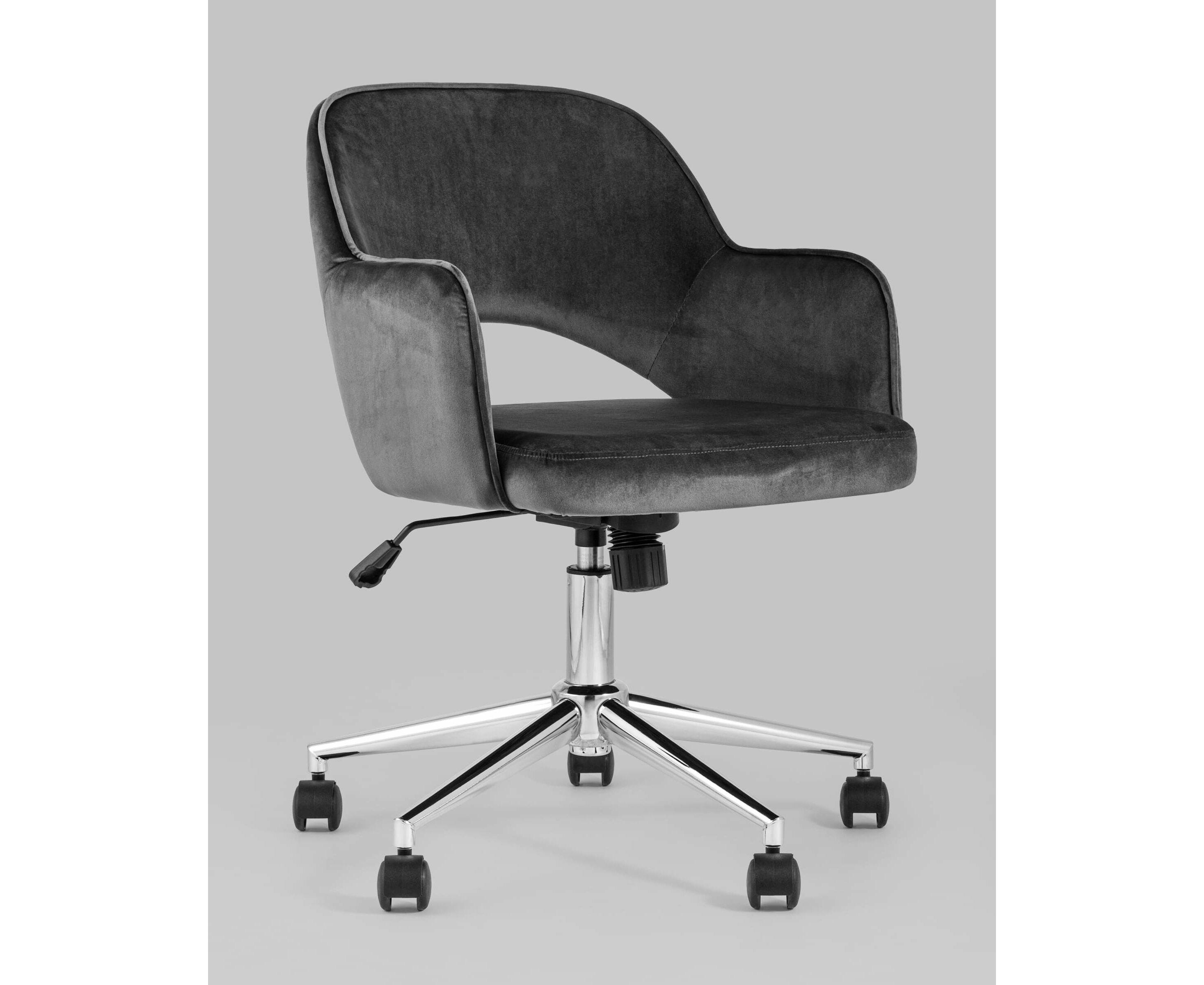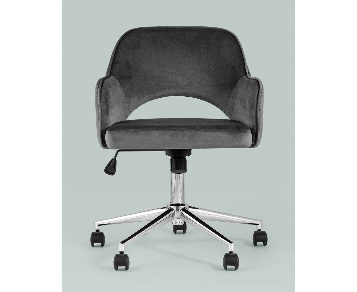 Уютное и стильное офисное кресло в обивке из велюра. Комфорта добавляют удобные подлокотники, а благодаря механизму регулировки высоты и качания можно выбрать удобное положение.