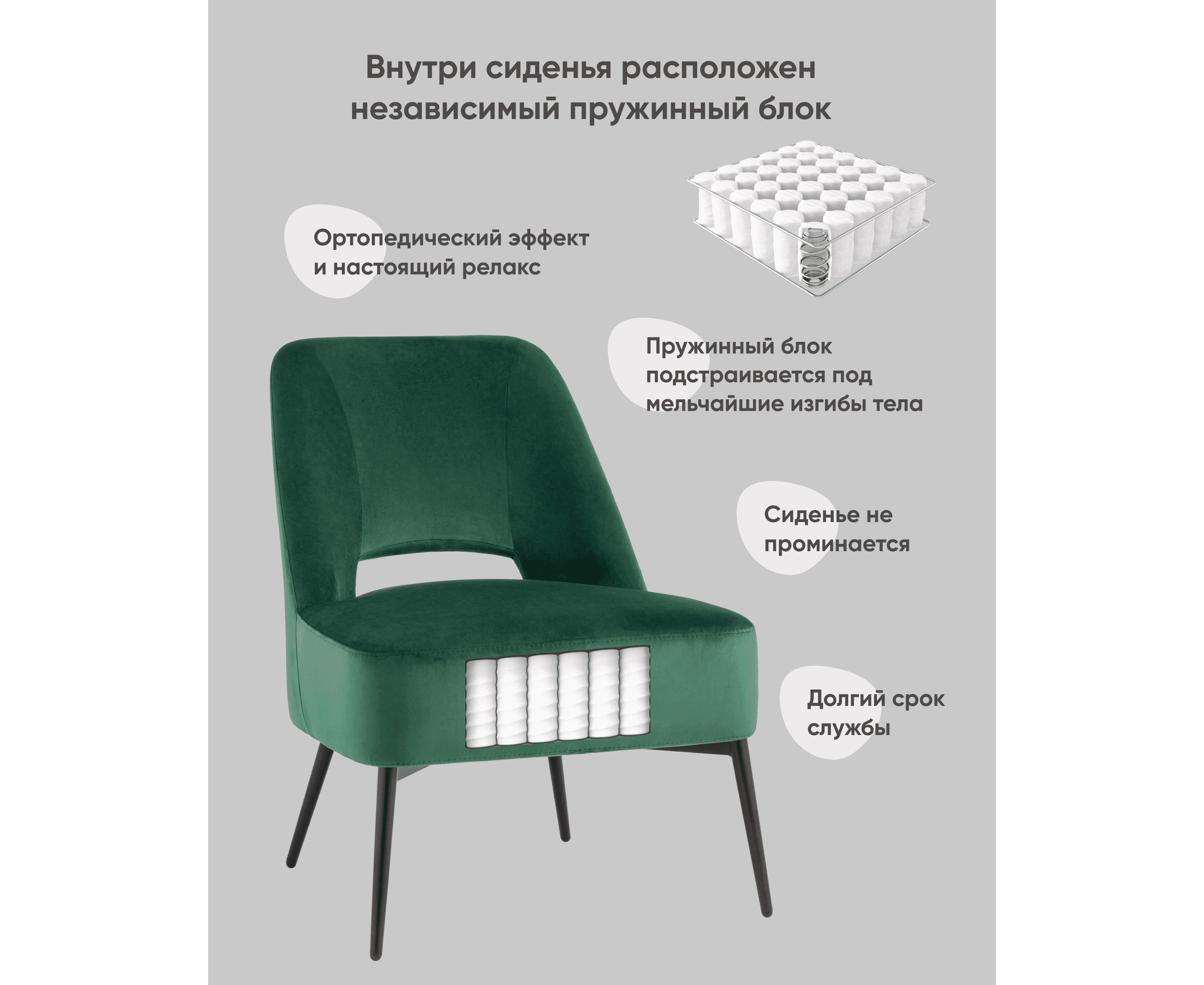 Кресло лаунж Бостон велюр зелёный ножки металл