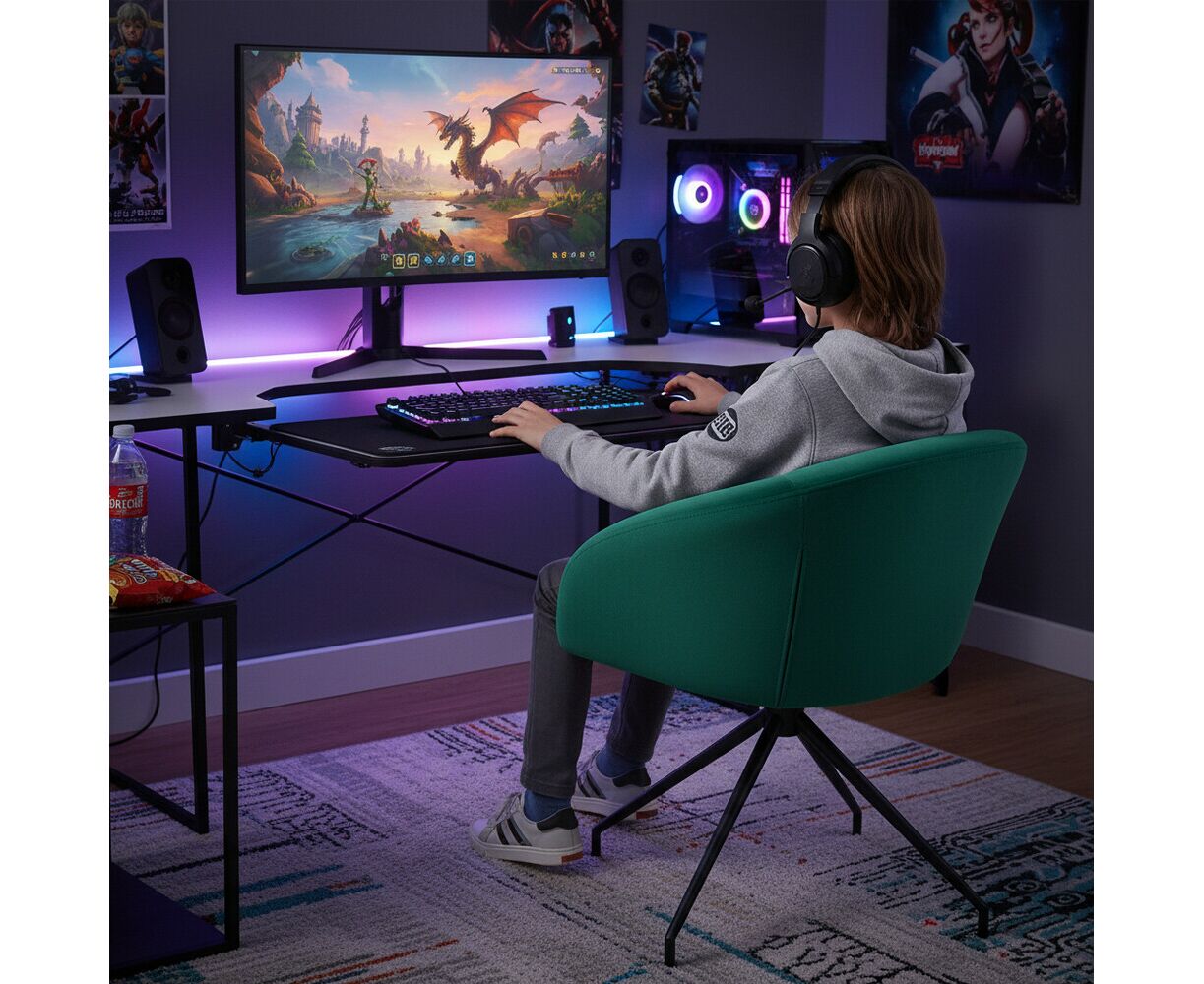 Кресло Less изумрудное, поворотное, черный металл
