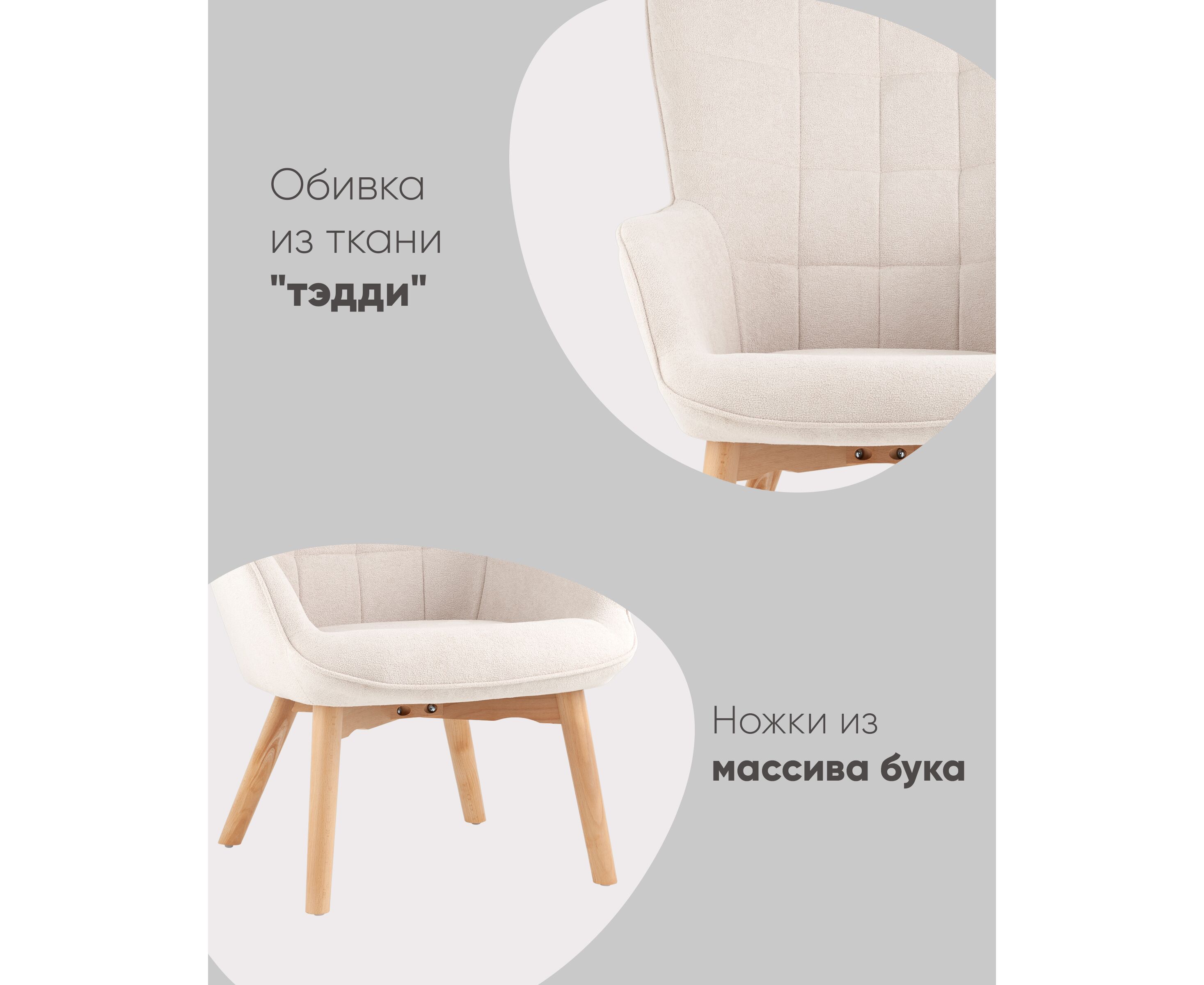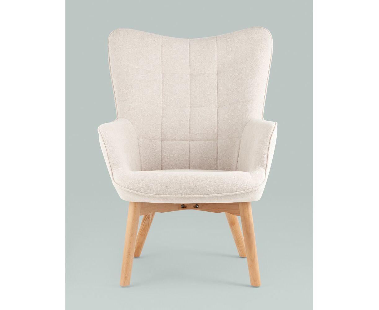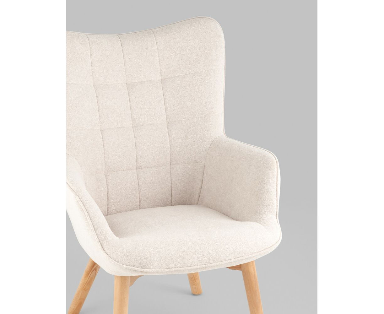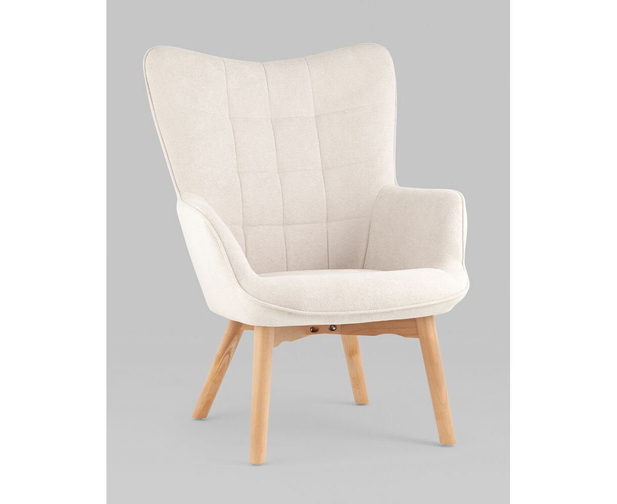 Кресло Манго белое, обивка ткань, с деревянными ножками