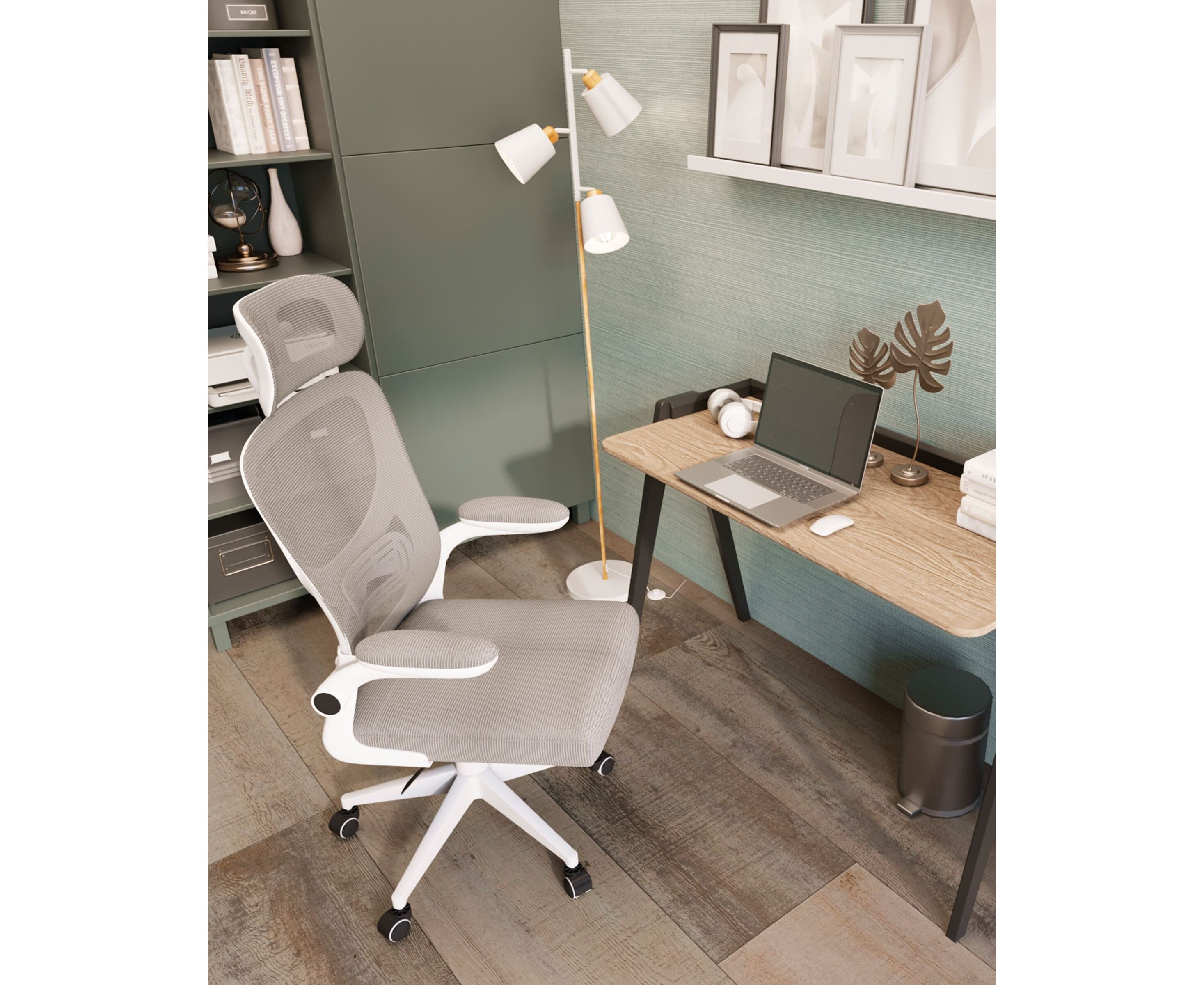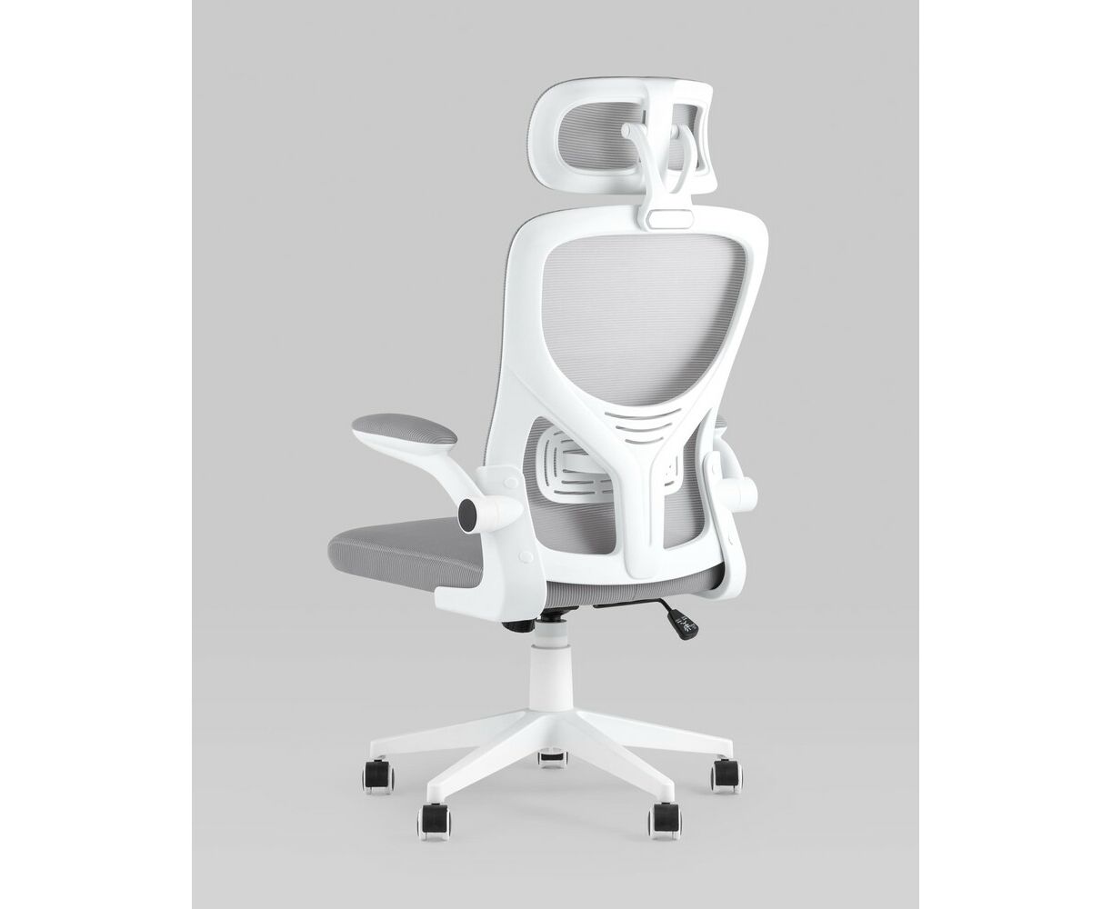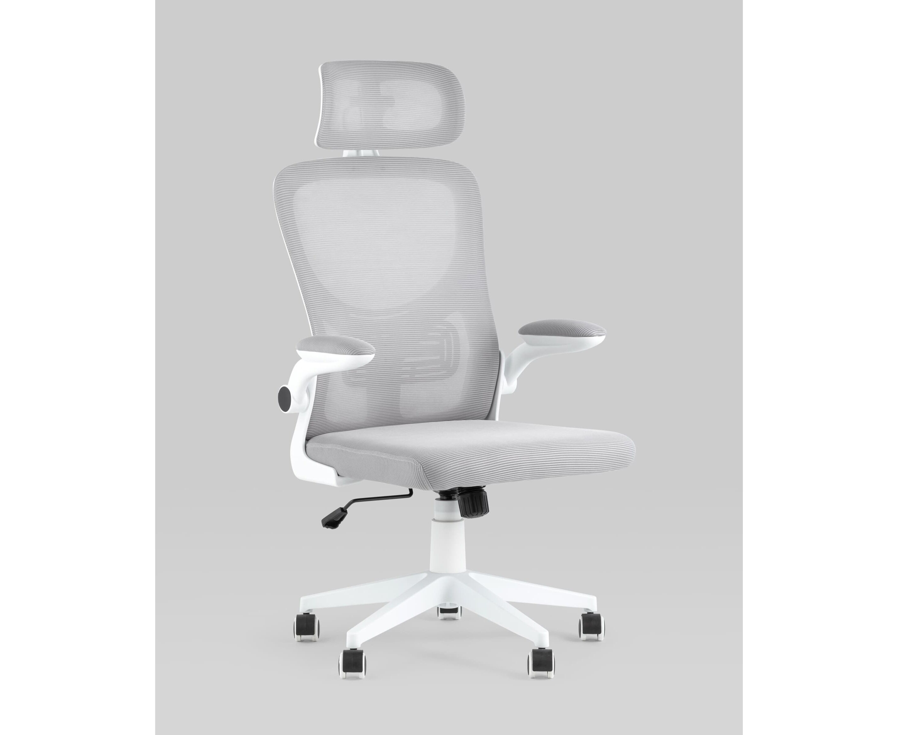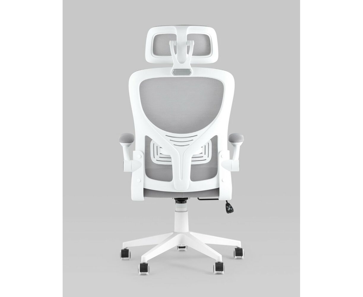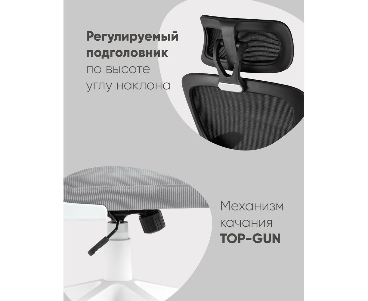 Компьютерное кресло TopChairs Airone офисное белое, обивка из сетки и текстиля, механизм качания Top Gun