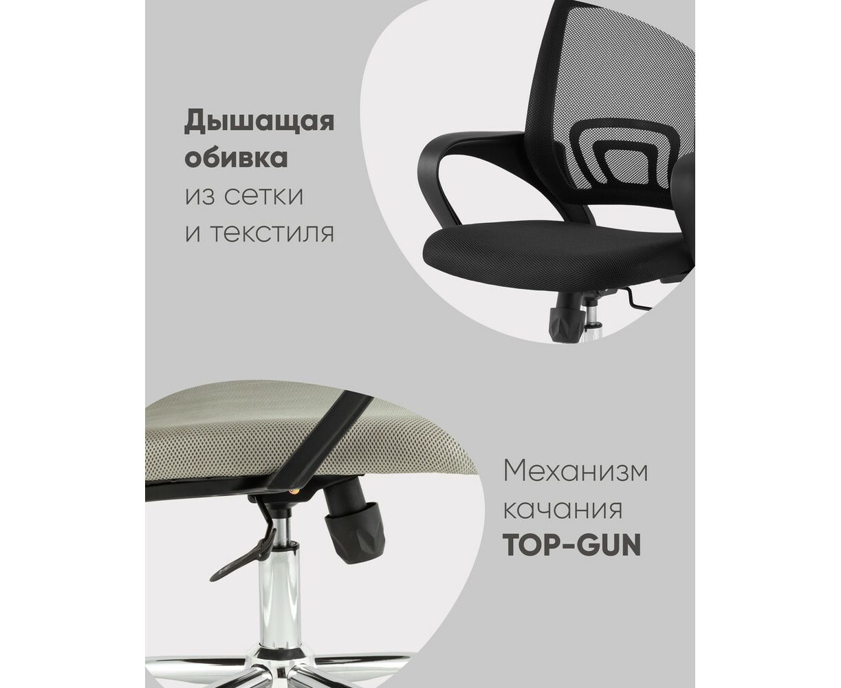 Компьютерное кресло TopChairs Simple New офисное черный в обивке из текстиля с сеткой, механизм качания Top Gun