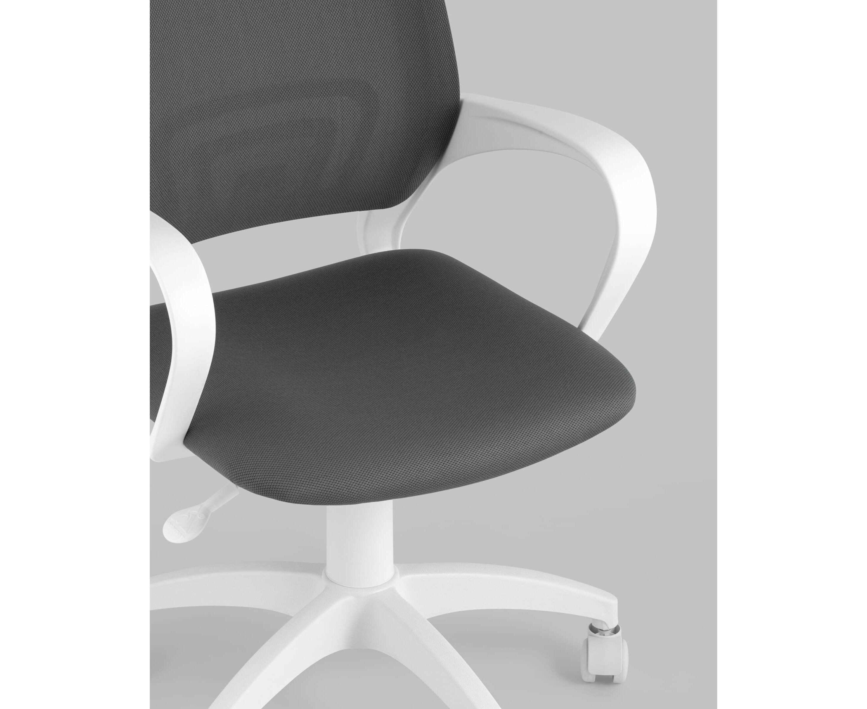 Его крестовина и подлокотники выполнены из крепкого пластика. Обивка на спинке и сиденье из сплошной ткани смотрится элегантно и стильно - это практичное решение для постоянного использования. Материал не боится повреждений и потертостей, на нем не видны пятна.