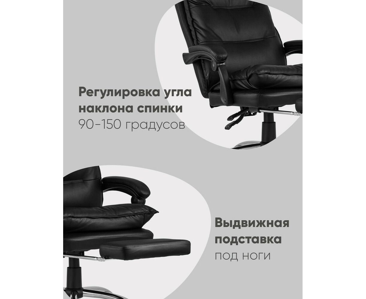 Комфортное кресло руководителя с выдвижной подставкой для ног позволяет расслабиться и отдохнуть в удобном положении.