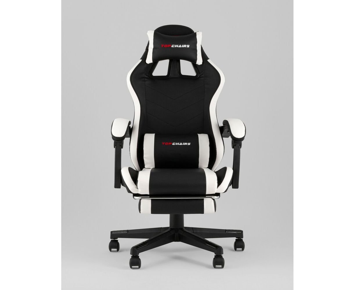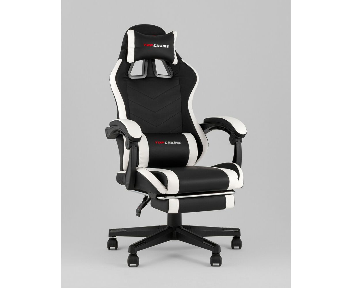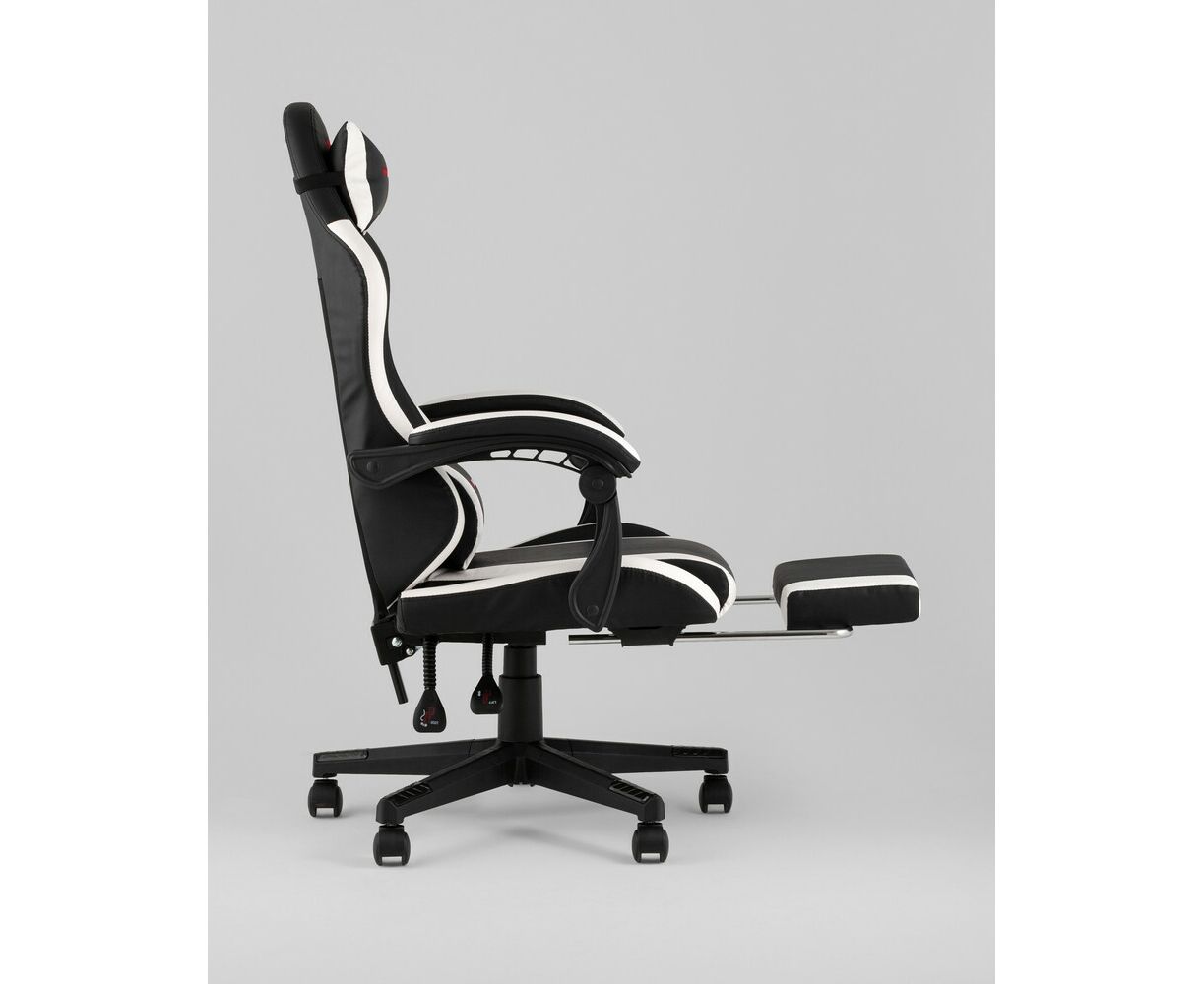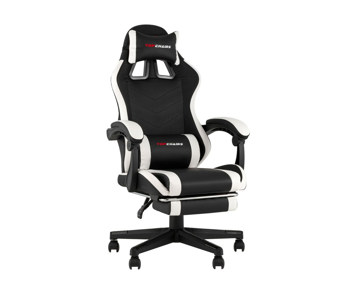 Кресло спортивное TopChairs Prophet с оттоманкой черно-белый