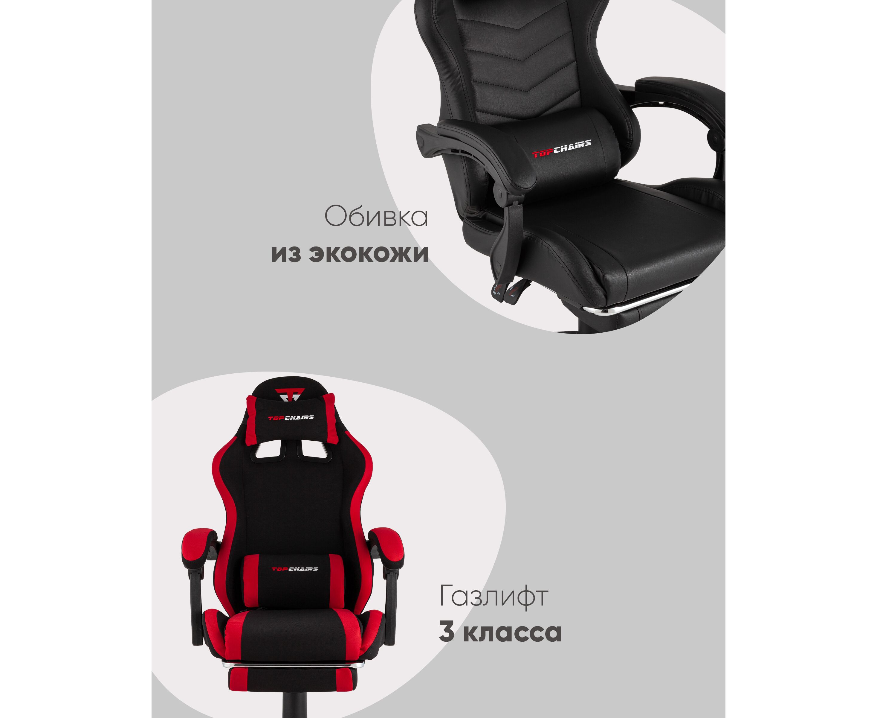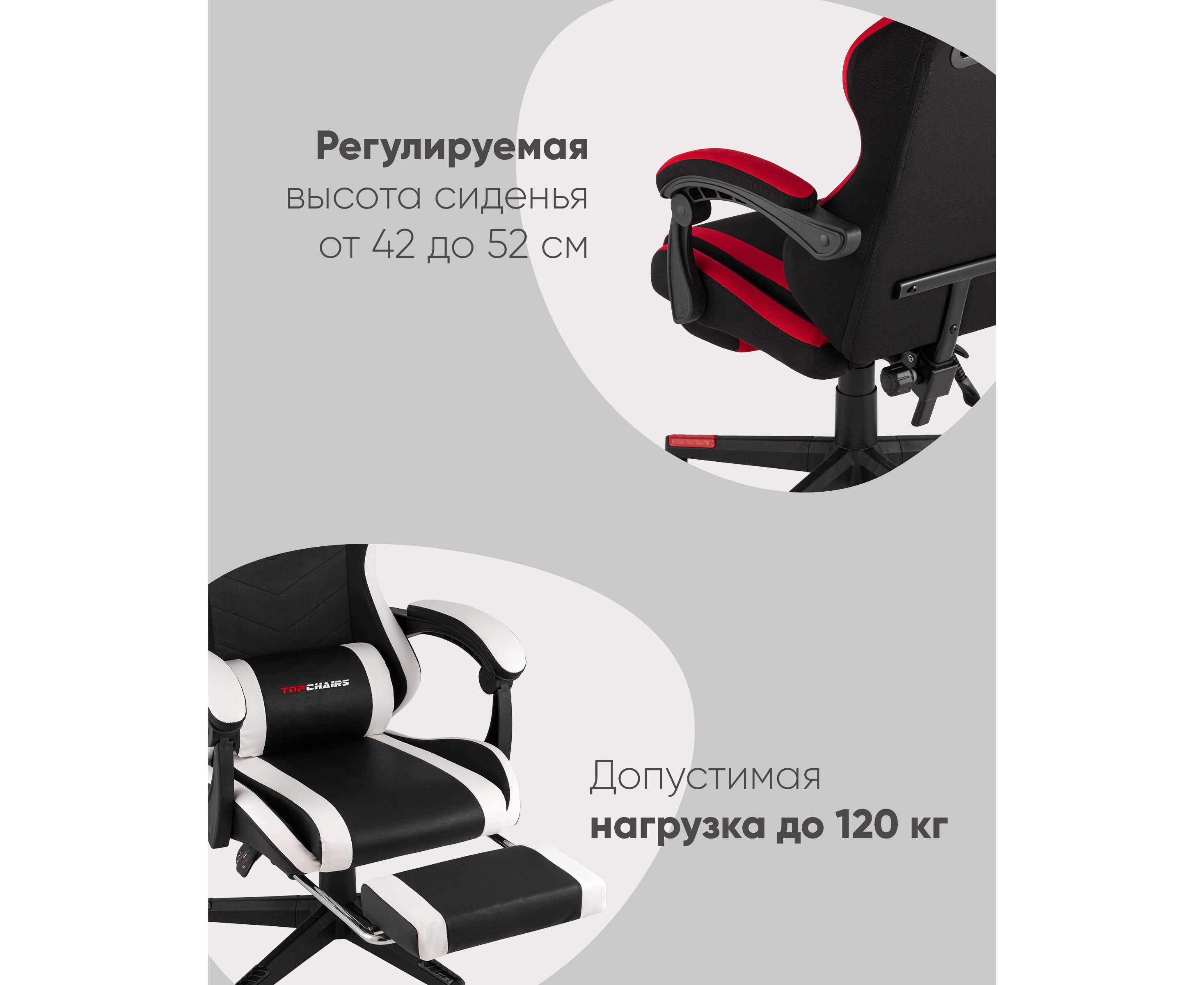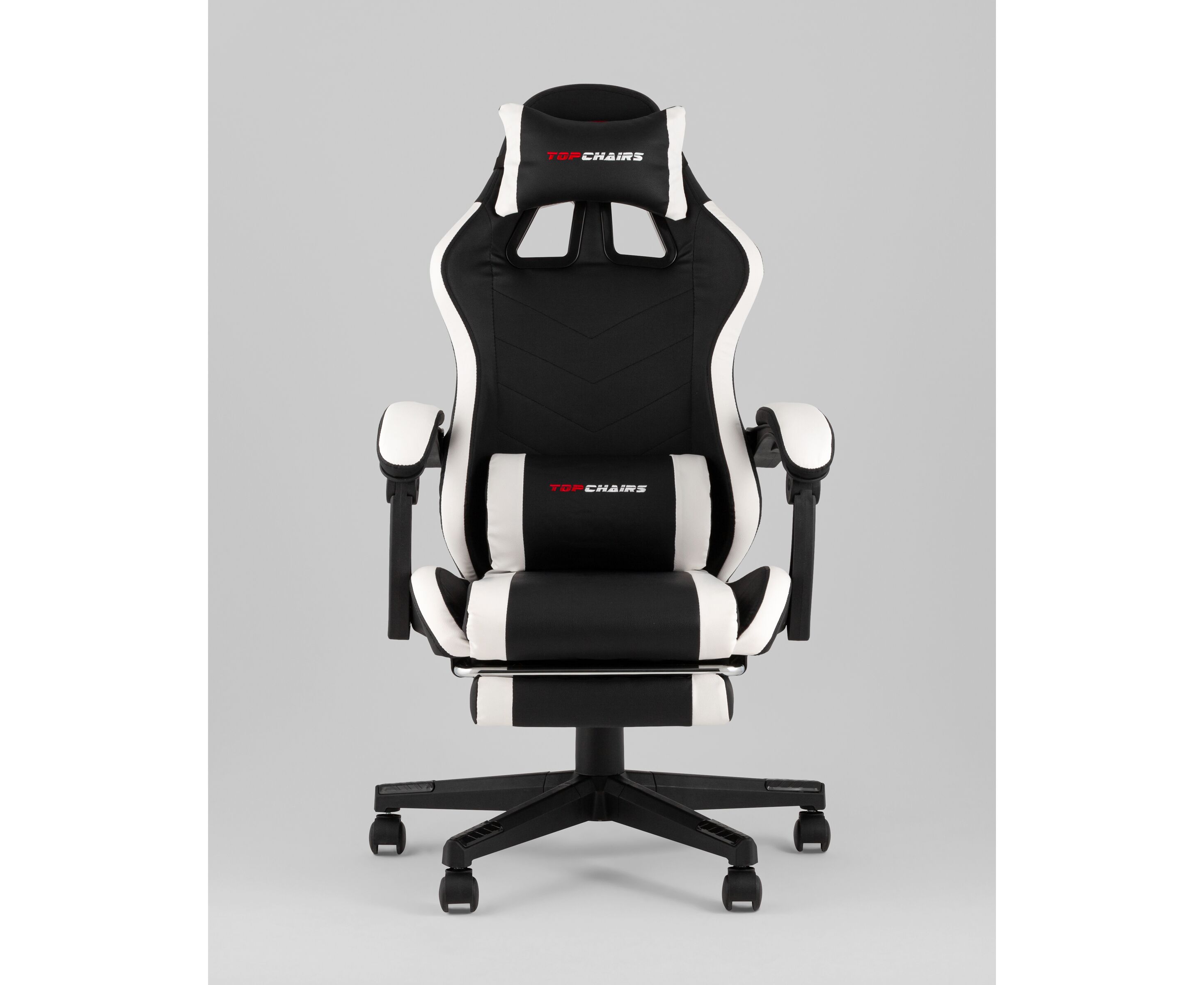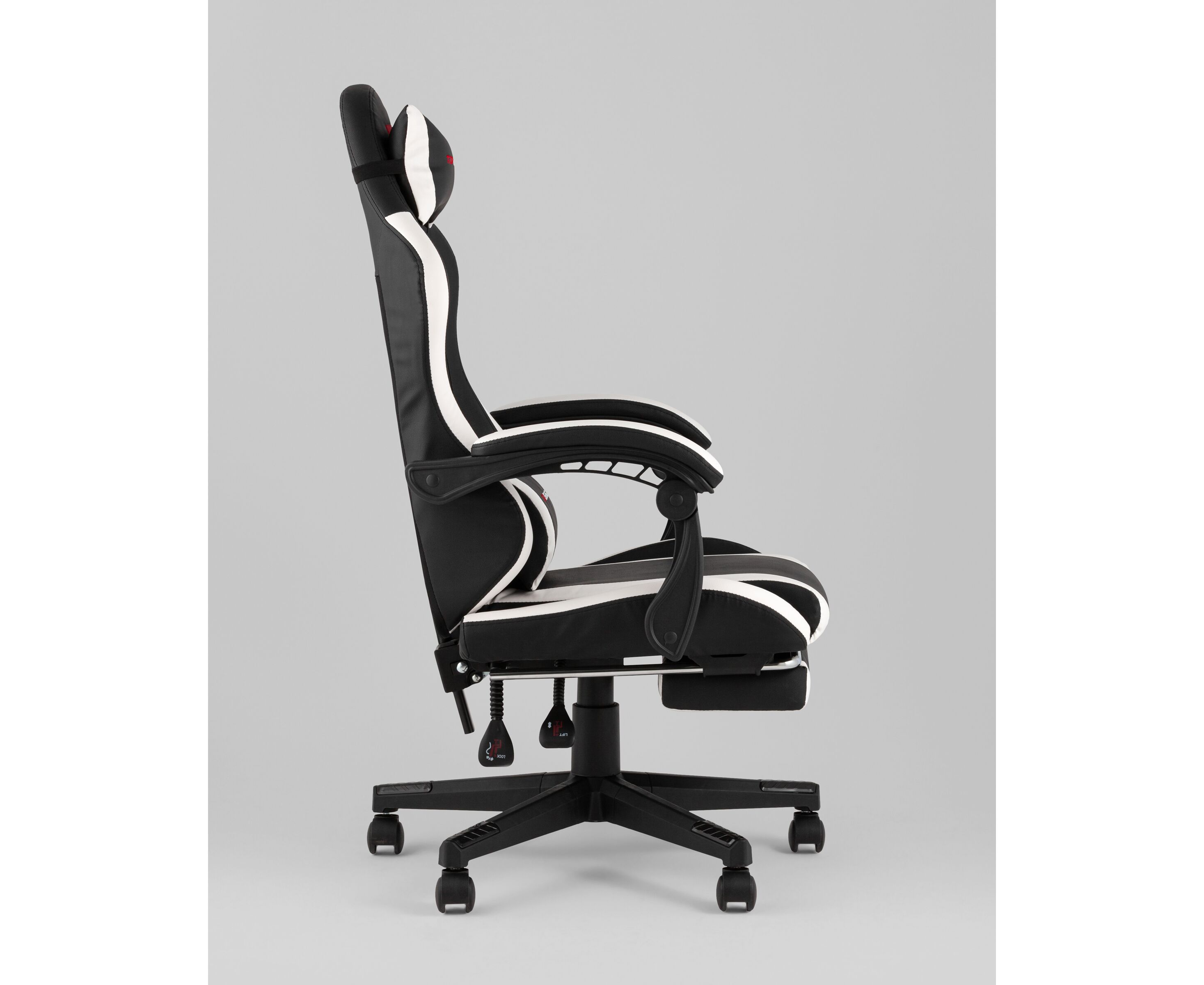 Кресло спортивное TopChairs Prophet с оттоманкой черно-белый