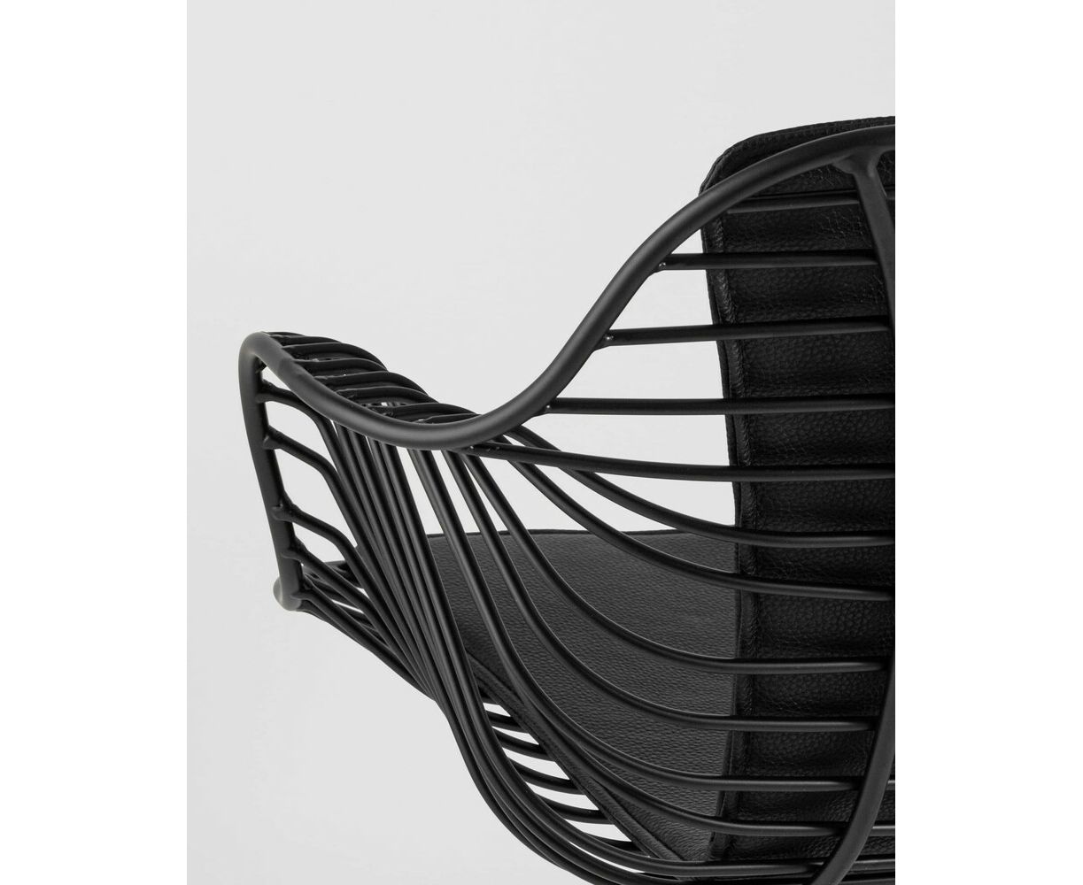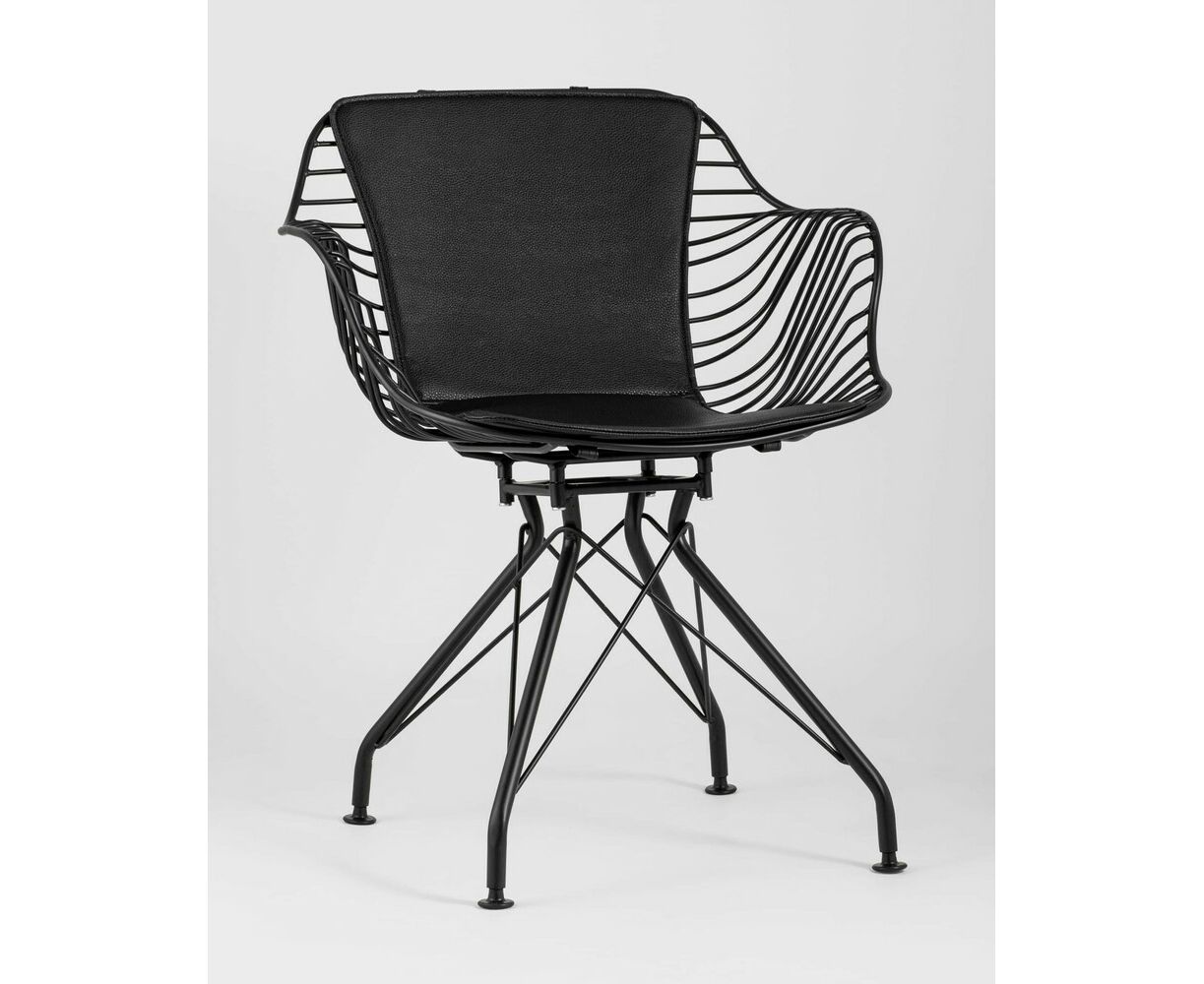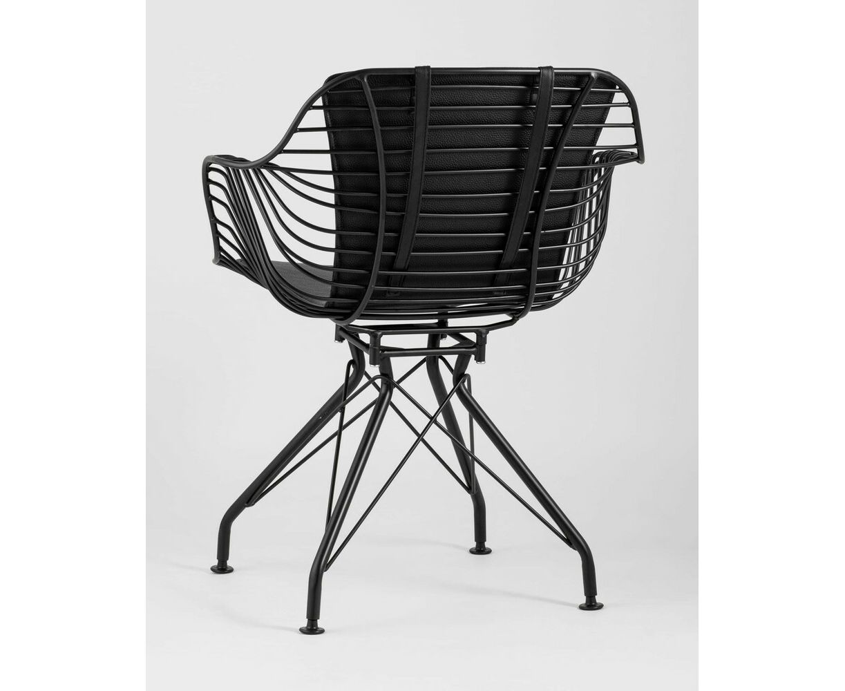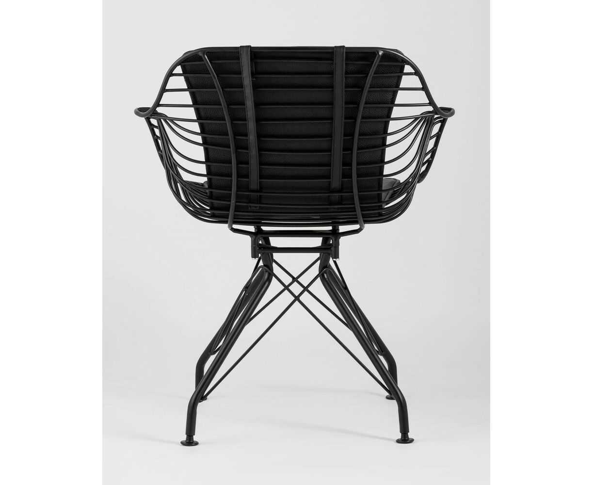 Современное кресло Thomas станет акцентом в интерьере кухни или обеденной зоны. Спинка и сидение выполнены из металлических прутьев черного цвета, из которых по бокам плавно переходят подлокотники. Обивка изготовлена из черной экокожи. Утонченные ножки выполнены из металла в тон сидения.