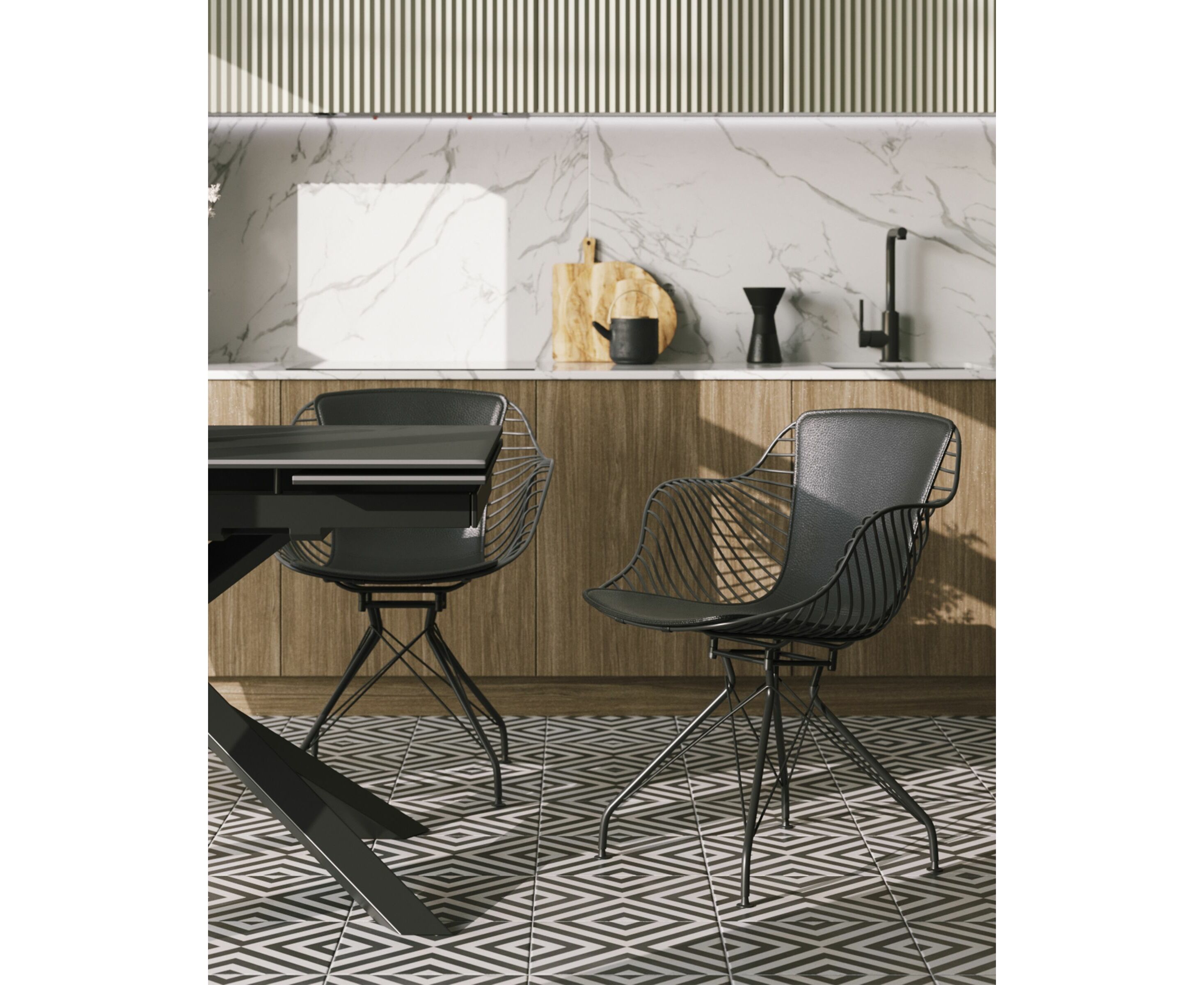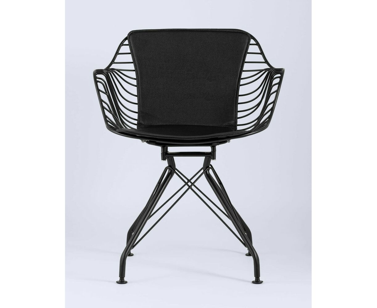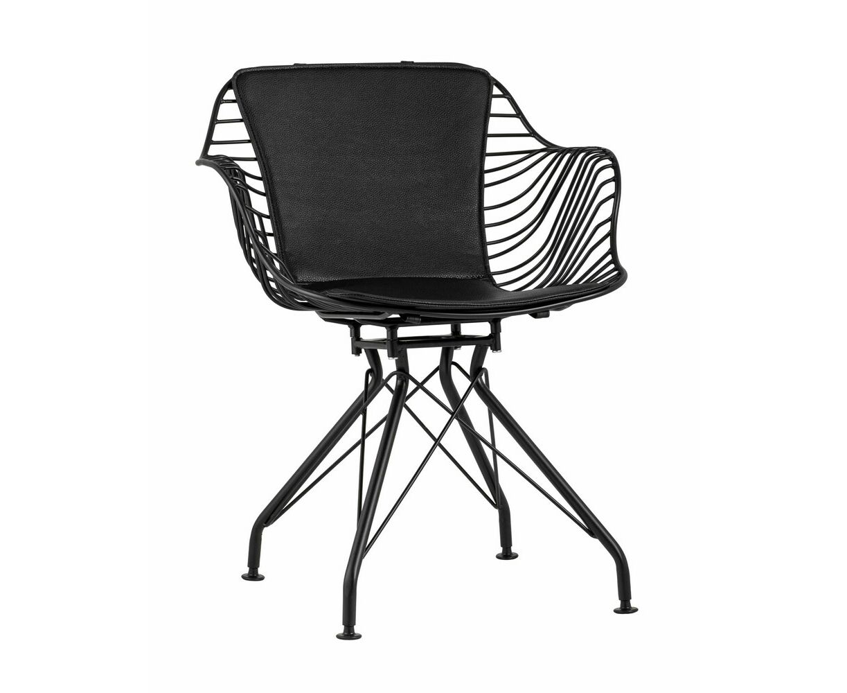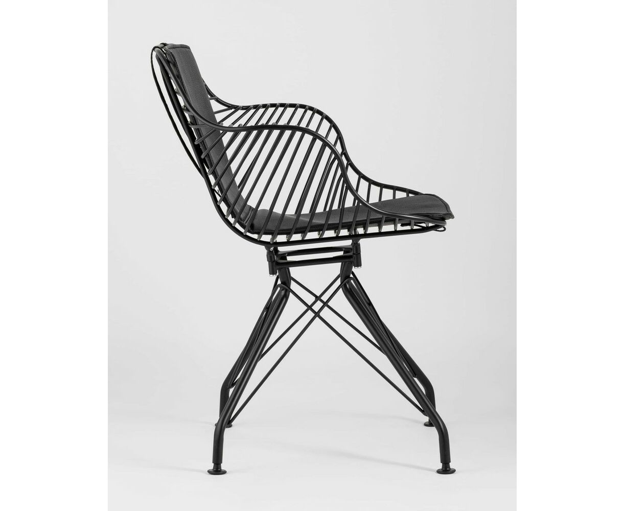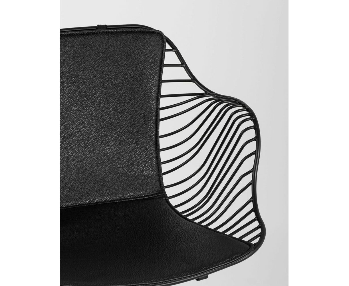Современное кресло Thomas станет акцентом в интерьере кухни или обеденной зоны. Спинка и сидение выполнены из металлических прутьев черного цвета, из которых по бокам плавно переходят подлокотники. Обивка изготовлена из черной экокожи. Утонченные ножки выполнены из металла в тон сидения.