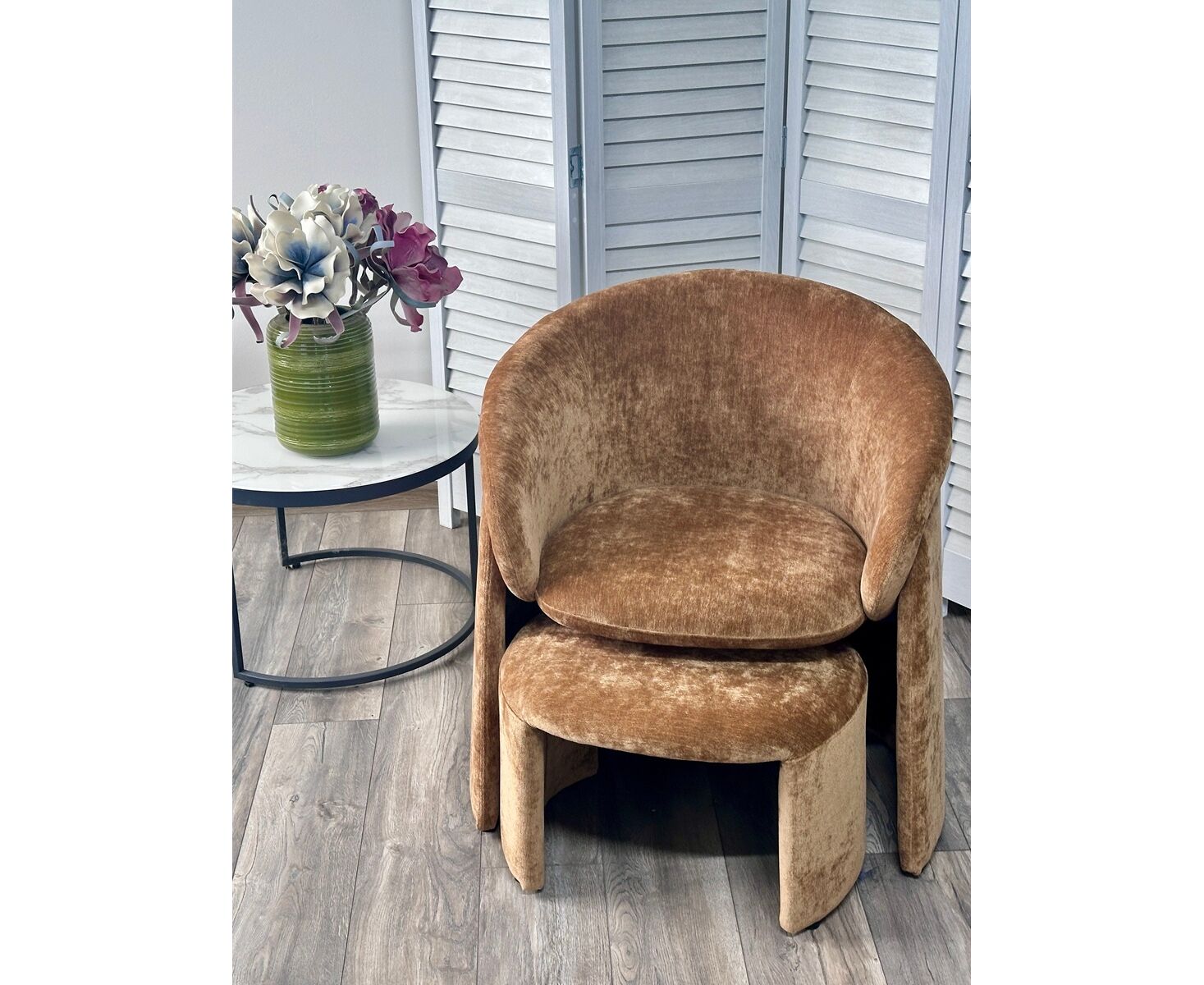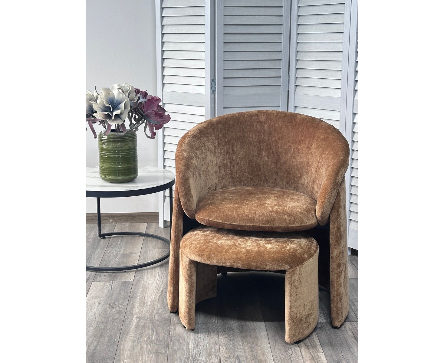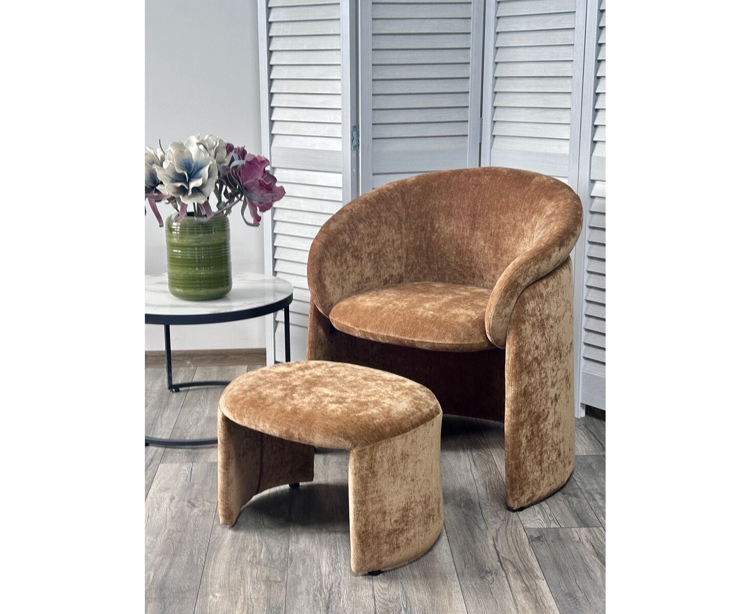 Кресло+оттоманка HUG AT5139-13 Коричневый, ткань/каркас металл в обивке AT5139-13 ®DISAUR