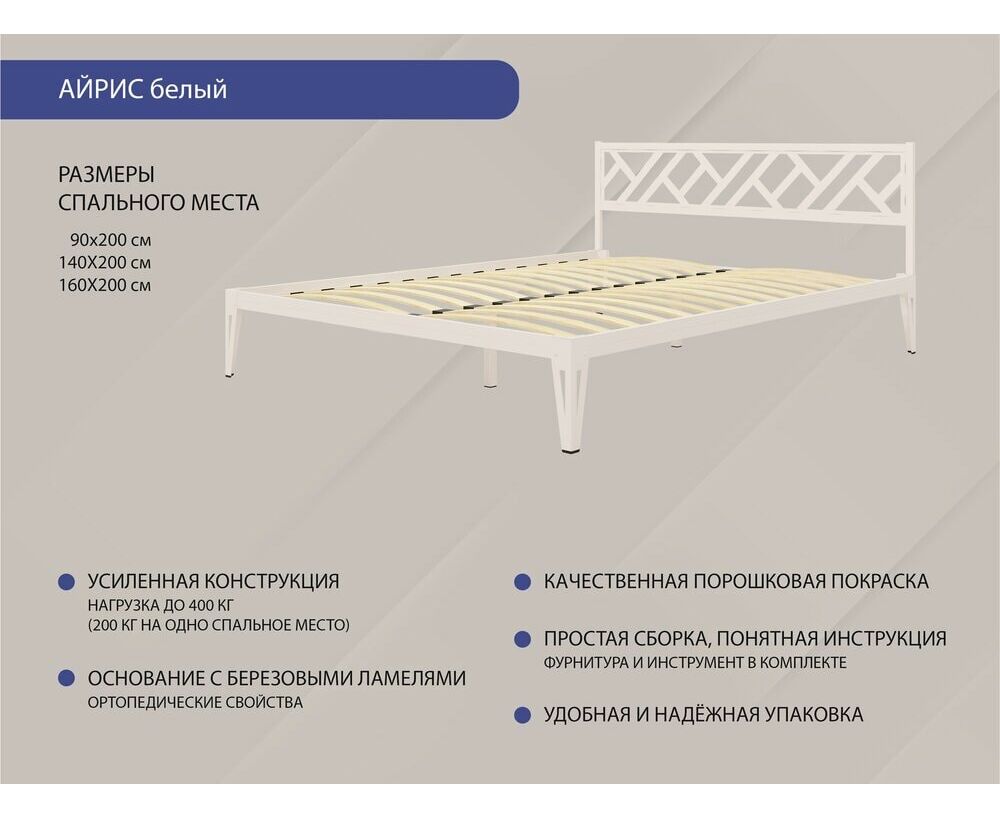 Металлическая кровать Айрис. Добавляет в интерьер легкости.