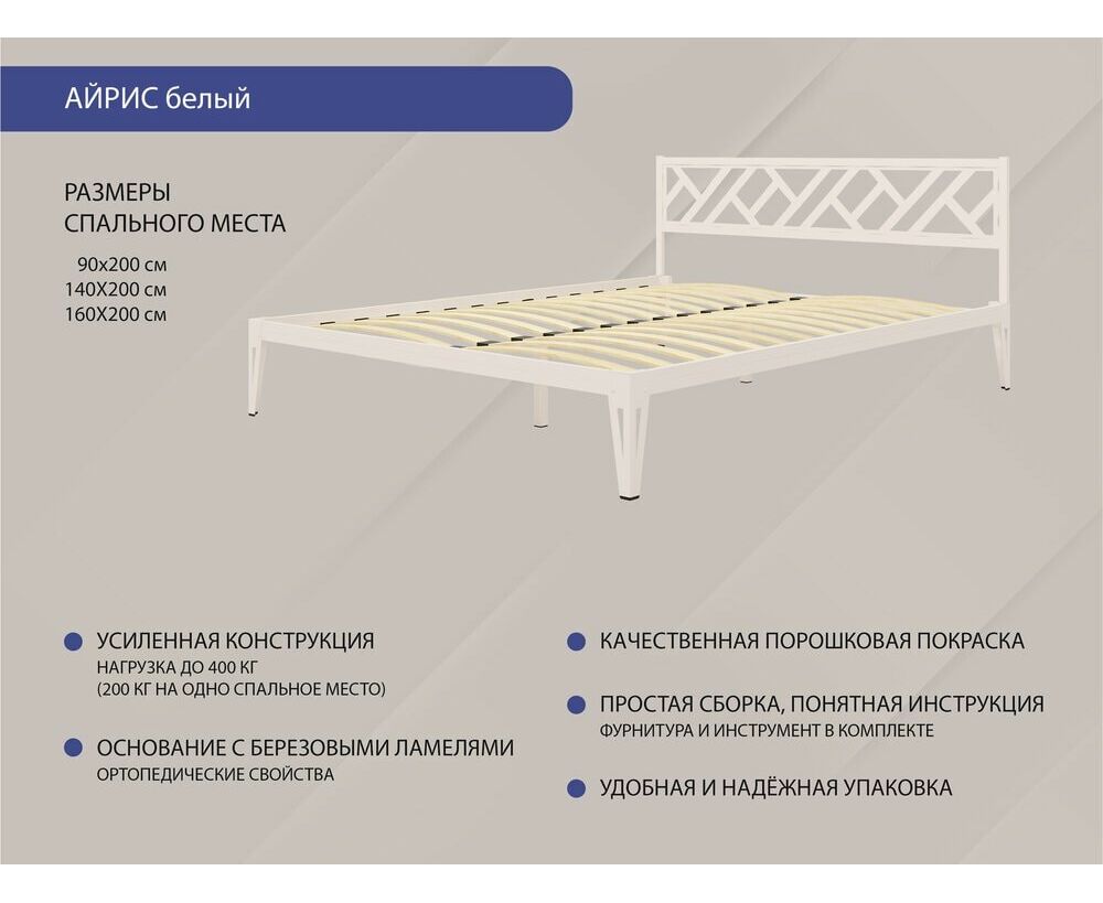Максимальная равномернораспределенная нагрузка на кровать не более 400 кг.