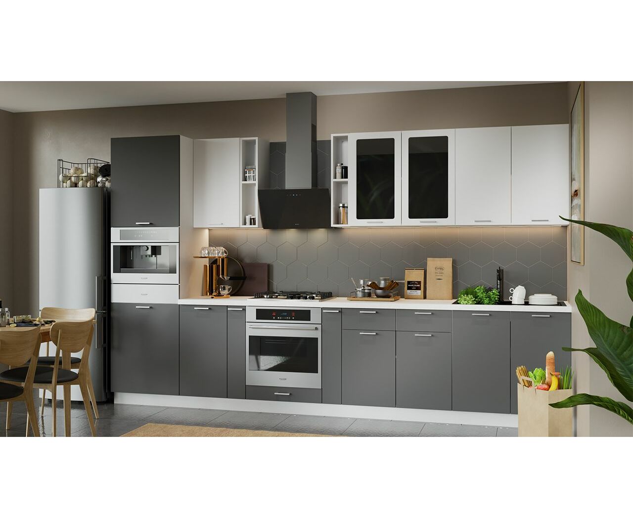 Габаритный размер готового набора модулей с учетом газовой плиты на 60 см: