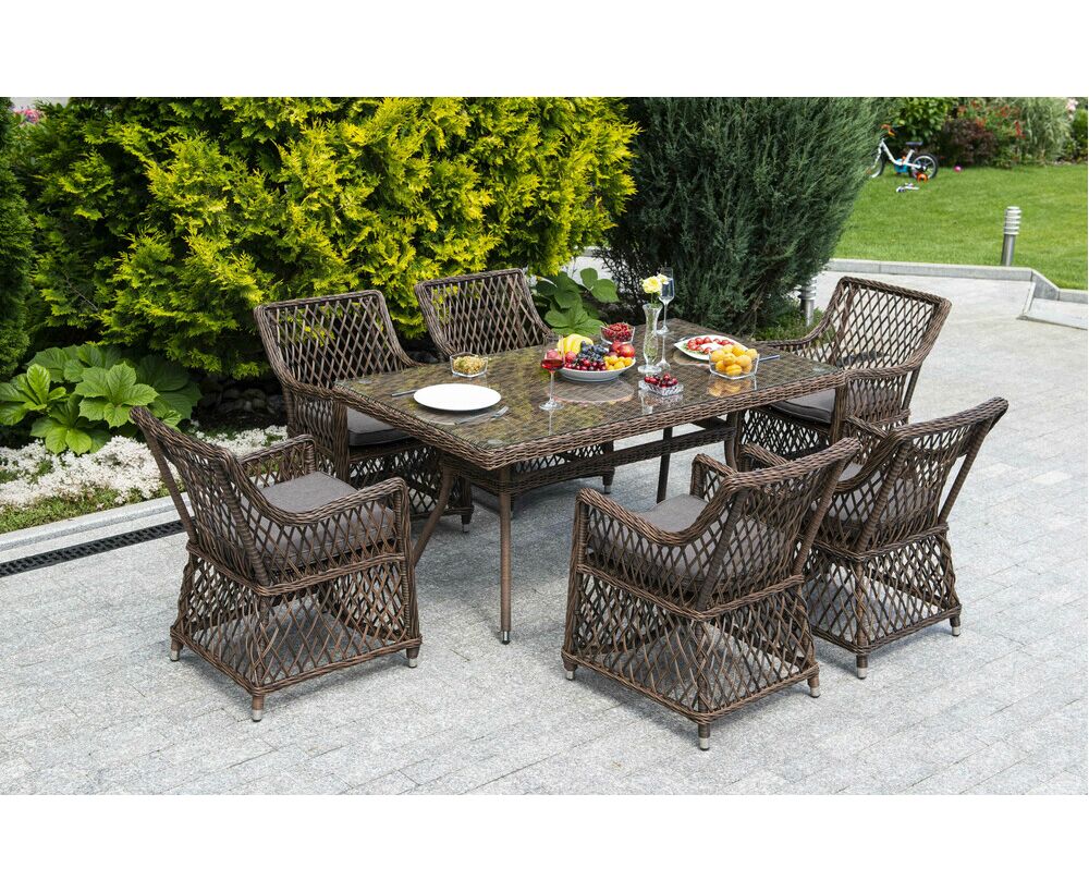 "Латте" плетеный стол из искусственного ротанга 160х90см, цвет коричневый 1шт. 1 600Х900Х750, "Латте" плетеное кресло из искусственного ротанга, цвет коричневый 6шт. 550Х660Х850,