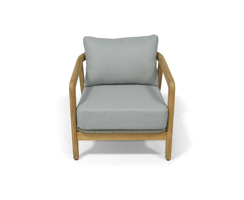 Каркас выполнен из тика — благородной древесины, известной своей прочностью, устойчивостью к внешним воздействиям и изысканной текстурой. Тёплый древесный оттенок подчёркивает природную эстетику мебели.
