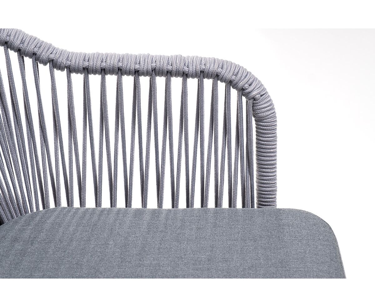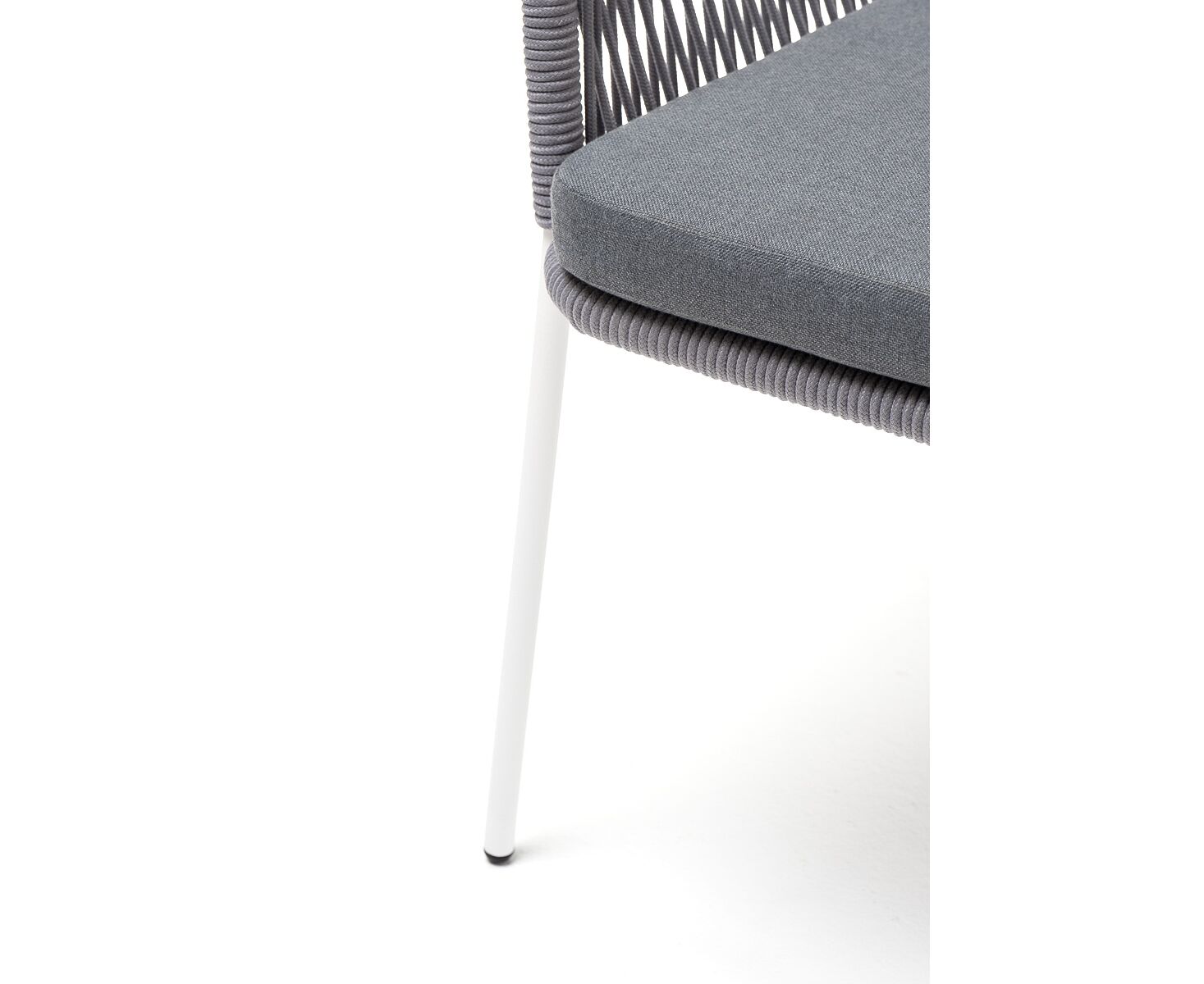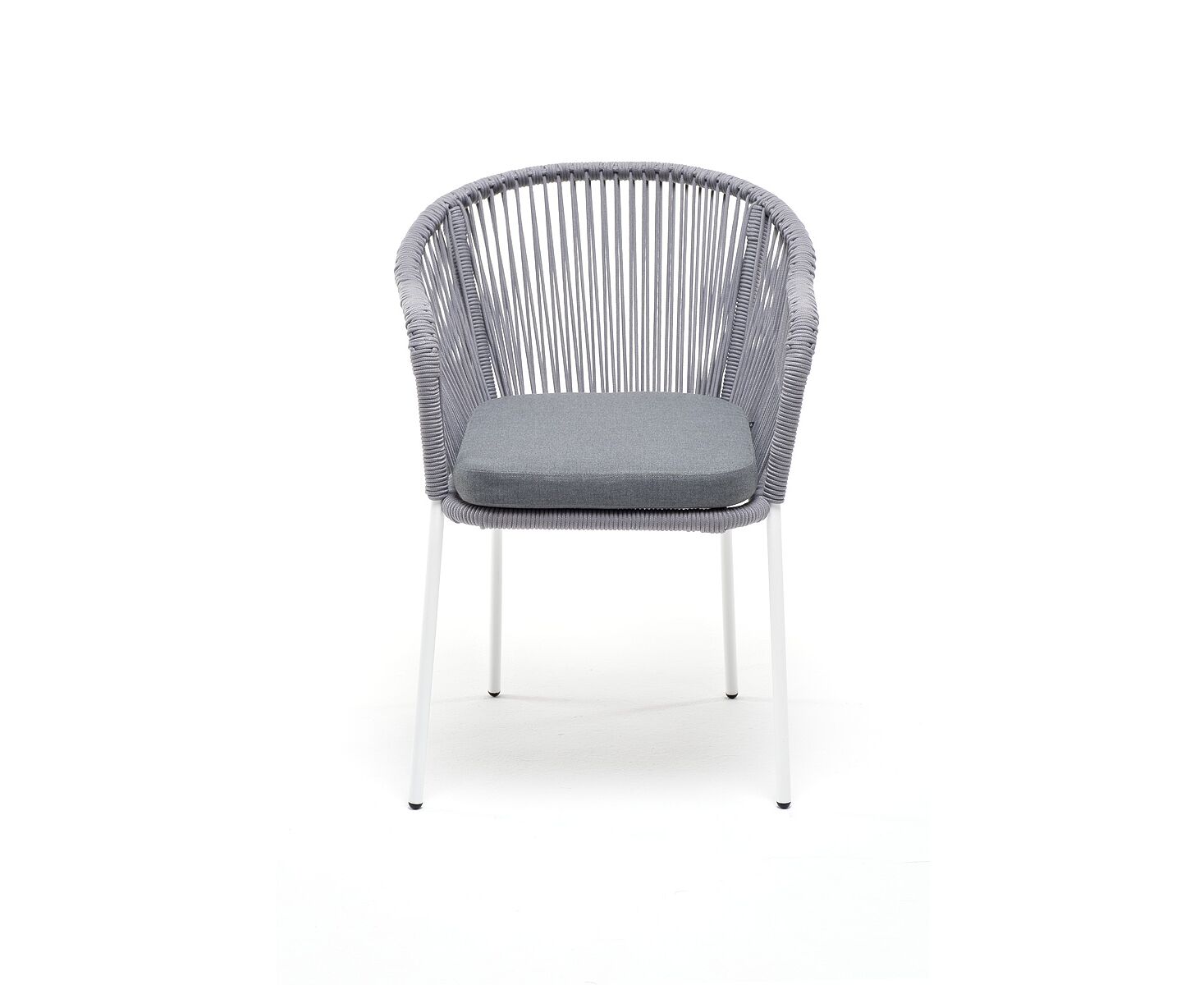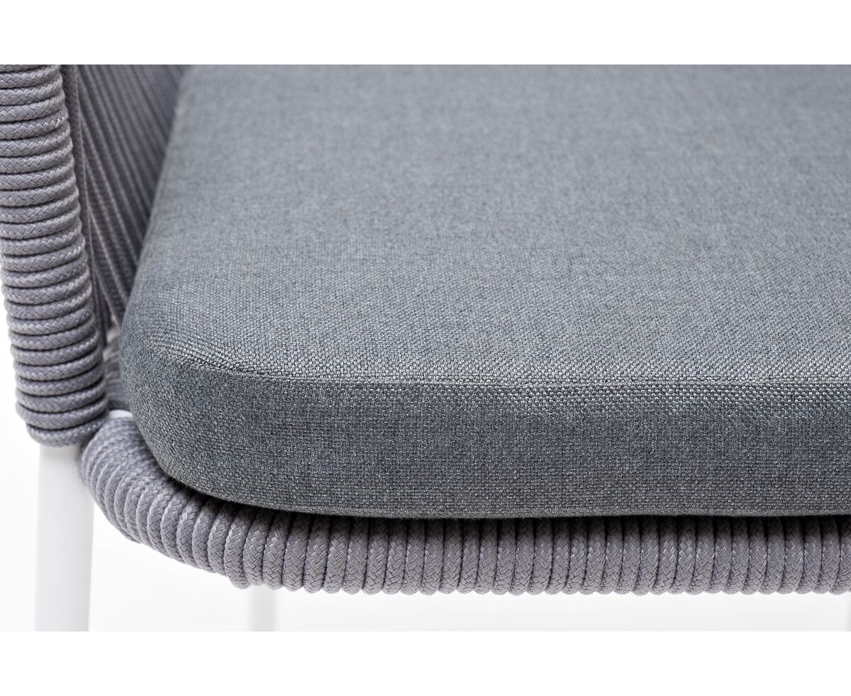 "Лион" стул плетеный из роупа, каркас из стали белый муар, роуп светло-серый круглый, ткань светло-серая