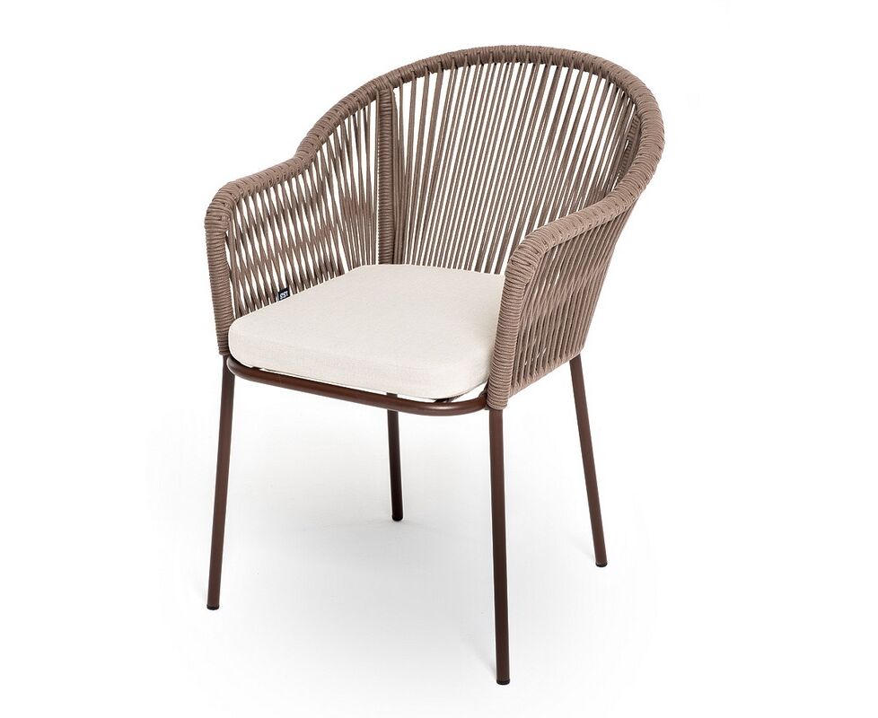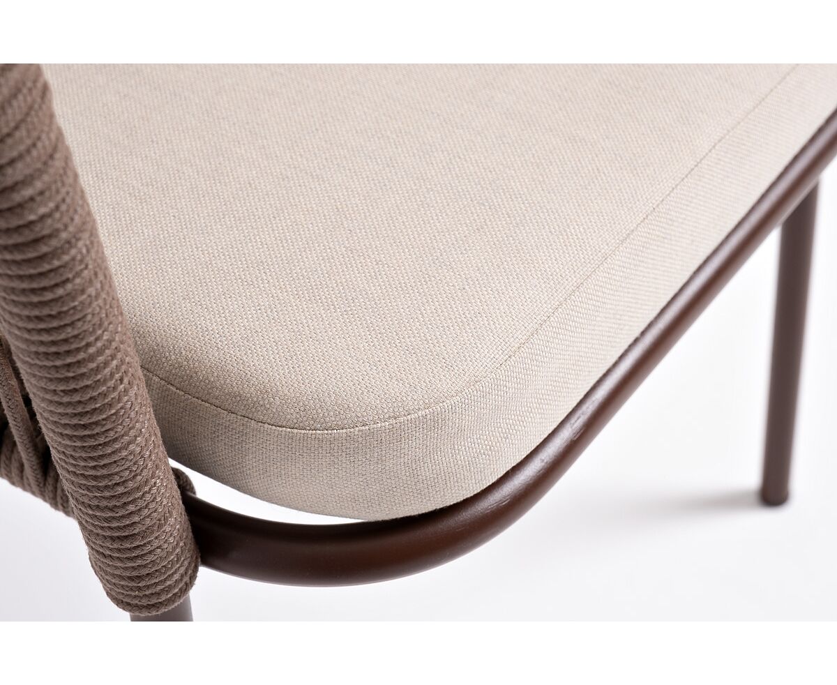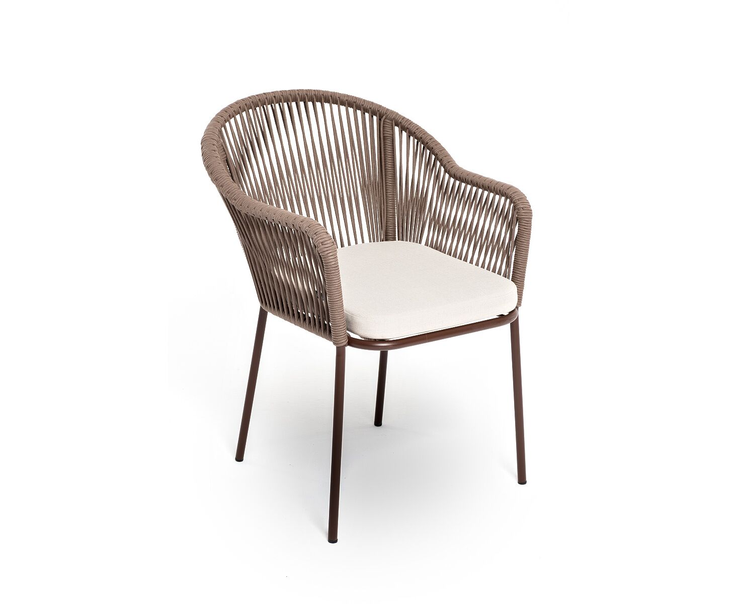 "Лион" стул плетеный из роупа, каркас из стали коричневый (RAL8016) муар, роуп коричневый круглый, ткань бежевая 15052