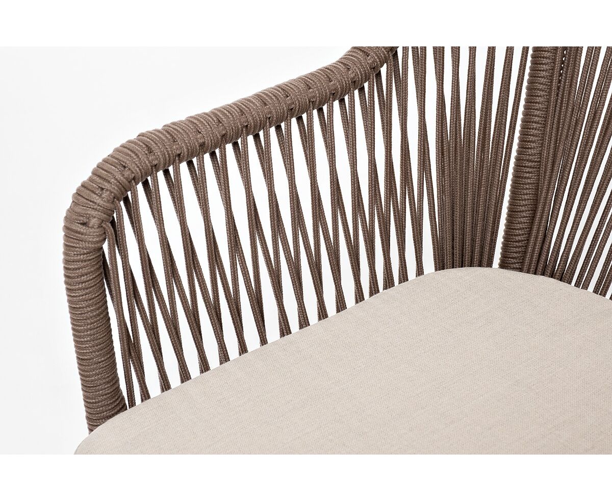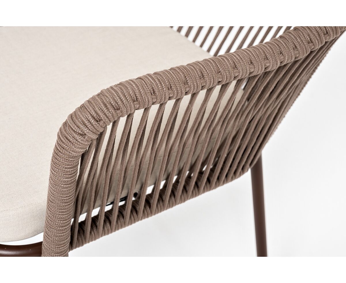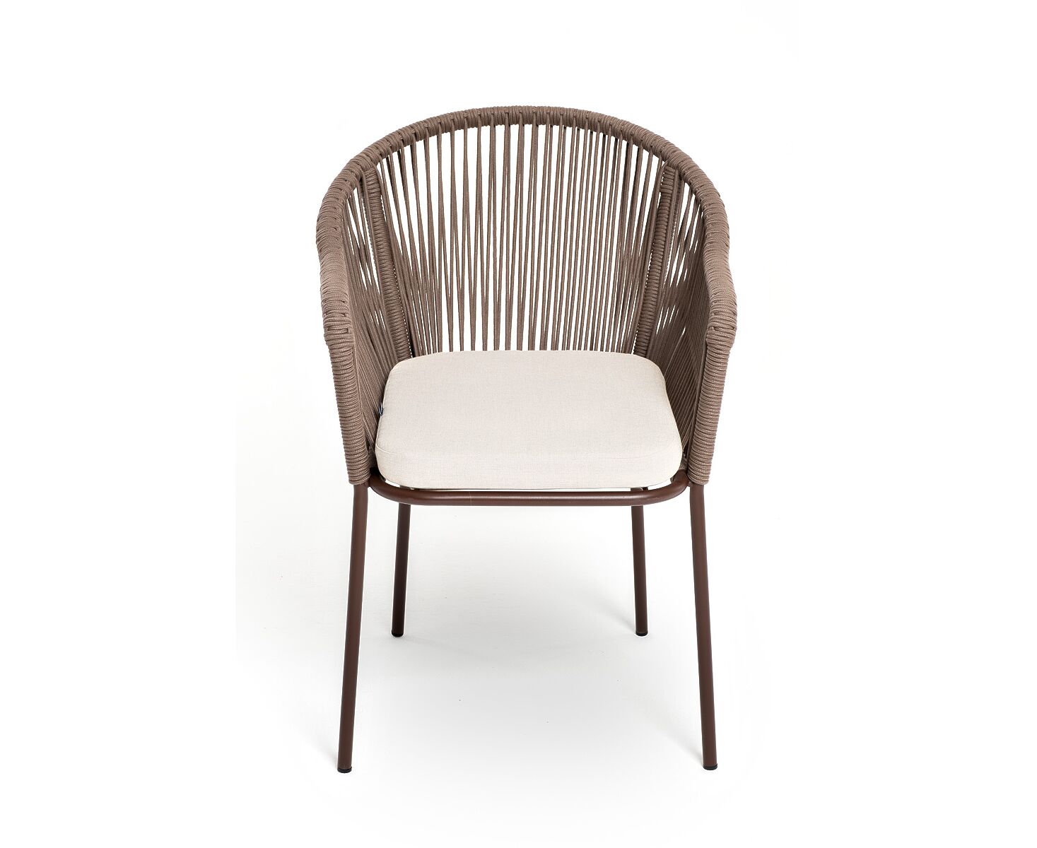 "Лион" стул плетеный из роупа, каркас из стали коричневый (RAL8016) муар, роуп коричневый круглый, ткань бежевая 15052
