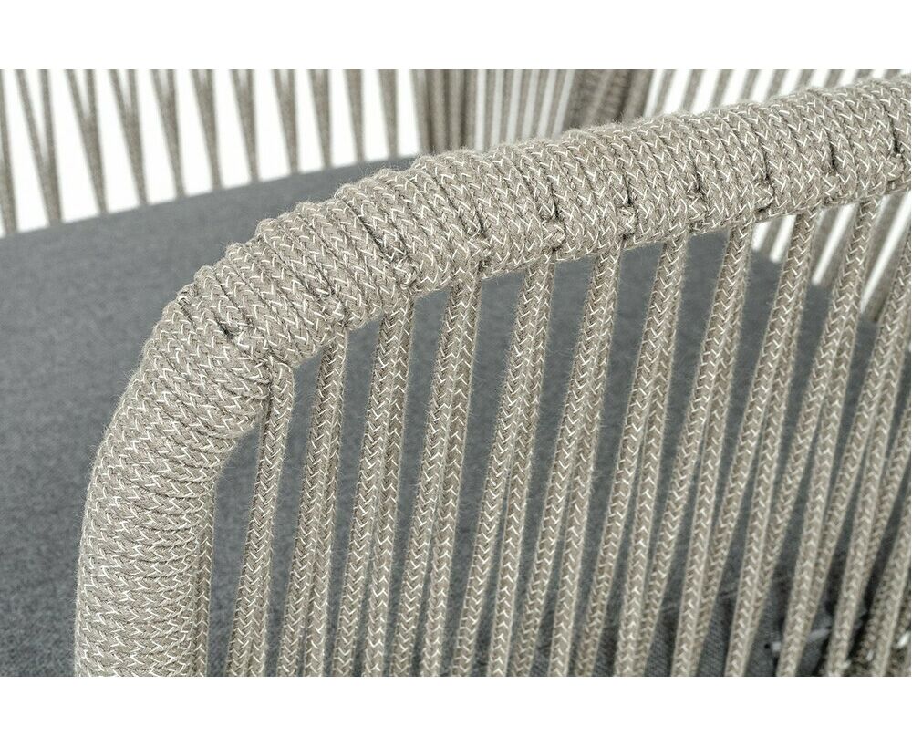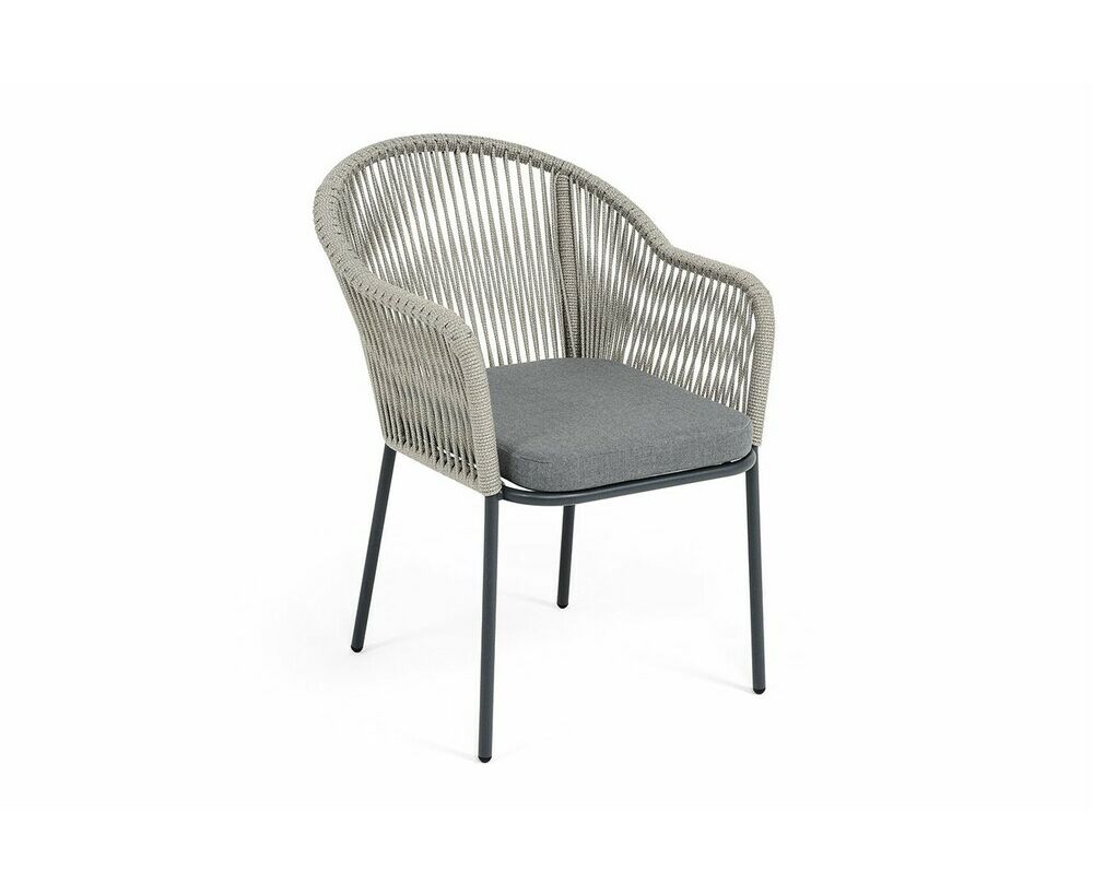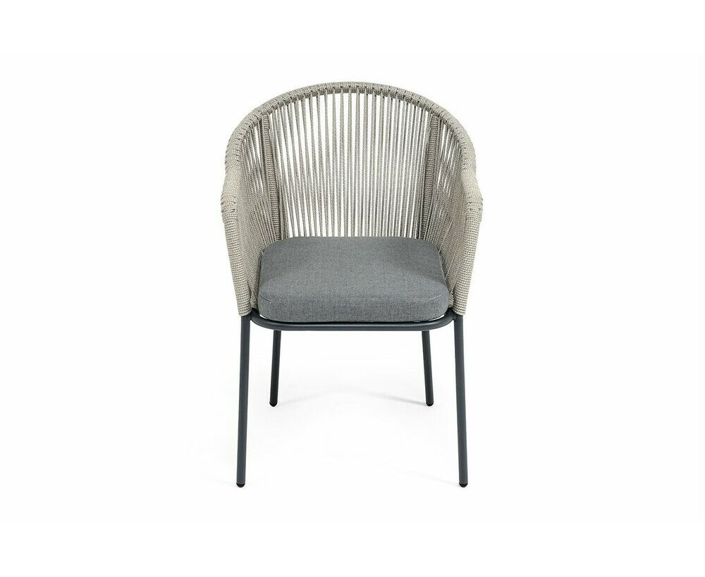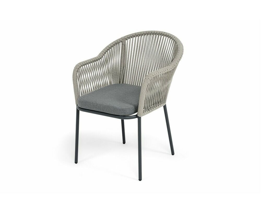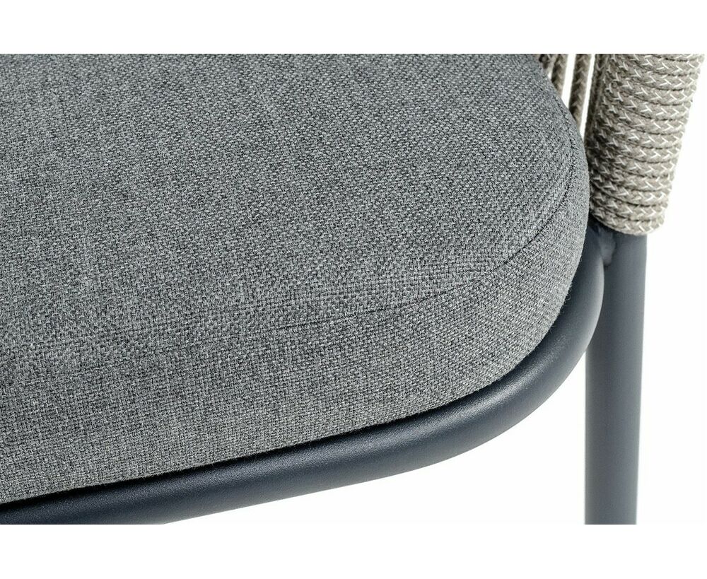 "Лион" стул плетеный из роупа, каркас из стали темно-серый (RAL7024) муар, роуп серый меланж круглый, ткань серая 017