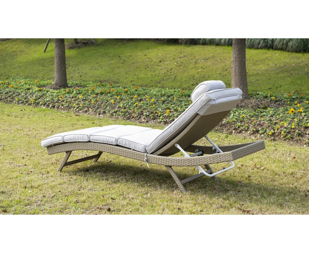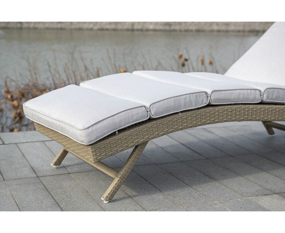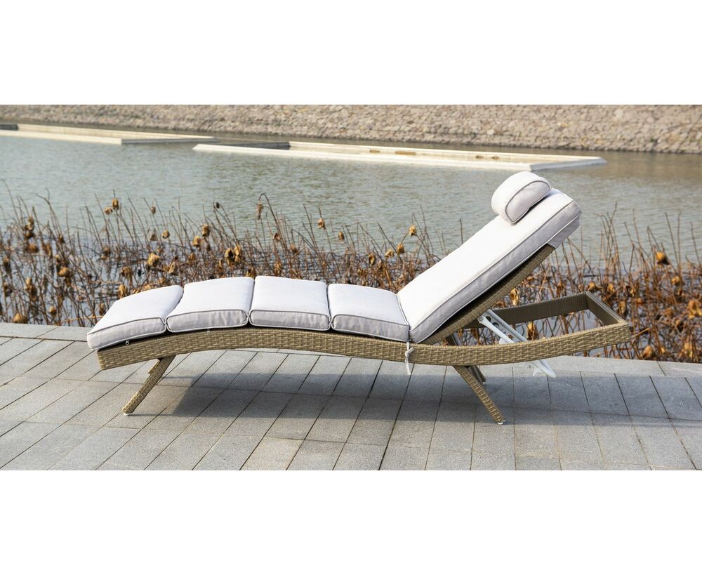 В комплекте прилагается матрас светло-серого цвета из водостойкой ткани.Мебель натуральных расцветок гармонично вписывается на пляже, в саду, на террасе.