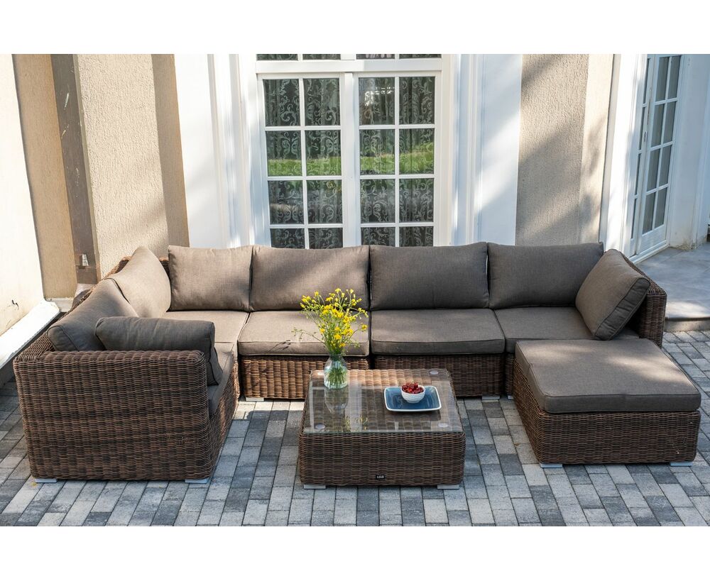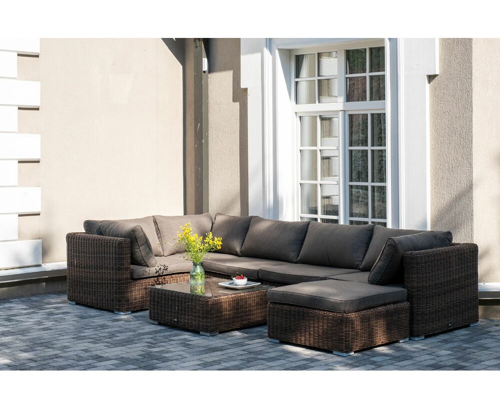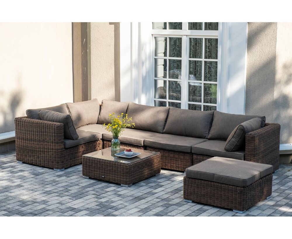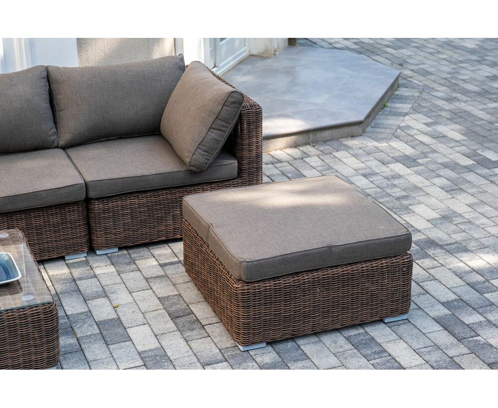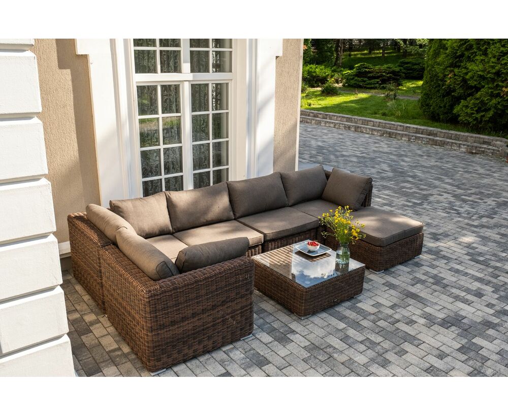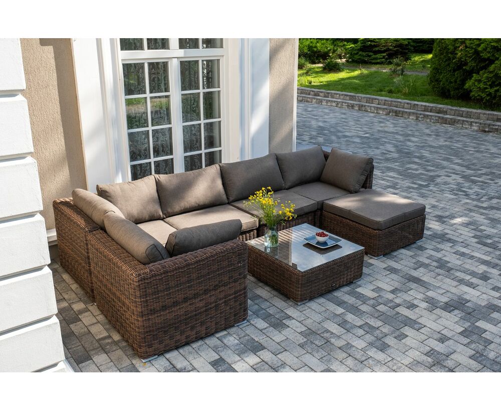 "Лунго" модуль диванный прямой с подушками, цвет коричневый 2шт. 740Х860Х650, "Лунго" модуль диванный угловой с подушками, цвет коричневый 3шт. 860Х860Х650, "Лунго" плетеная оттоманка с подушкой, цвет коричневый 1шт. 740Х740Х380, "Лунго" журнальный столик плетеный, цвет коричневый 1шт. 740Х740Х300,