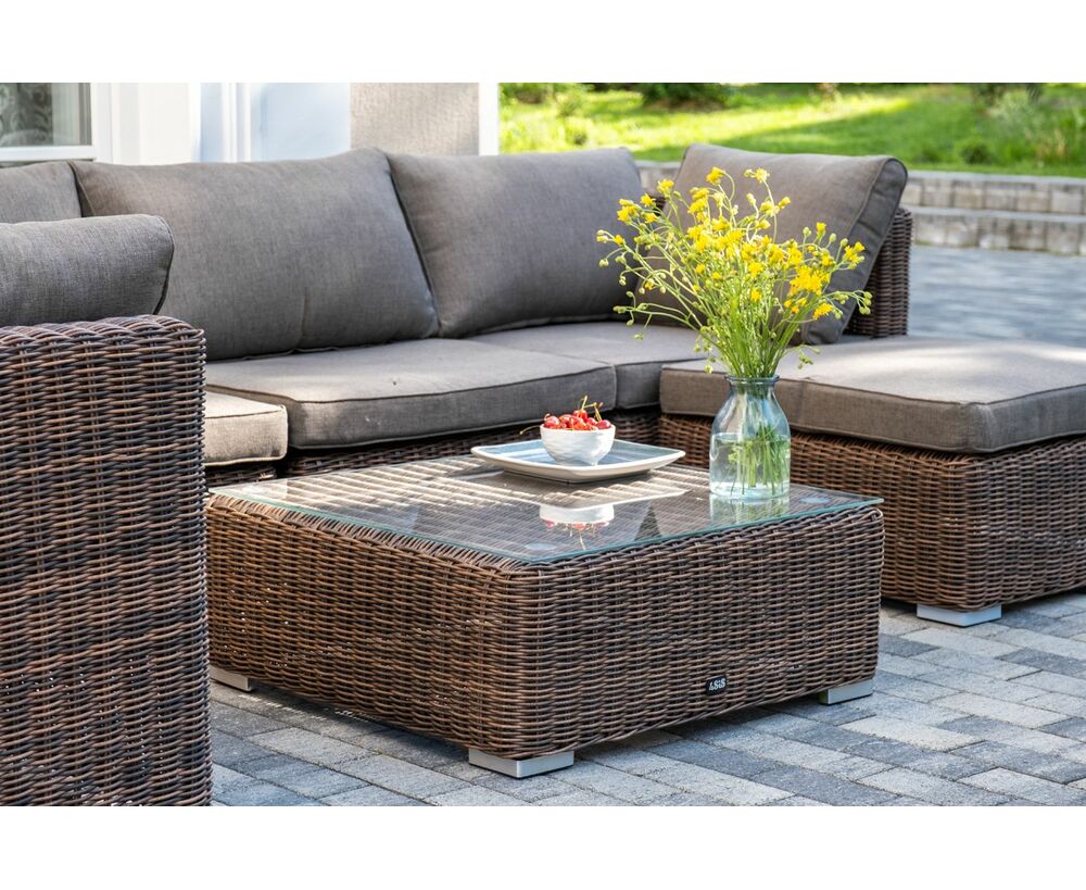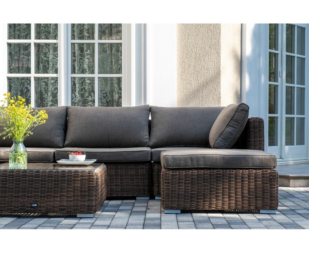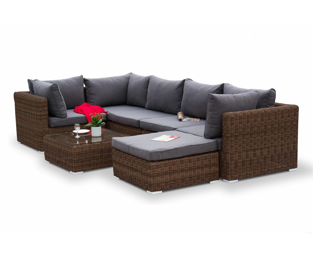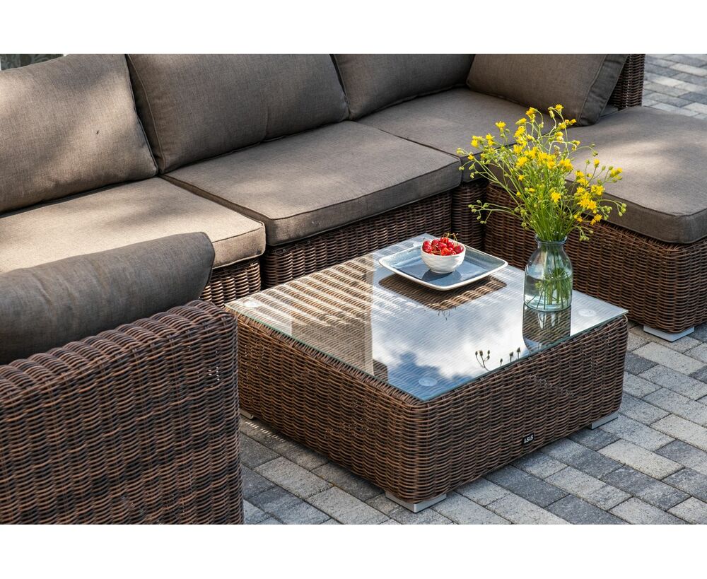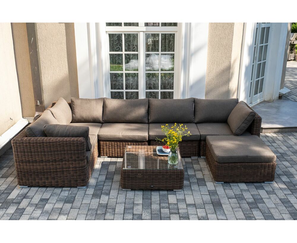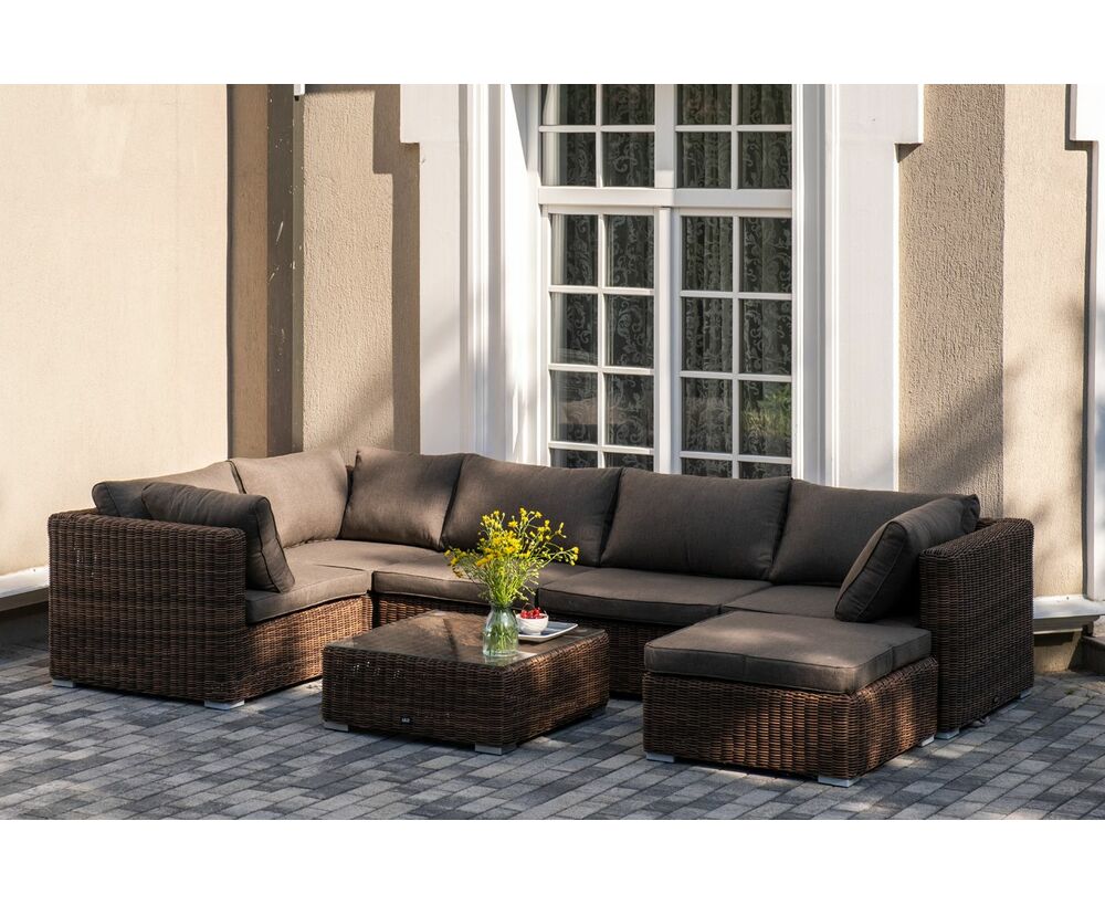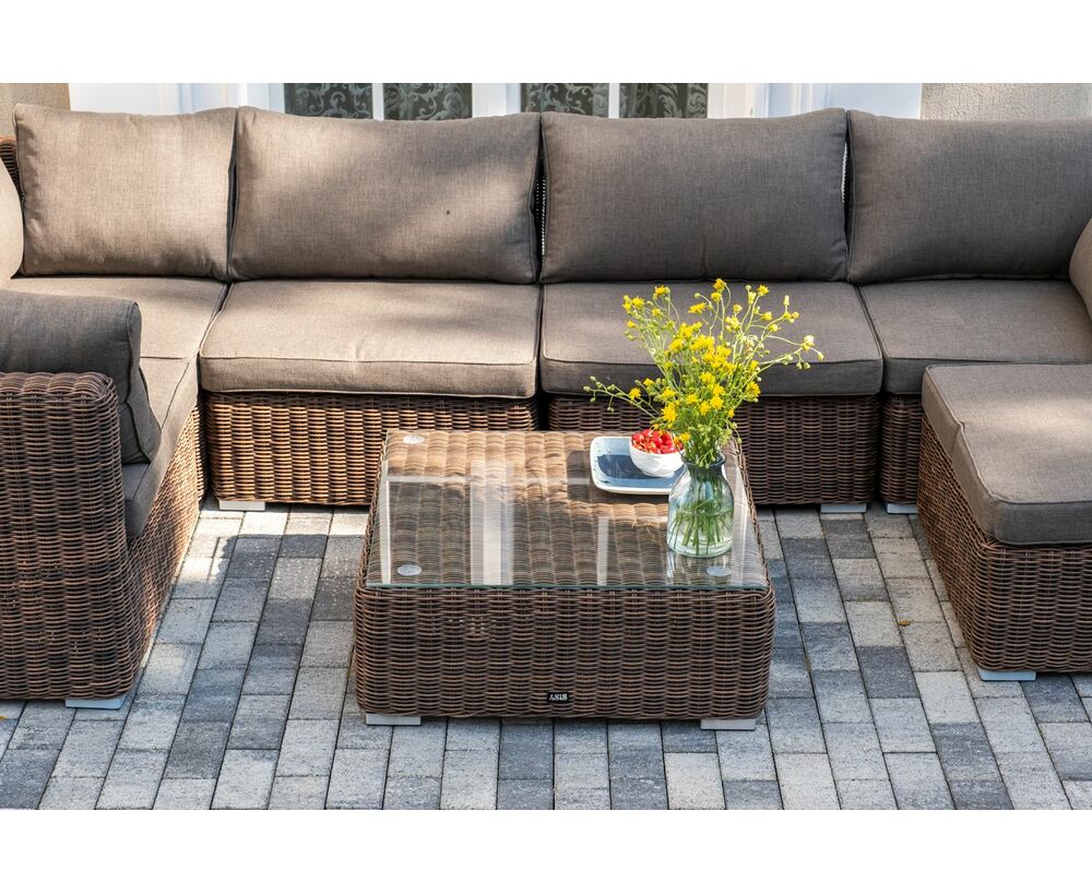 "Лунго" модуль диванный прямой с подушками, цвет коричневый 2шт. 740Х860Х650, "Лунго" модуль диванный угловой с подушками, цвет коричневый 3шт. 860Х860Х650, "Лунго" плетеная оттоманка с подушкой, цвет коричневый 1шт. 740Х740Х380, "Лунго" журнальный столик плетеный, цвет коричневый 1шт. 740Х740Х300,