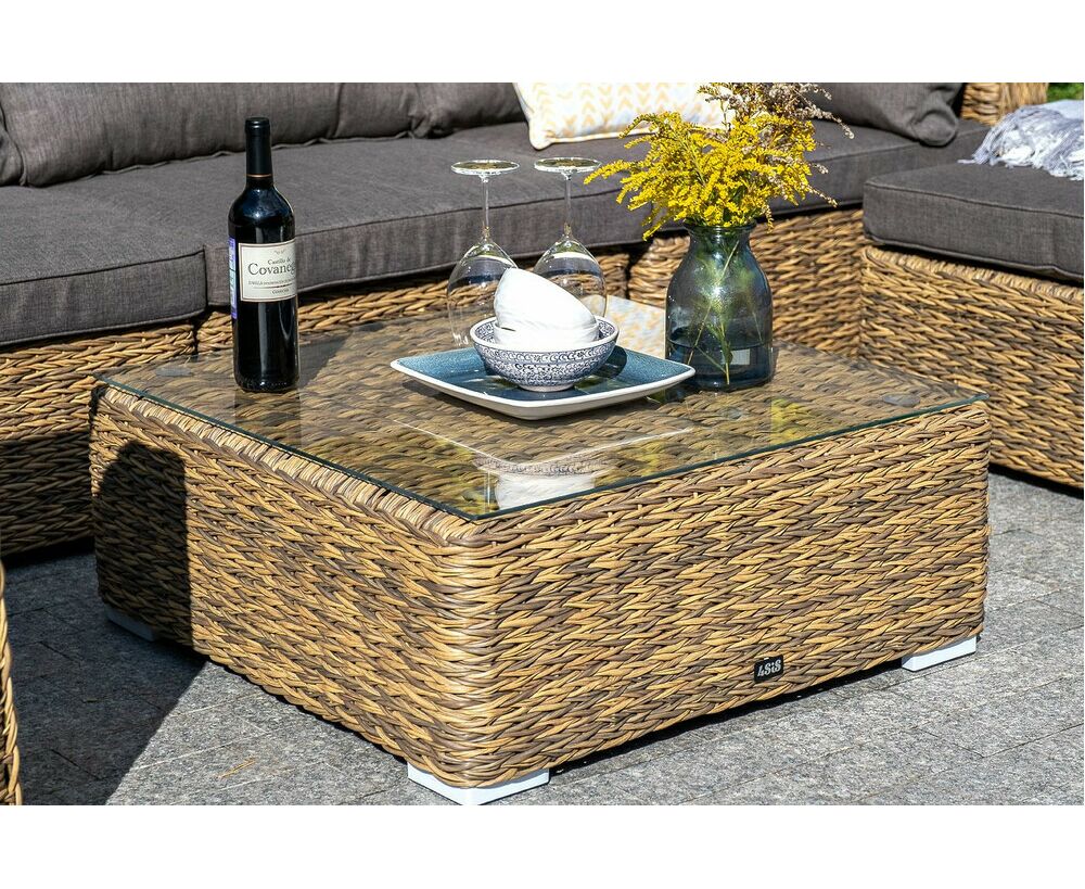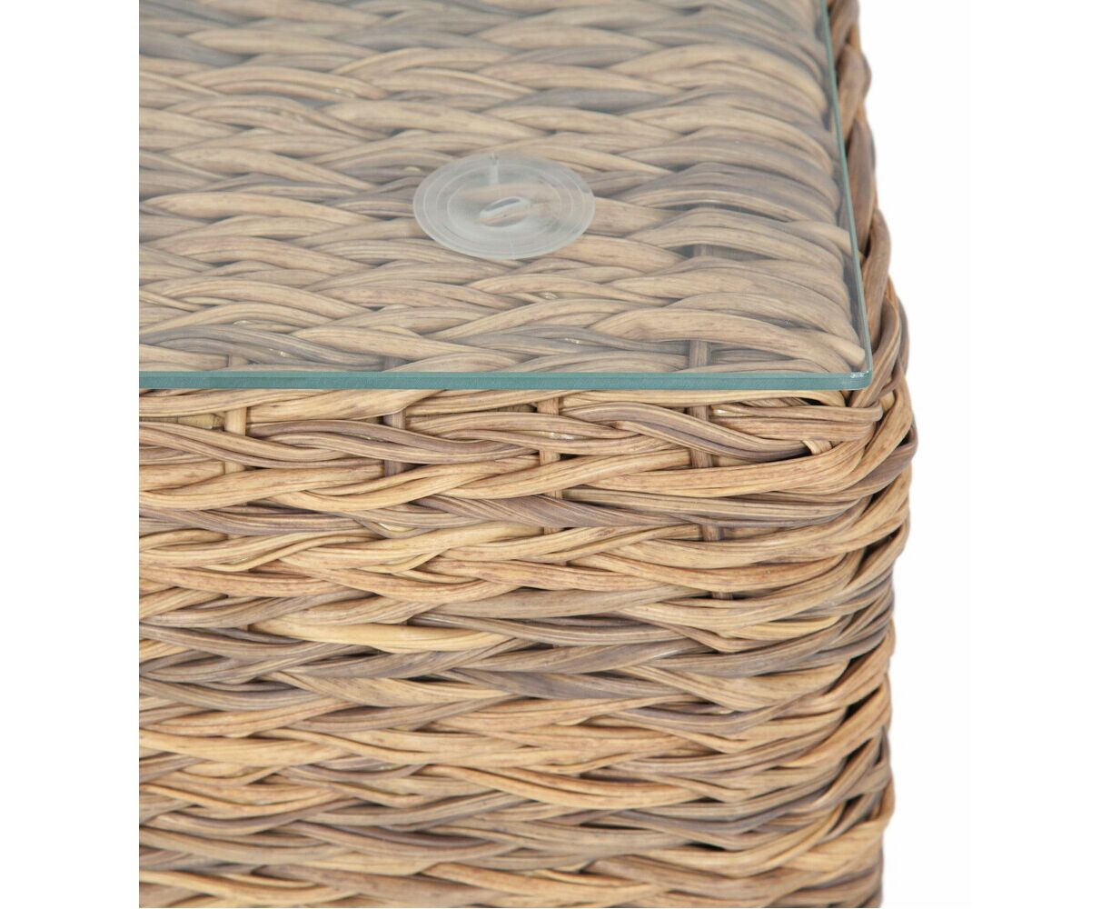 Размер модели – 740×740×300 мм. Компактные габариты позволяют удобно разместить мебельный элемент в месте с ограниченным свободным пространством. Столик имеет прочный алюминиевый каркас. Ручное плетение вида "гиацинт" сделано из искусственного ротанга и представлено в соломенном цвете.