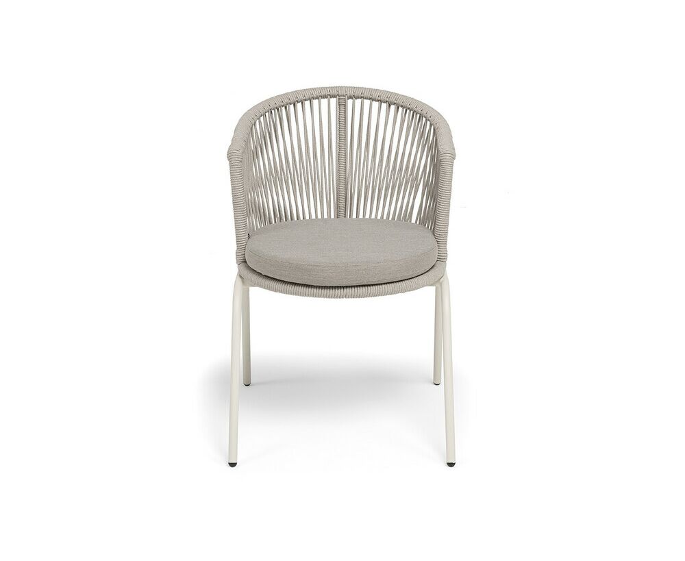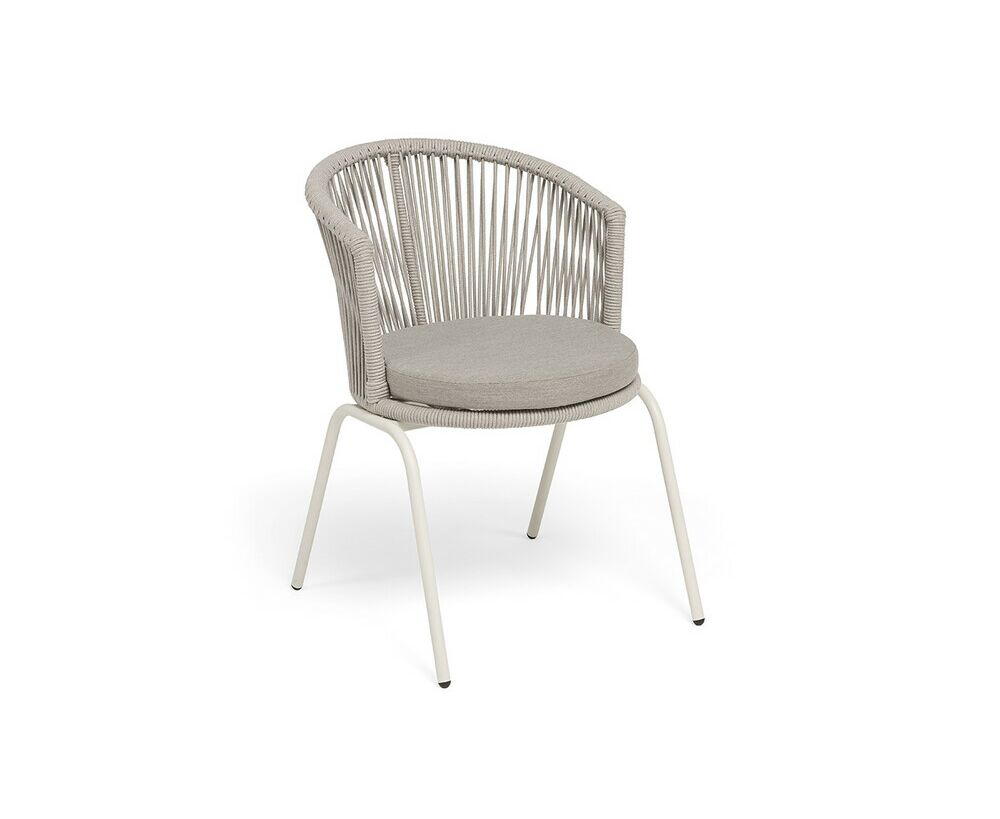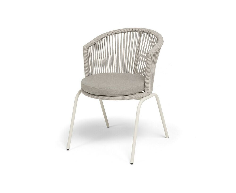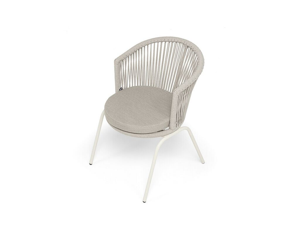 "Люксембург" стул плетеный из роупа, каркас из стали (RAL1013) муар, роуп бежевый круглый, ткань бежевая 15052