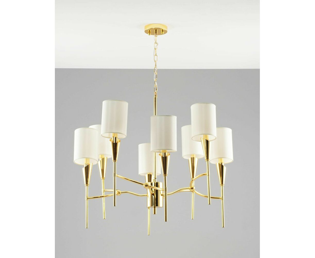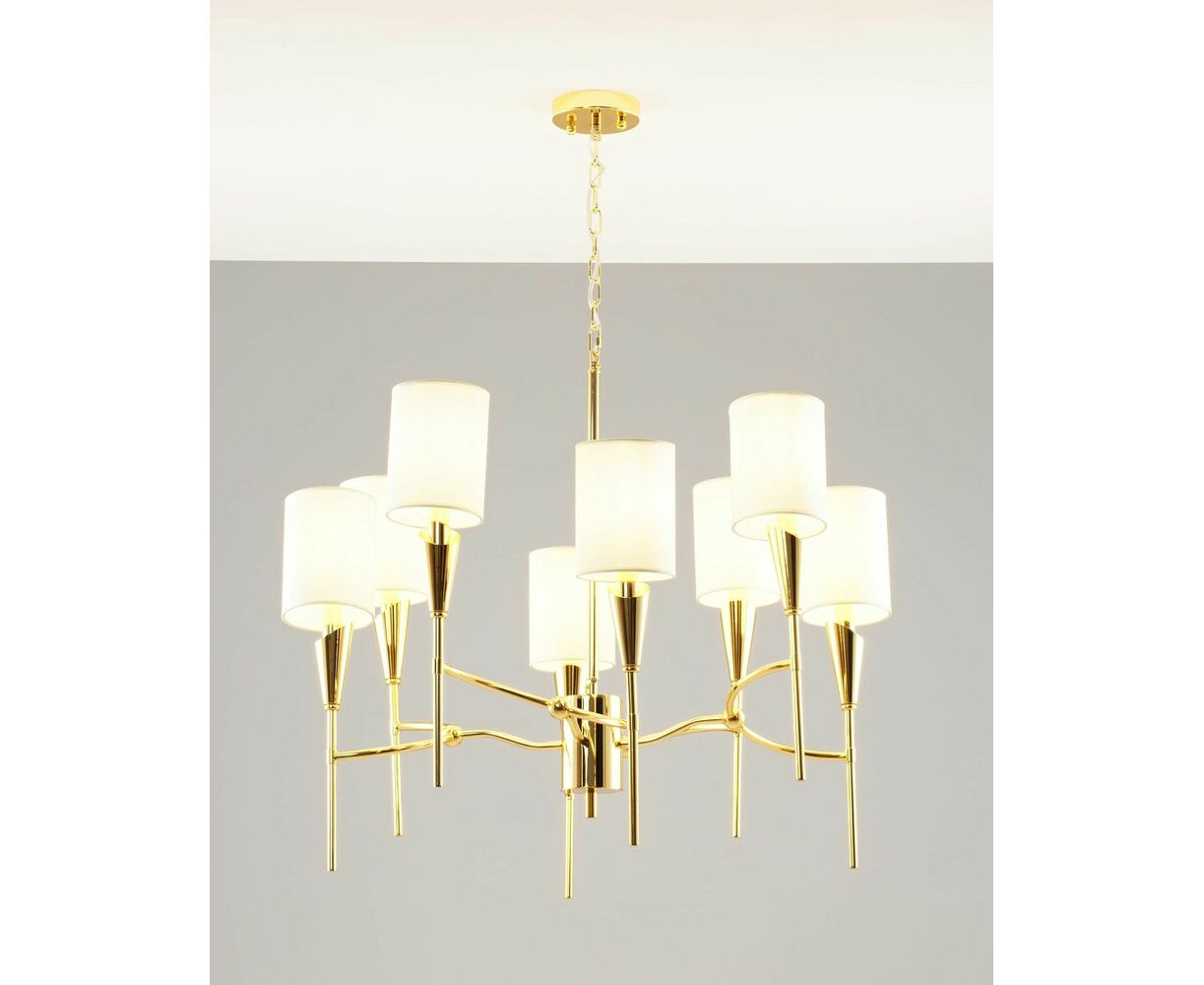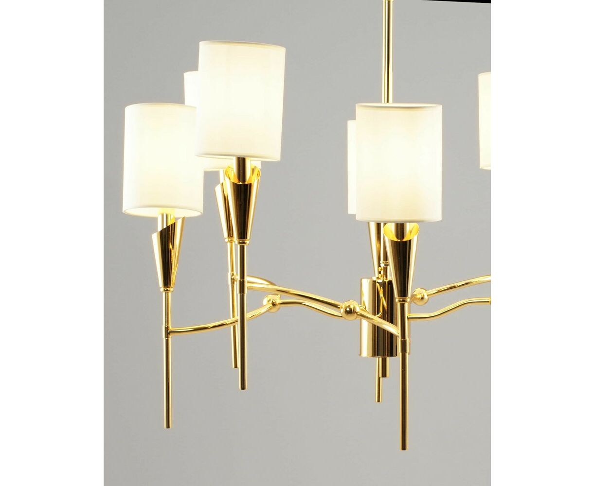 Подвесная люстра Luiza в стиле модерн. Металлический каркас витиеватой формы дополнен плафонами из ткани, которые мягко рассеивают свет и создают атмосферу уюта и комфорта для глаз. В качестве источника света подойдут лампы с цоколем Е14. Оригинальный дизайн люстры дополнит любой интерьер в стиле неоклассика и модерн. Высоту можно отрегулировать с помощью подвесной цепи. Декоративный тканевый кожух съемный.