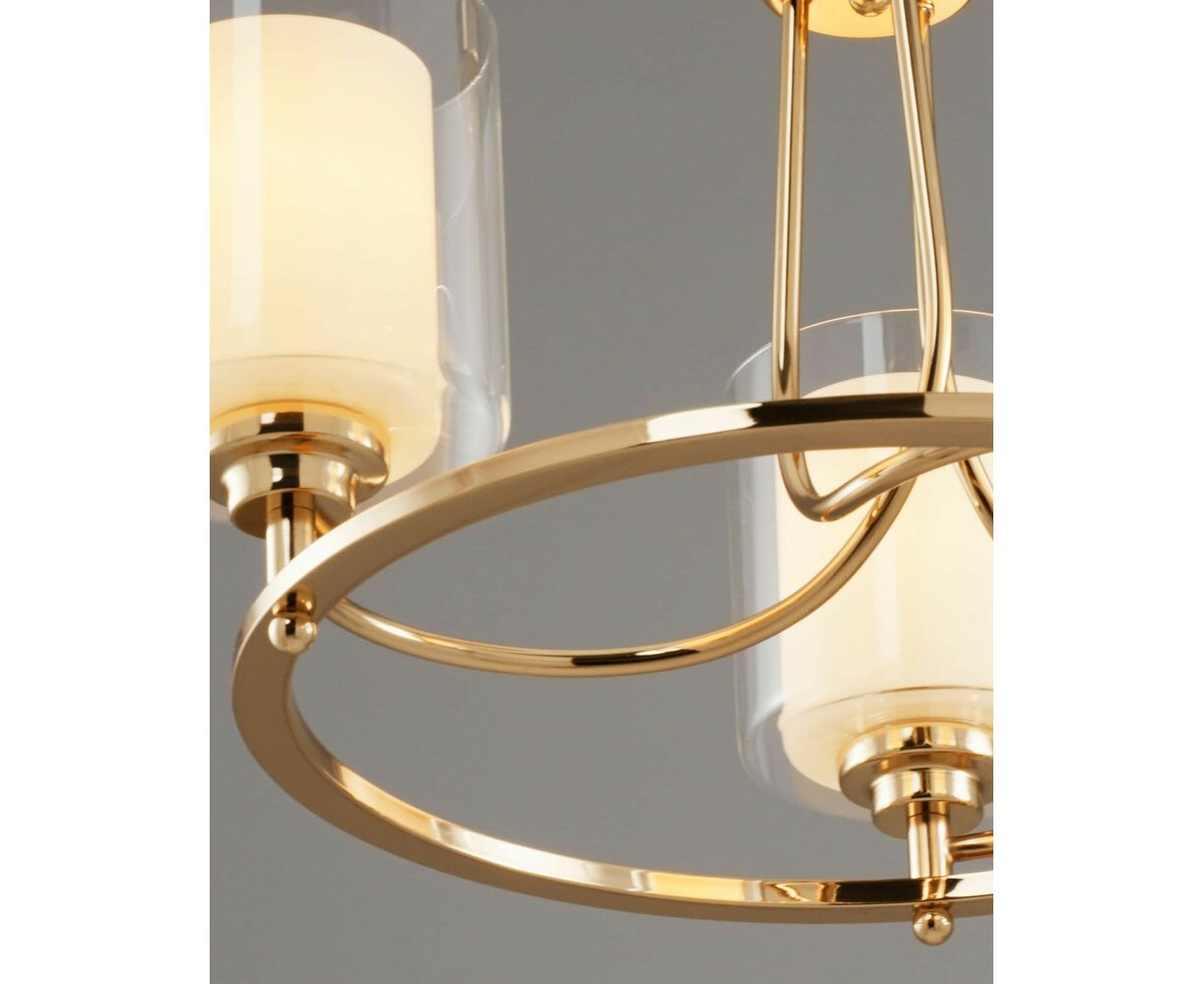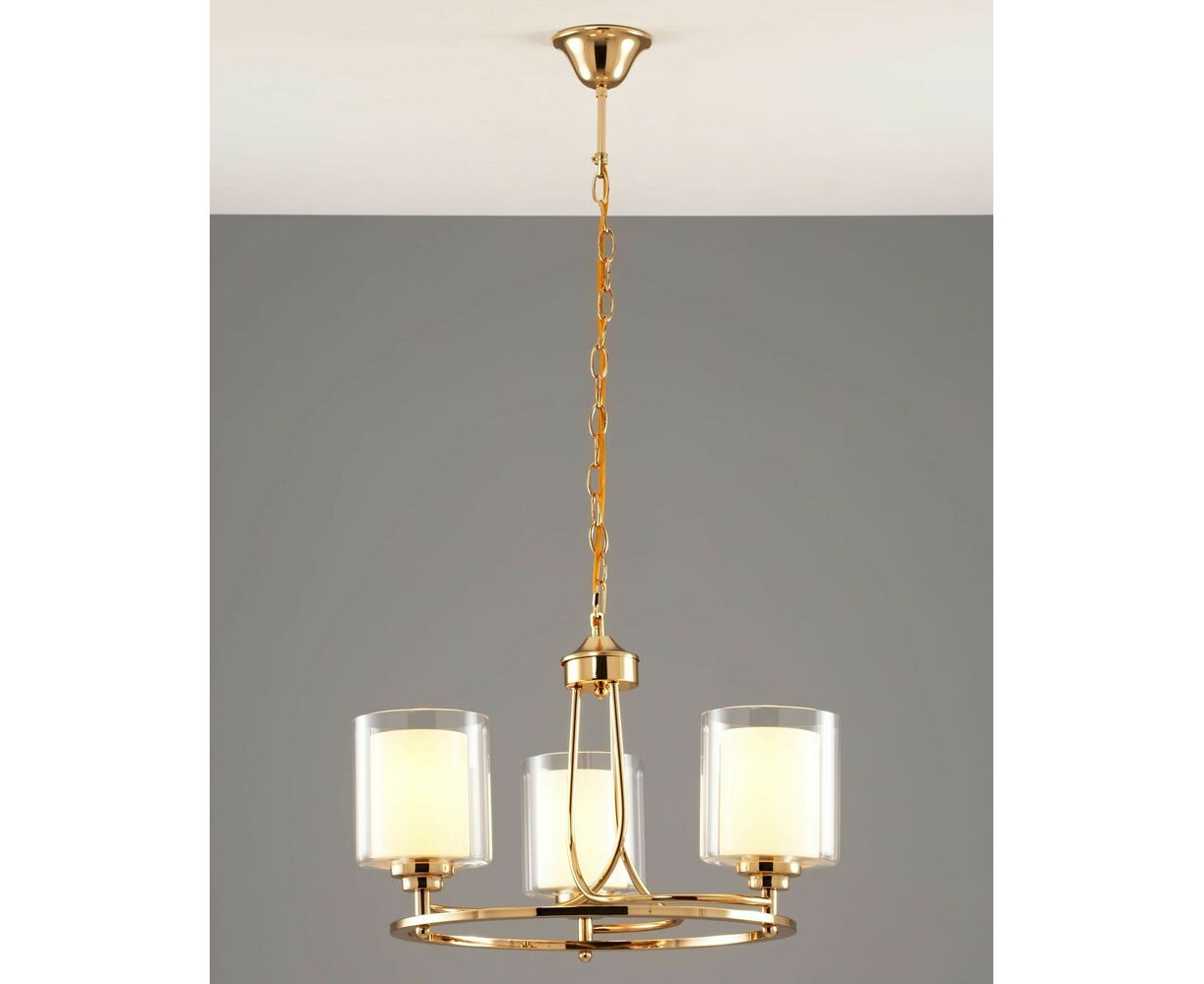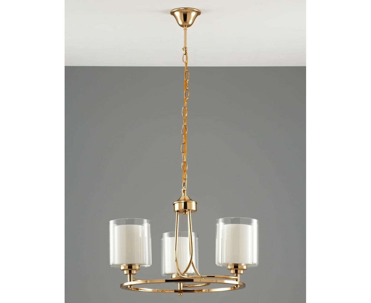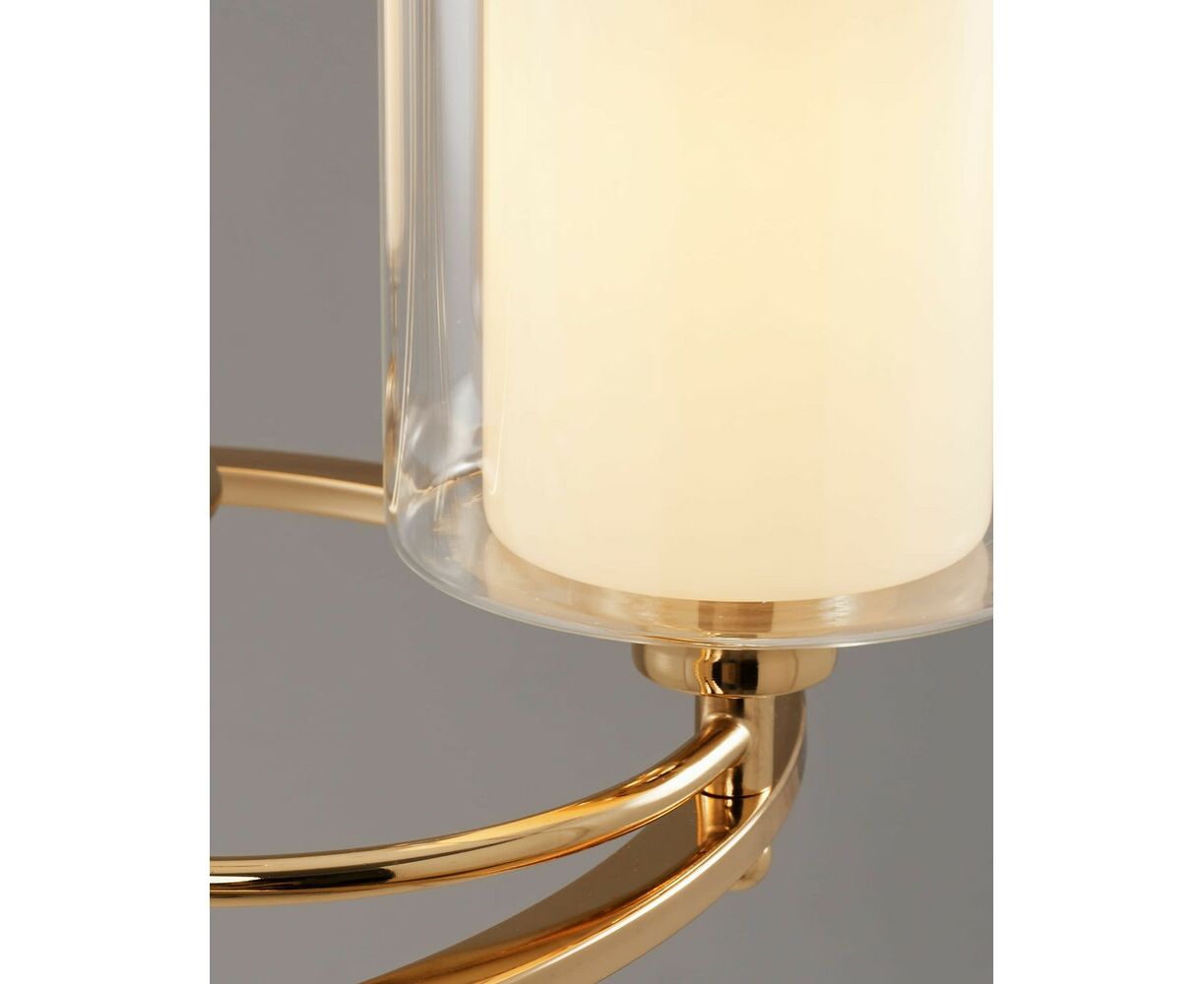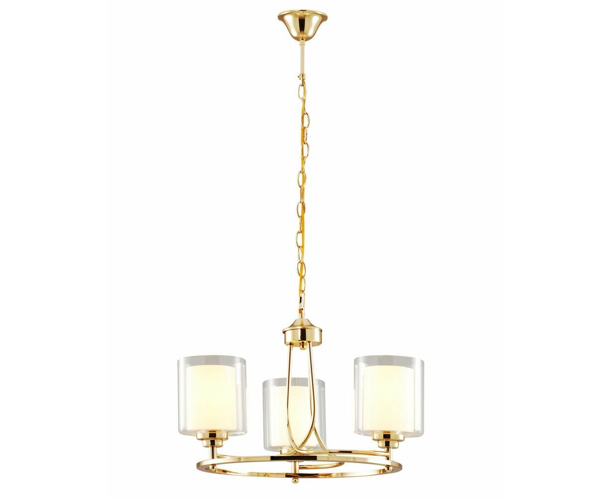 Подвесная люстра из коллекции Maximilian. Плафоны состоят из двух видов стекла: внутренний - из матового стекла для мягкого рассеивания света, внешний - из прозрачного стекла для многослойности. Металлический каркас цвета золота в сочетании с двухслойным плафоном образуют воздушный и элегантный дизайн. Подвесная люстра имеет простой и надёжный способ крепления на крюк. При необходимости можно убрать подвесную цепь или сократить звенья для уменьшения высоты светильника. Люстра Maximilian дополнит любой современный интерьер, отличный вариант для спальни, гостиной комнаты и зала.
