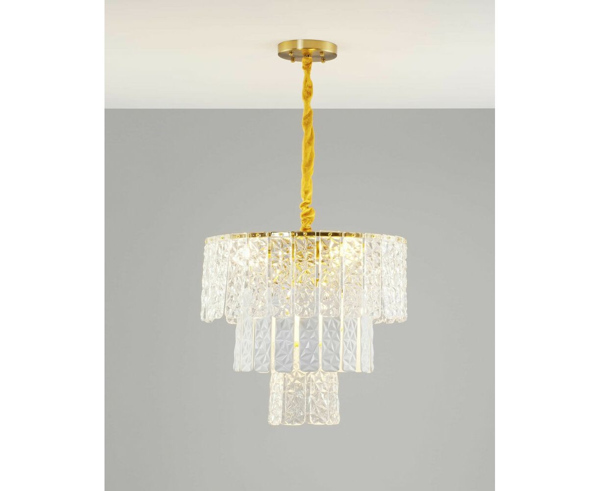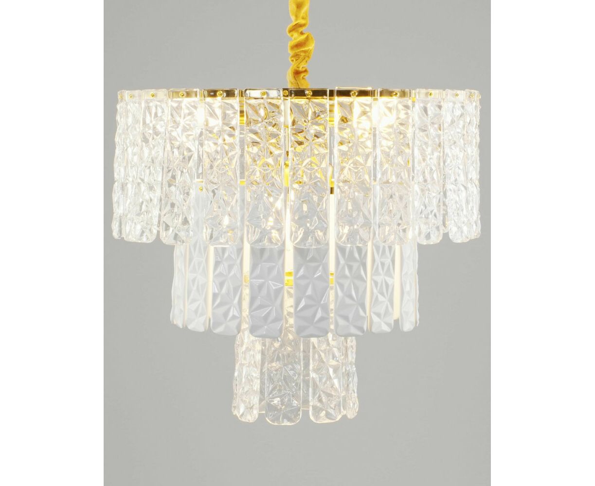 м², при необходимости высоту люстры можно уменьшить с помощью подвесной цепи. Тканевый кожух поверх цепи съемный.