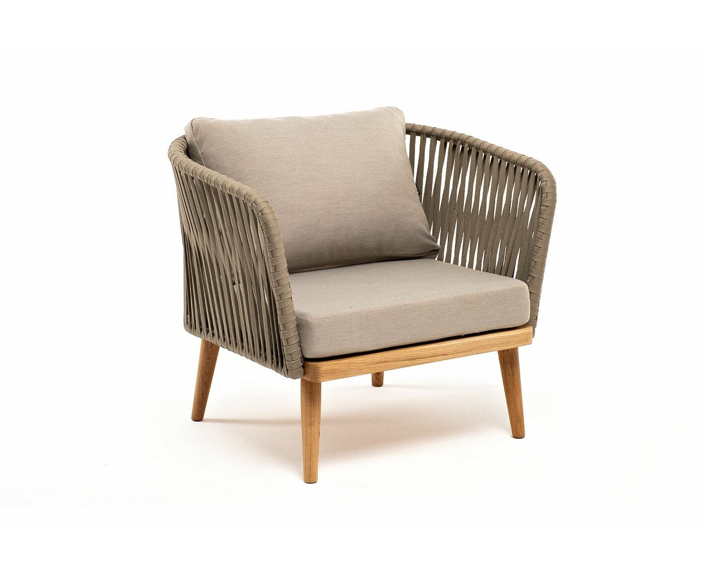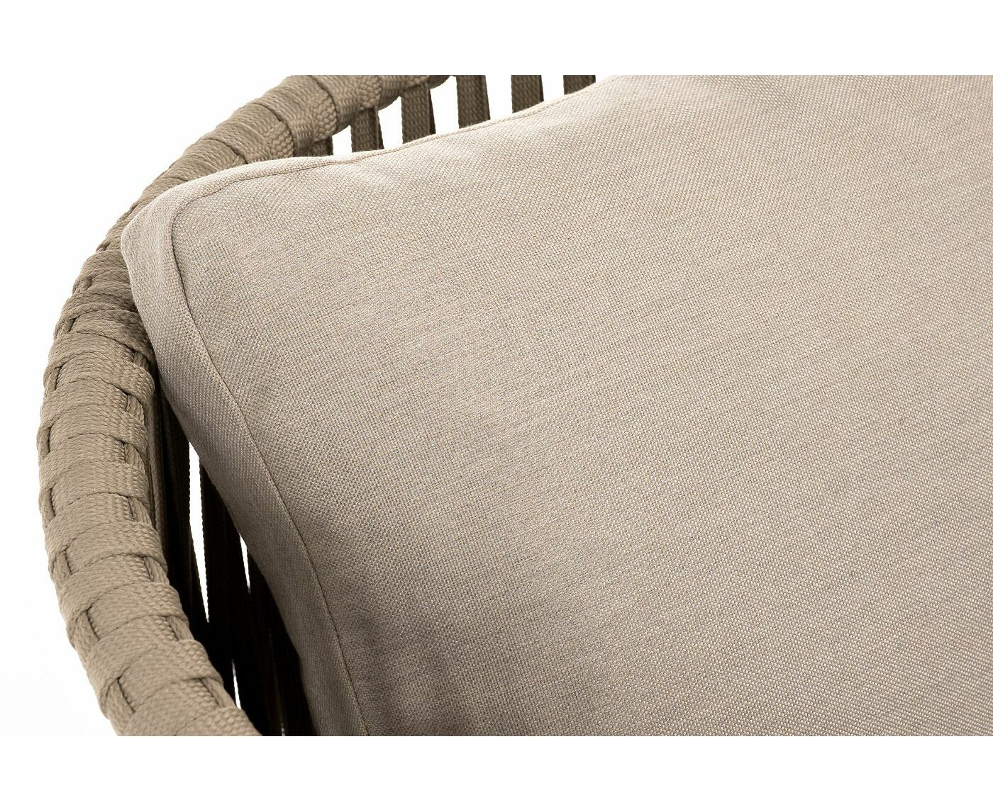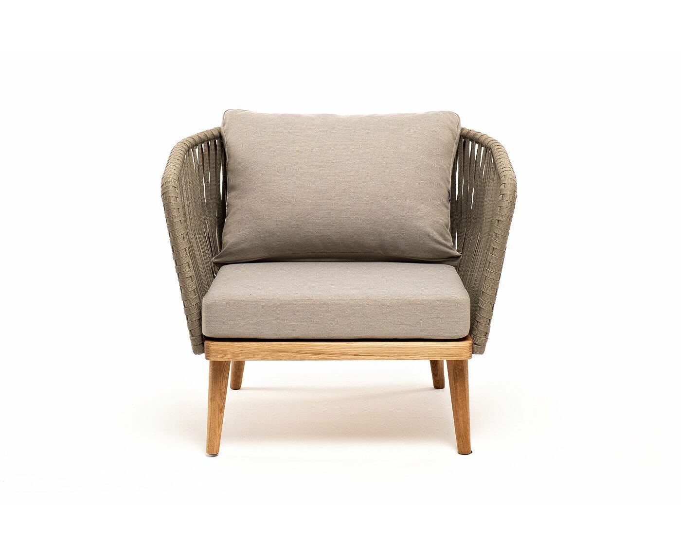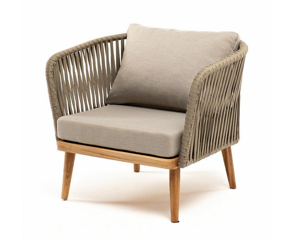"Мальорка" кресло плетеное из роупа, основание дуб, роуп серо-коричневый 23мм, ткань бежевая 15052