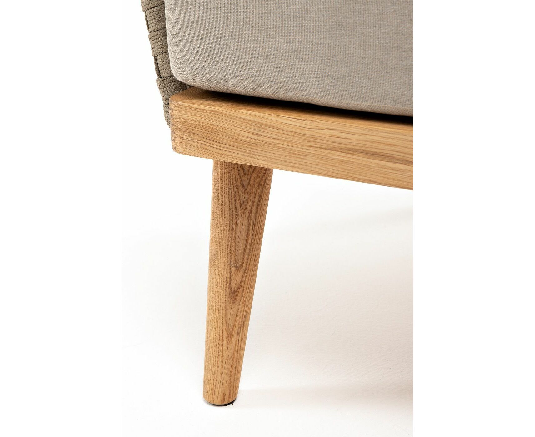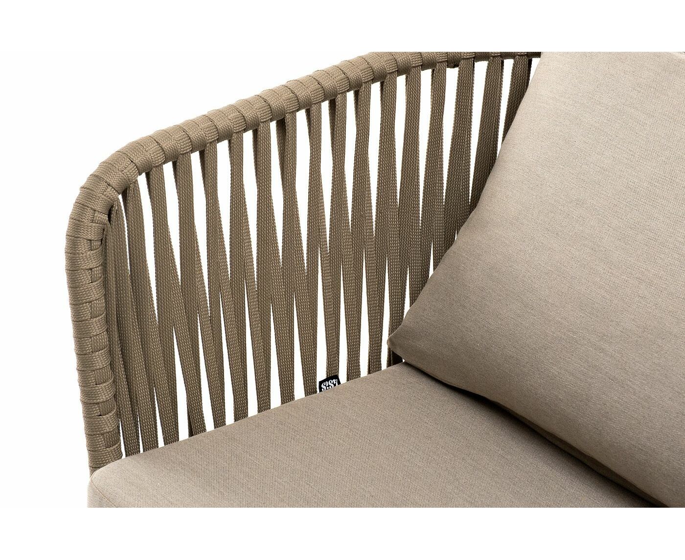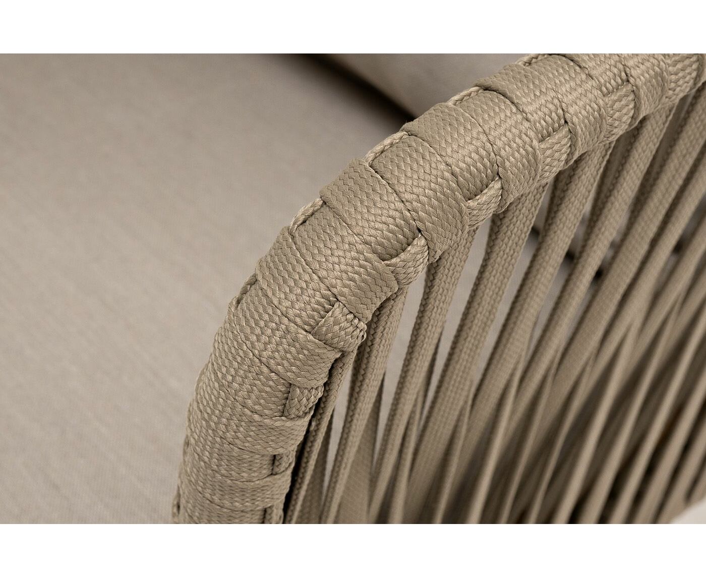 "Мальорка" кресло плетеное из роупа, основание дуб, роуп серо-коричневый 23мм, ткань бежевая 15052