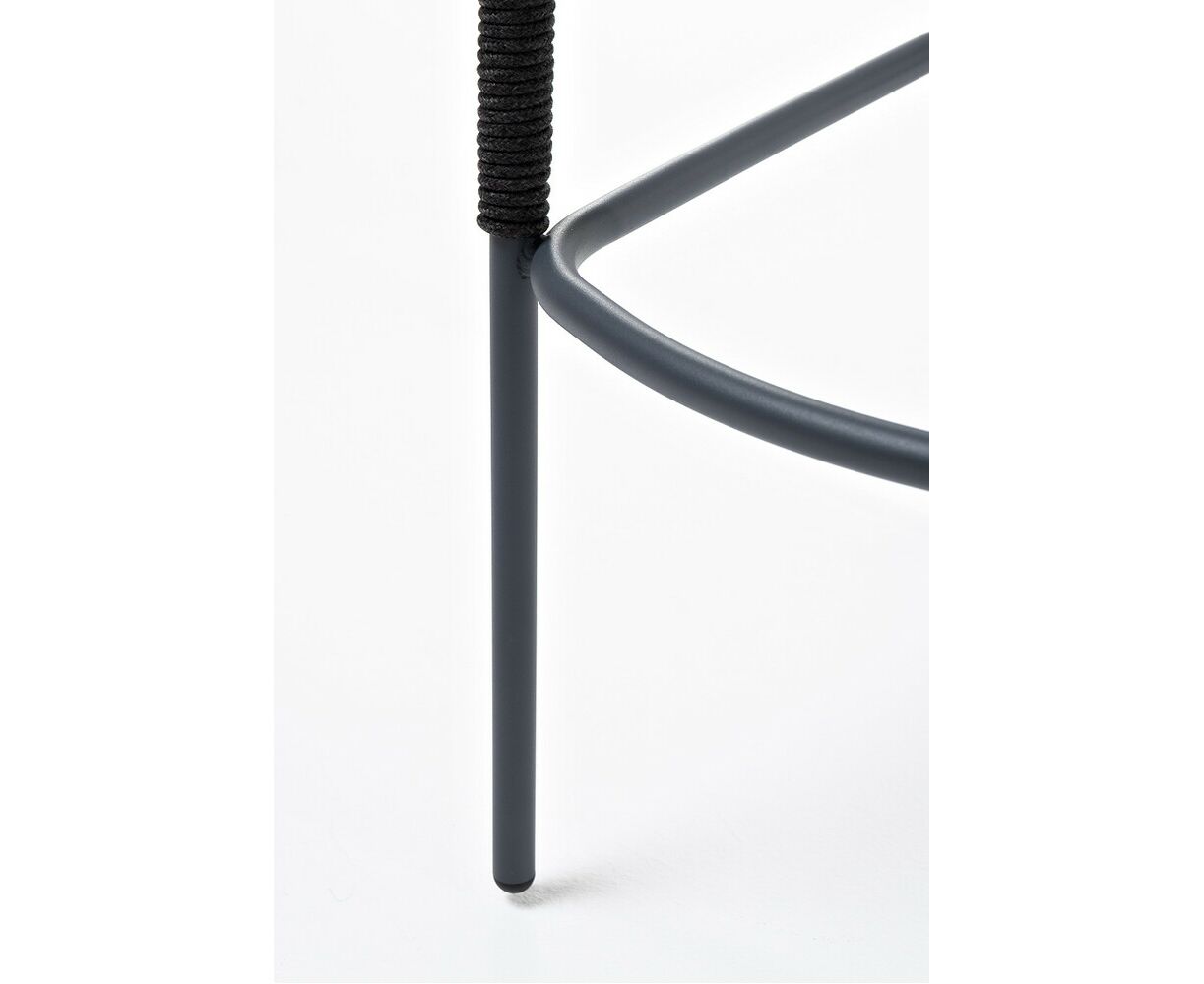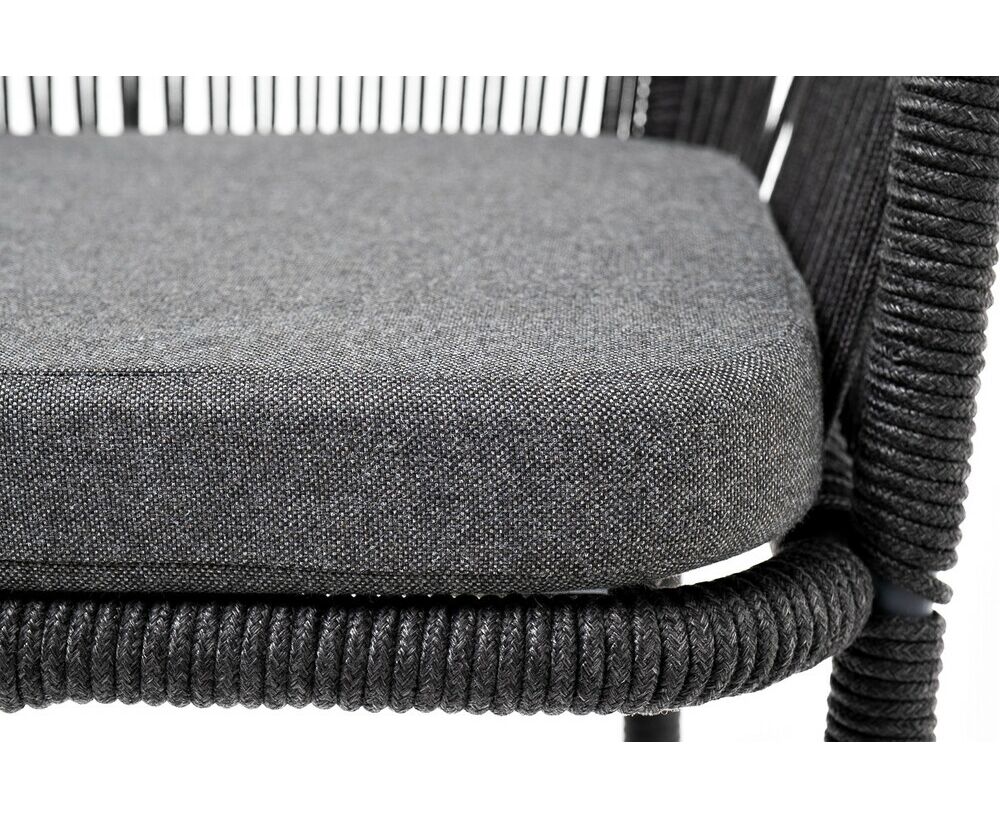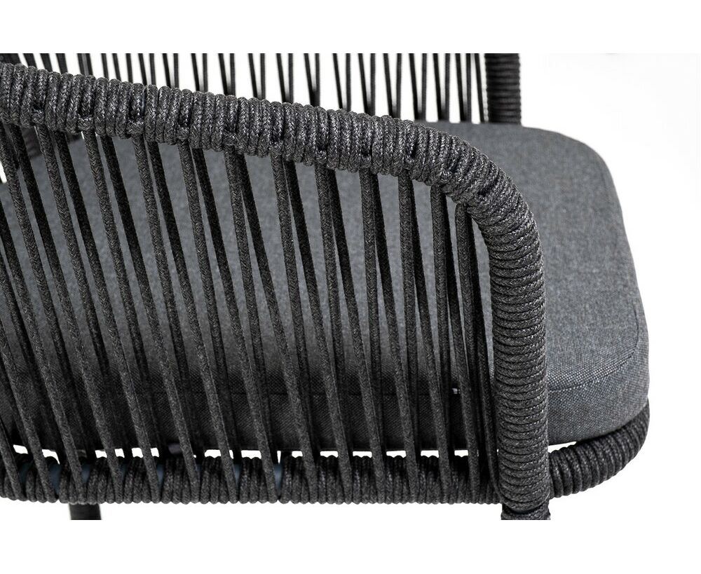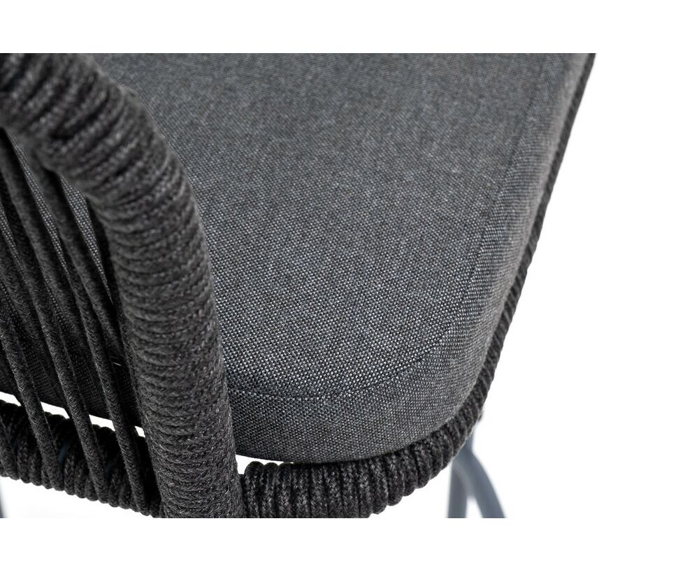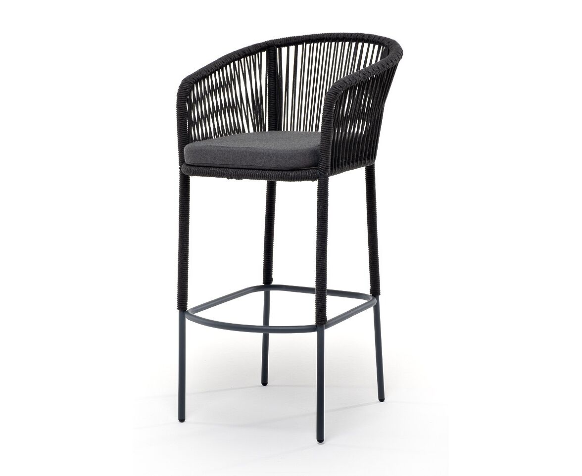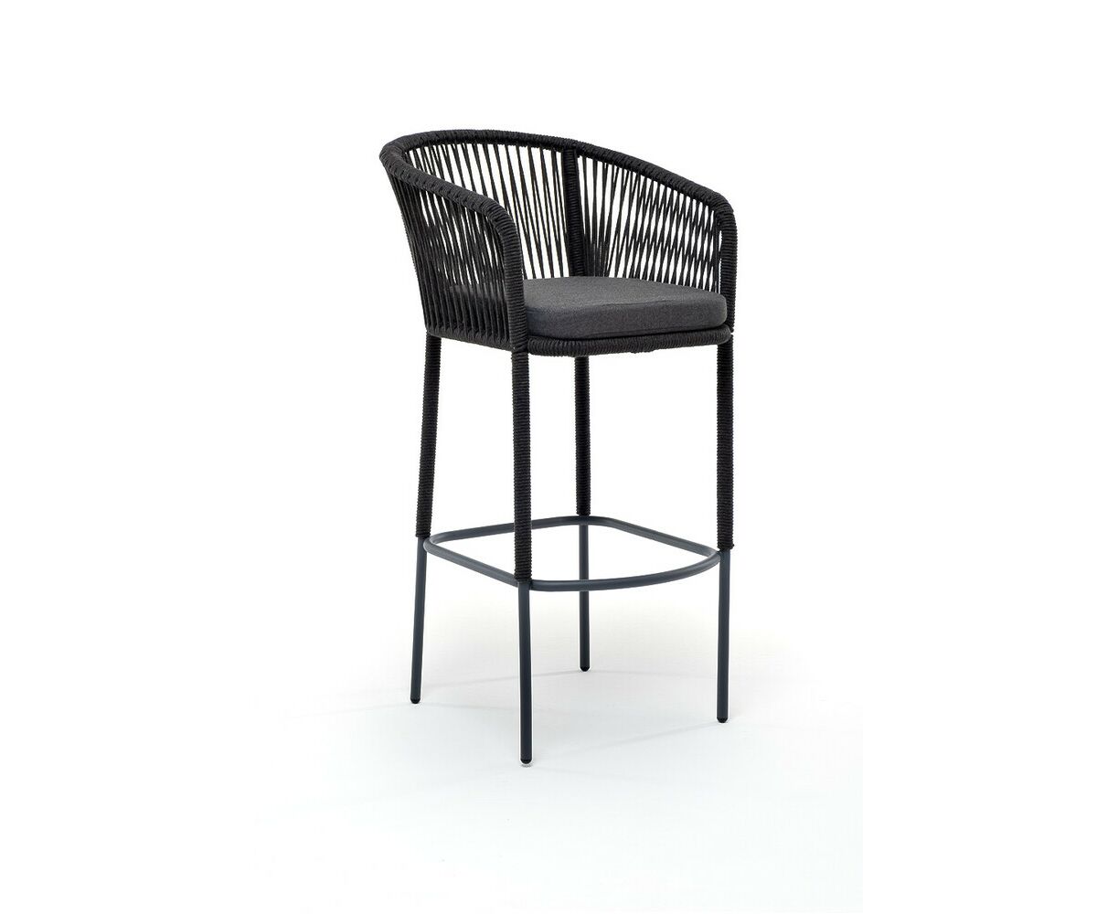 "Марсель" стул барный плетеный из роупа, каркас из стали темно-серый (RAL7024) муар, роуп темно-серый круглый, ткань темно-серая 027