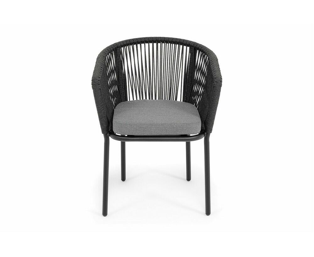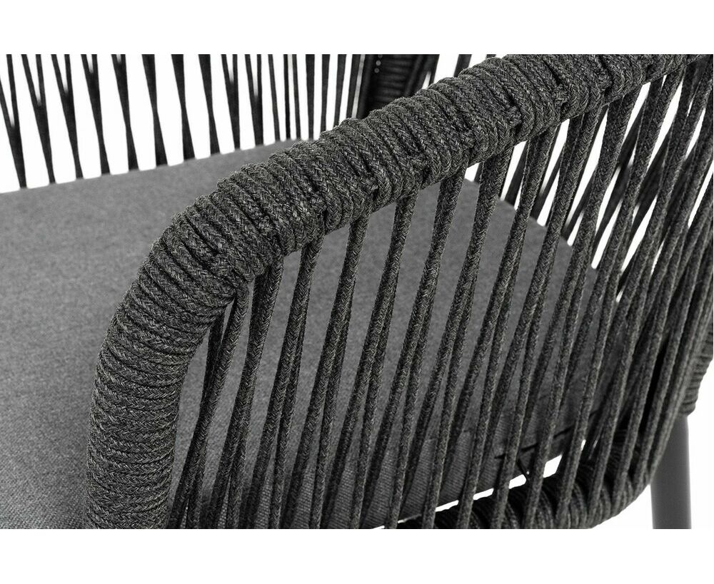 "Марсель" стул плетеный из роупа, каркас алюминий черный муар, роуп темно-серый круглый, ткань темно-серая 027