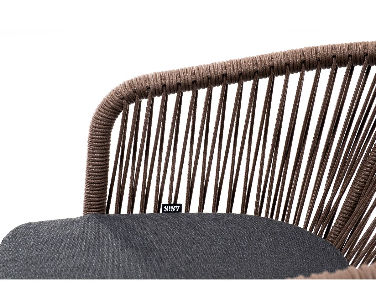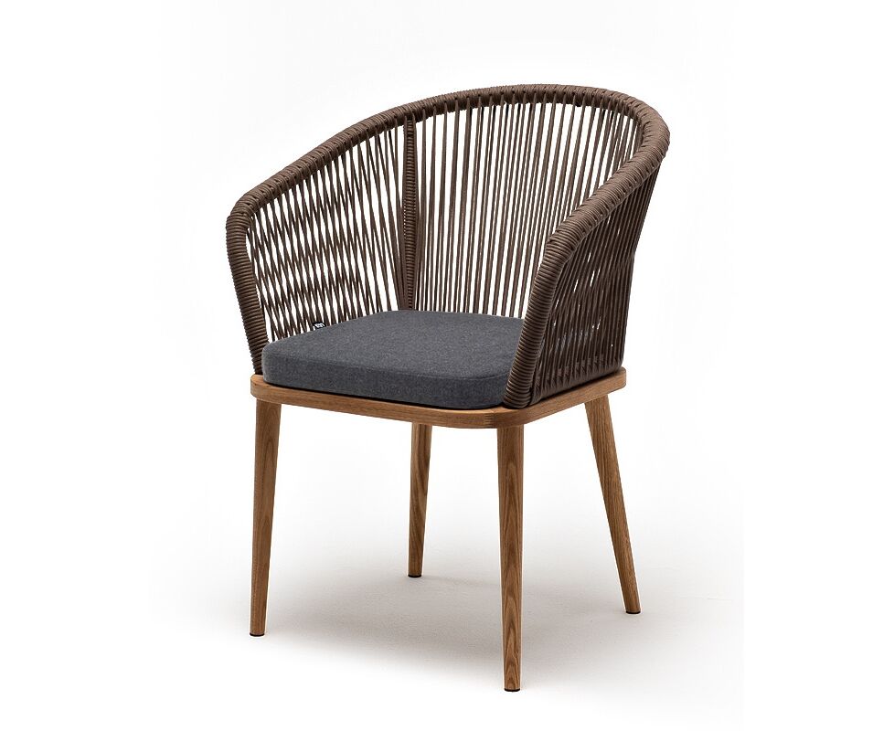 "Марсель" стул плетеный из роупа, основание дуб, роуп коричневый круглый, ткань темно-серая 027
