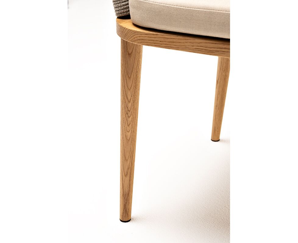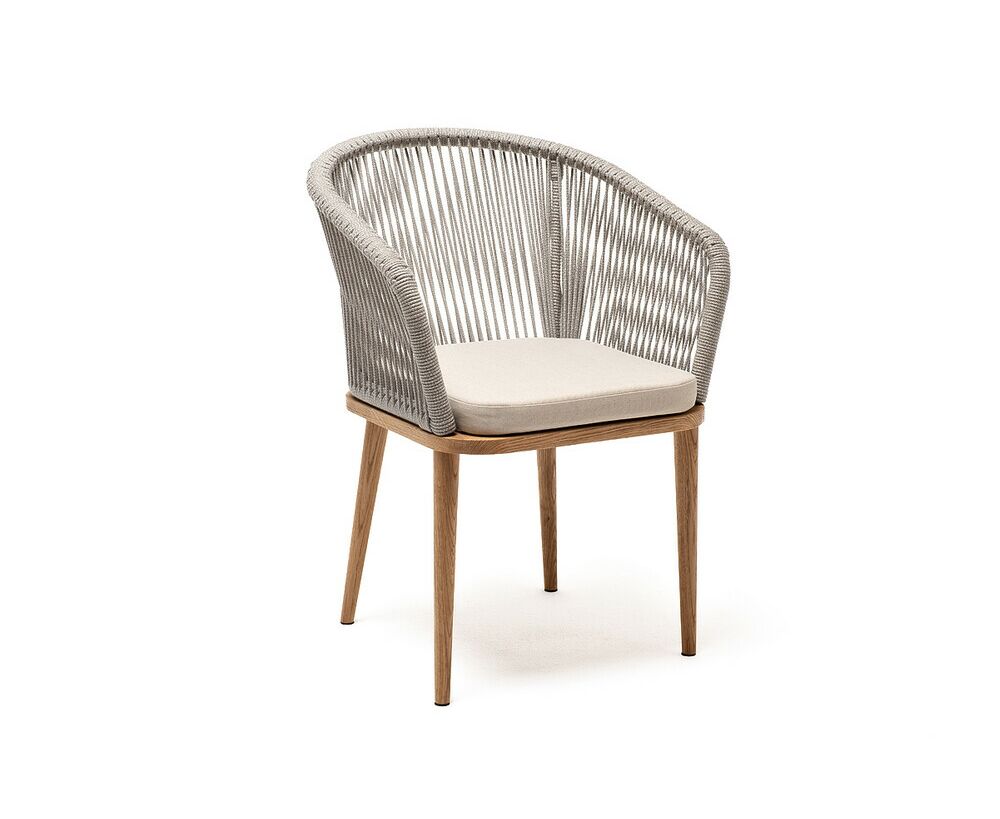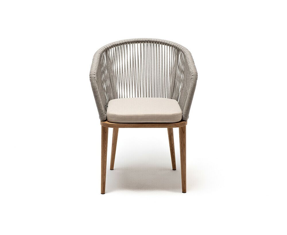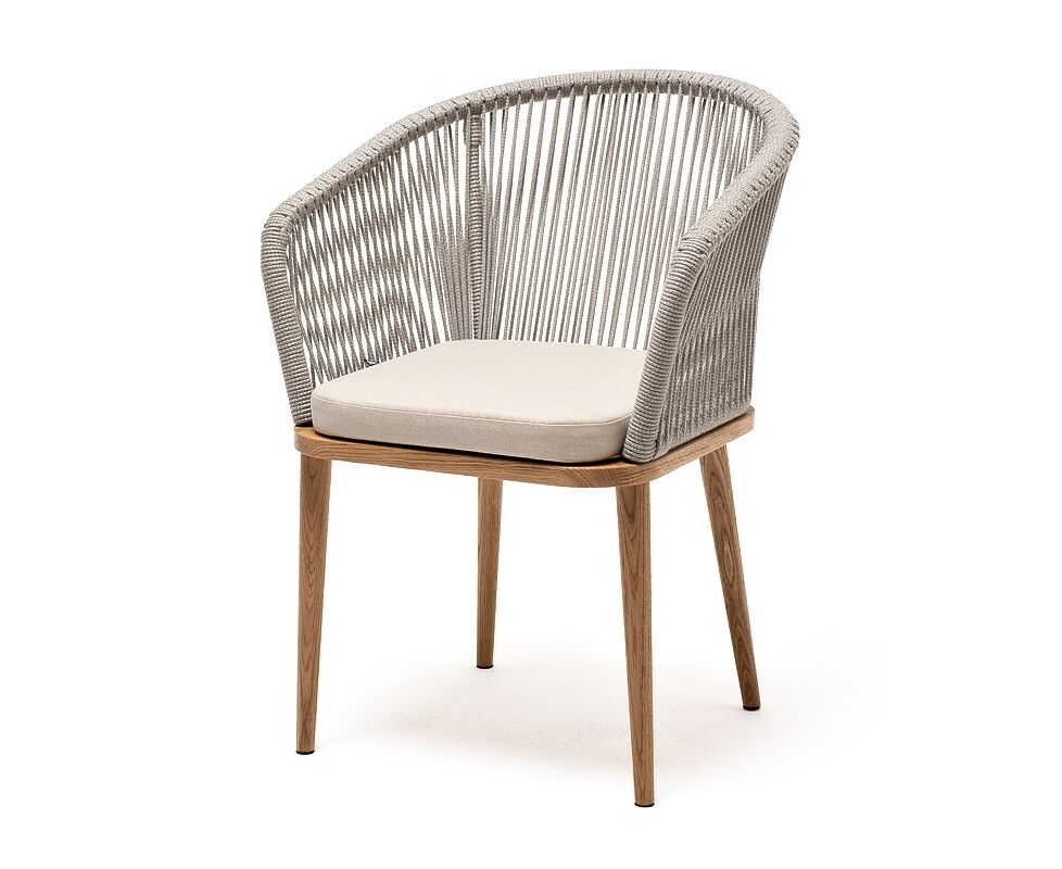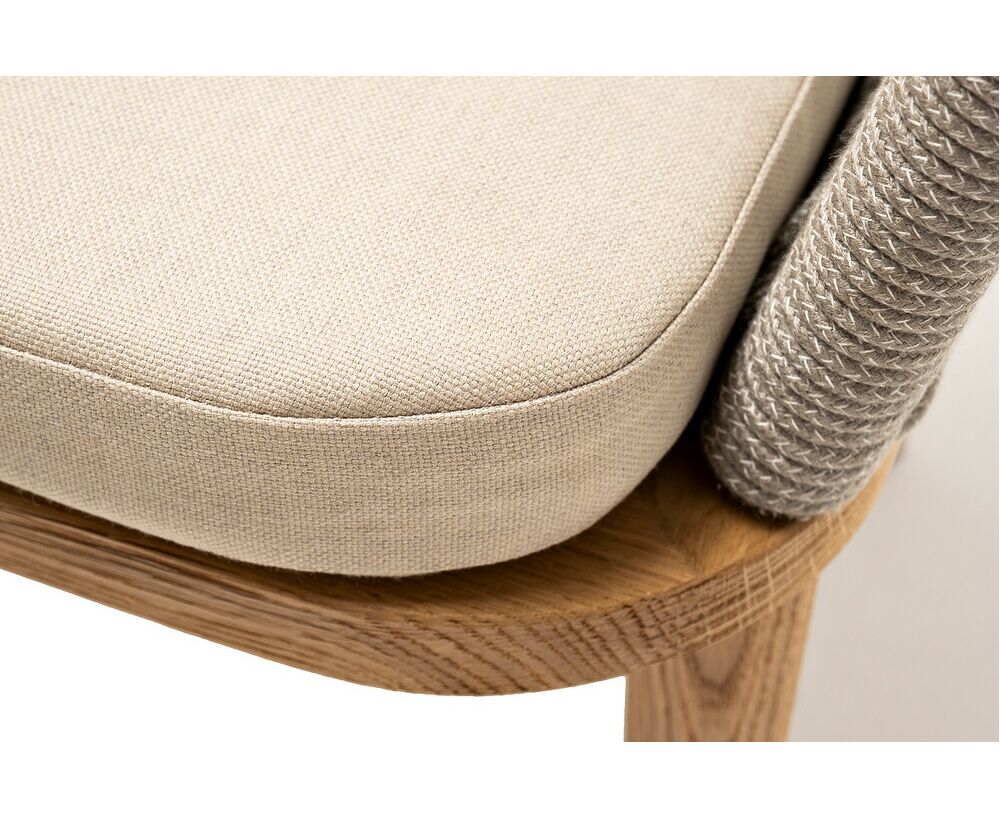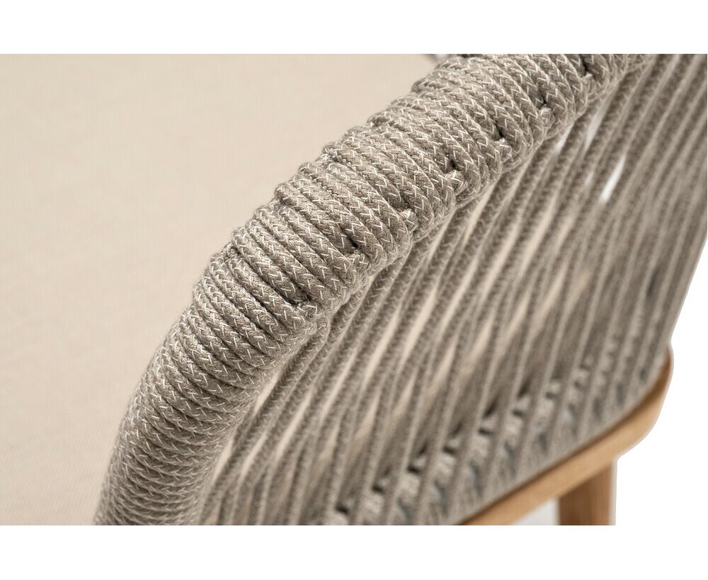 "Марсель" стул плетеный из роупа, основание дуб, роуп серый меланж круглый, ткань бежевая 15052