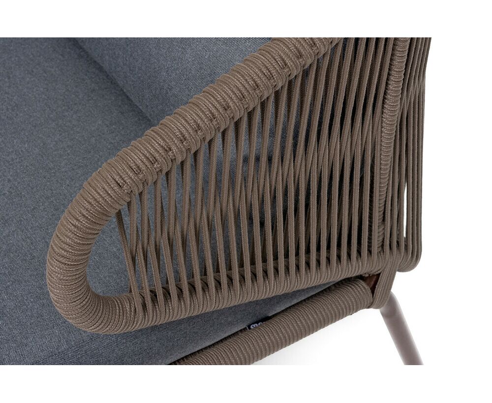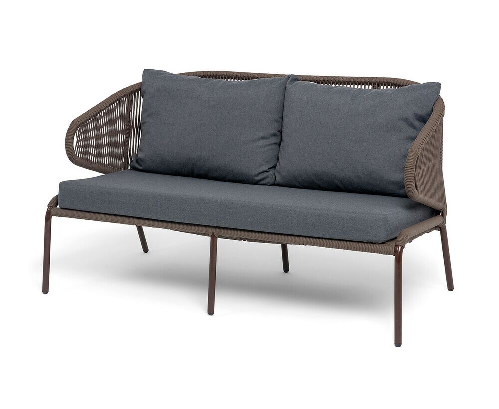 "Милан" диван 2-местный плетеный из роупа, каркас алюминий коричневый (RAL8016) муар, роуп коричневый круглый, ткань темно-серая 027
