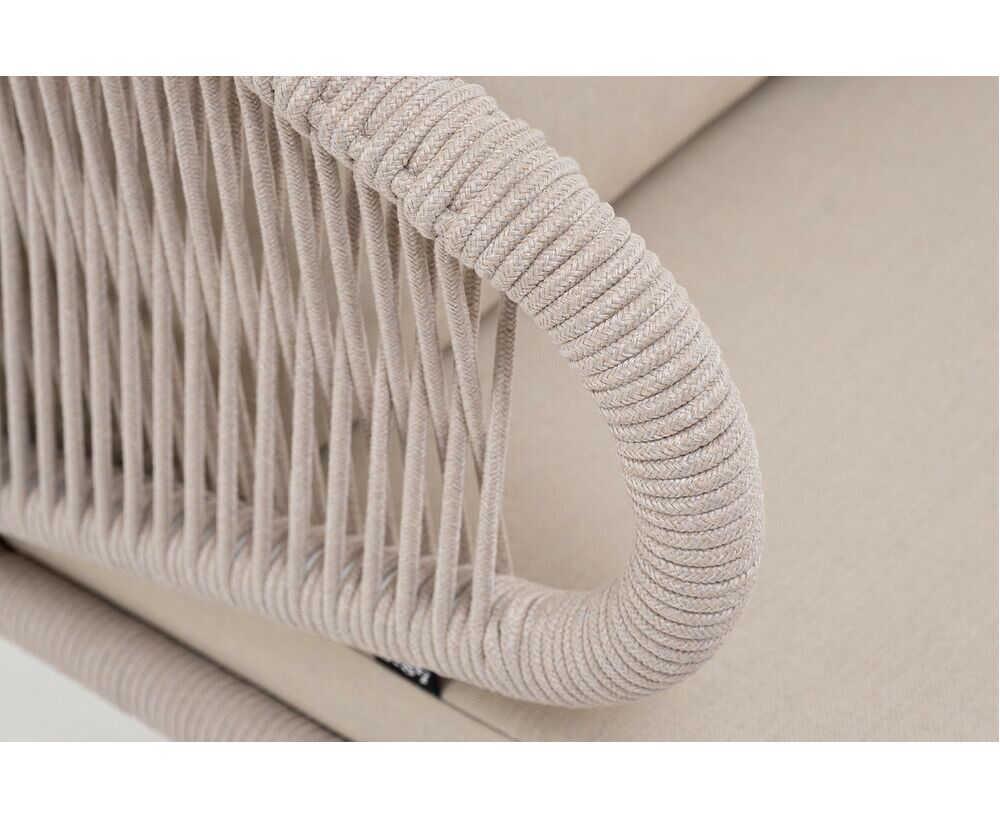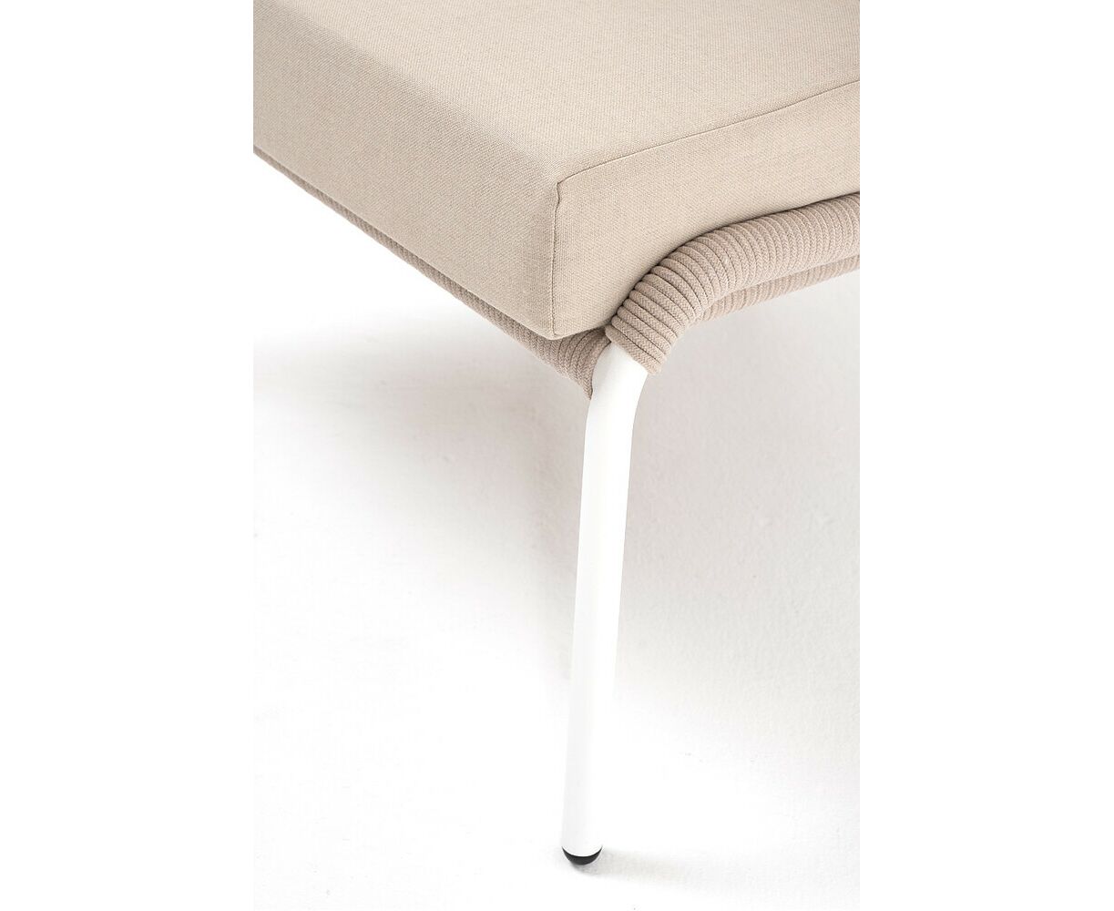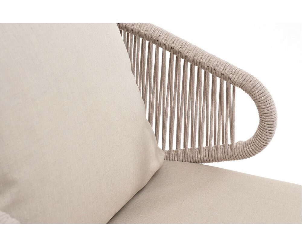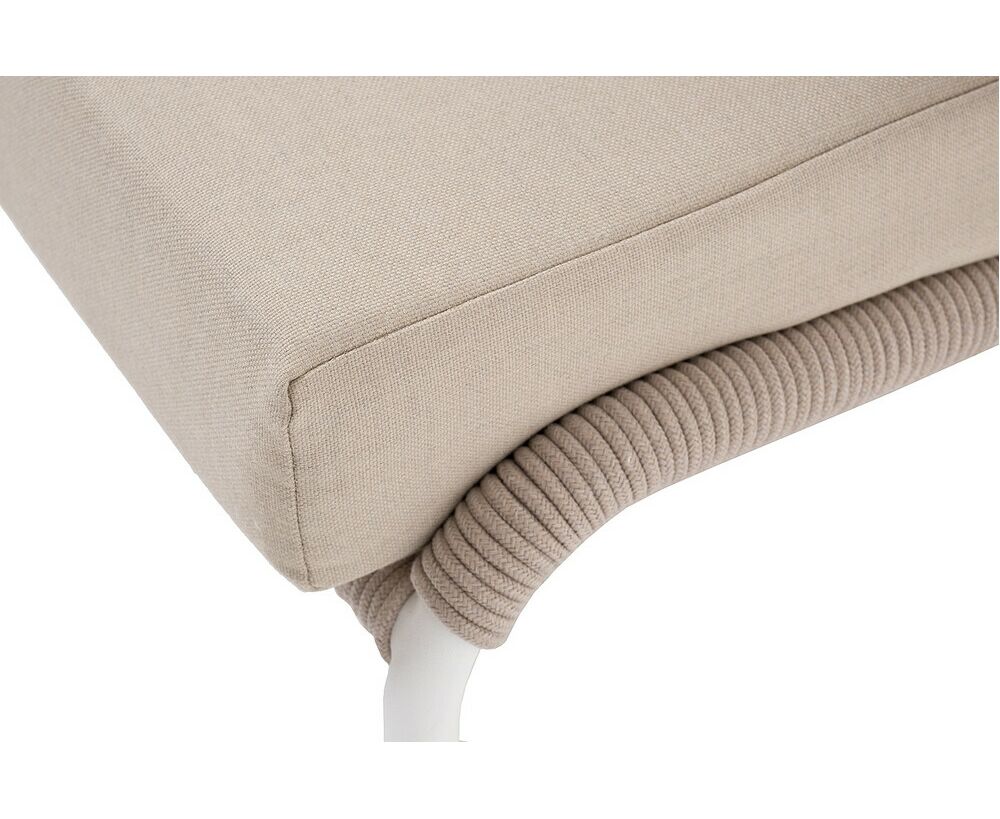 "Милан" кресло плетеное из роупа, каркас алюминий белый муар, роуп бежевый круглый, ткань бежевая 15052