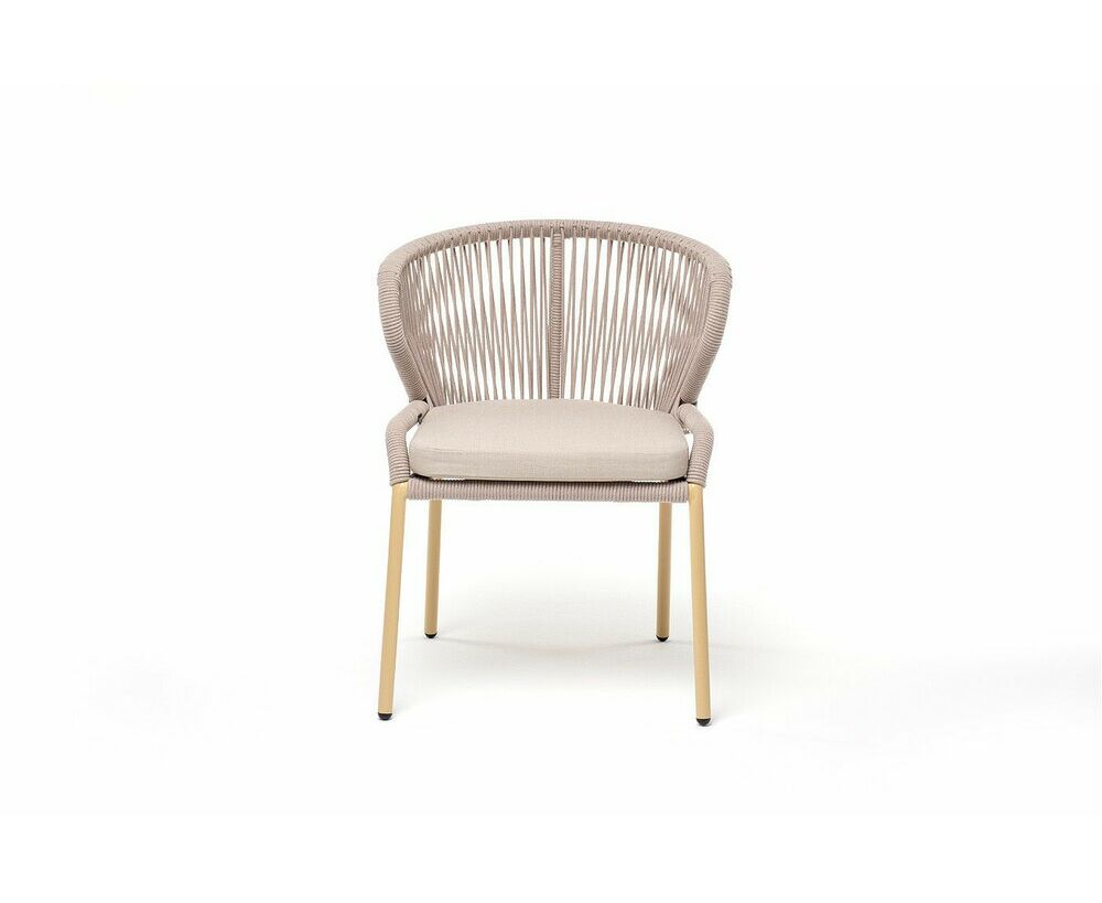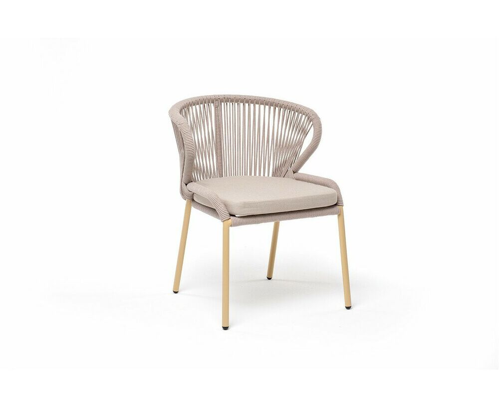 "Милан" стул плетеный из роупа, каркас алюминий (RAL1001), роуп бежевый круглый, ткань бежевая