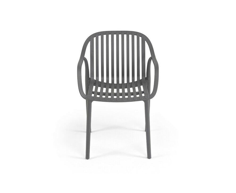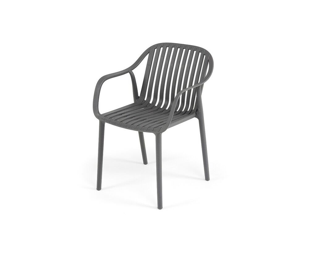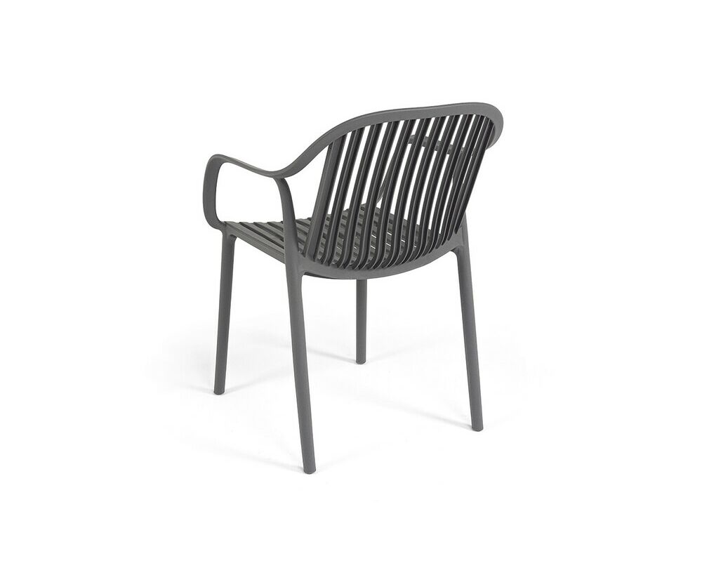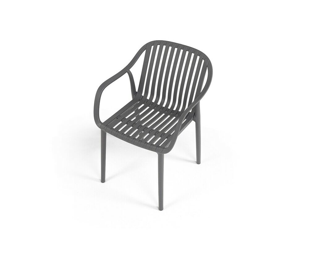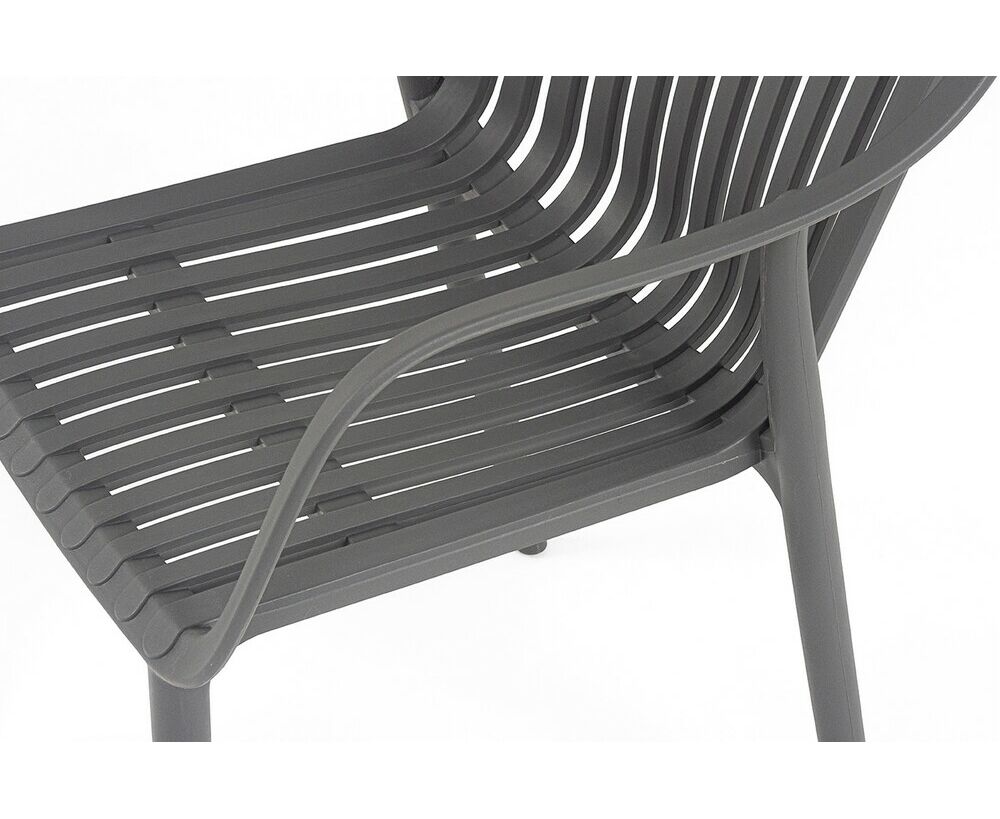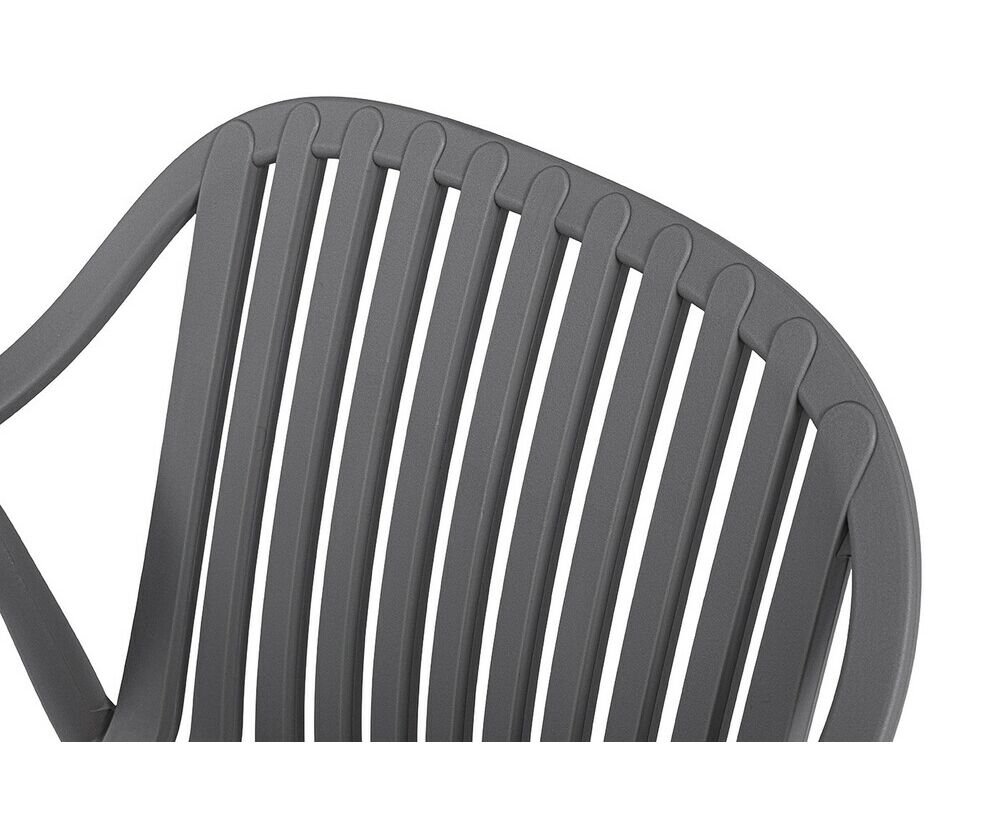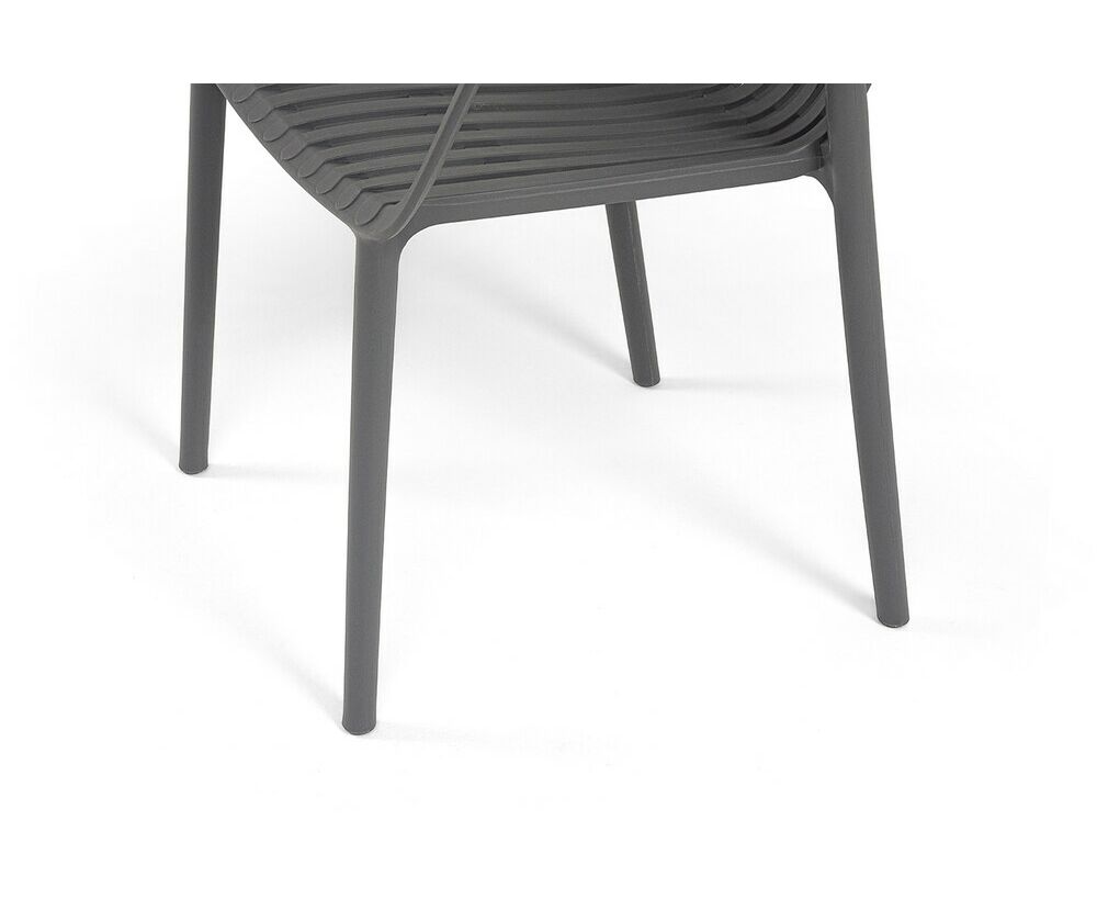 Изготовлен из полипропилена, прочного и стойкого пластика, устойчивого к УФ-излучению, благодаря этому стул сохраняет свой первоначальный вид и не выцветает на солнце даже несмотря на активную эксплуатацию. Цвет - темно-серый.